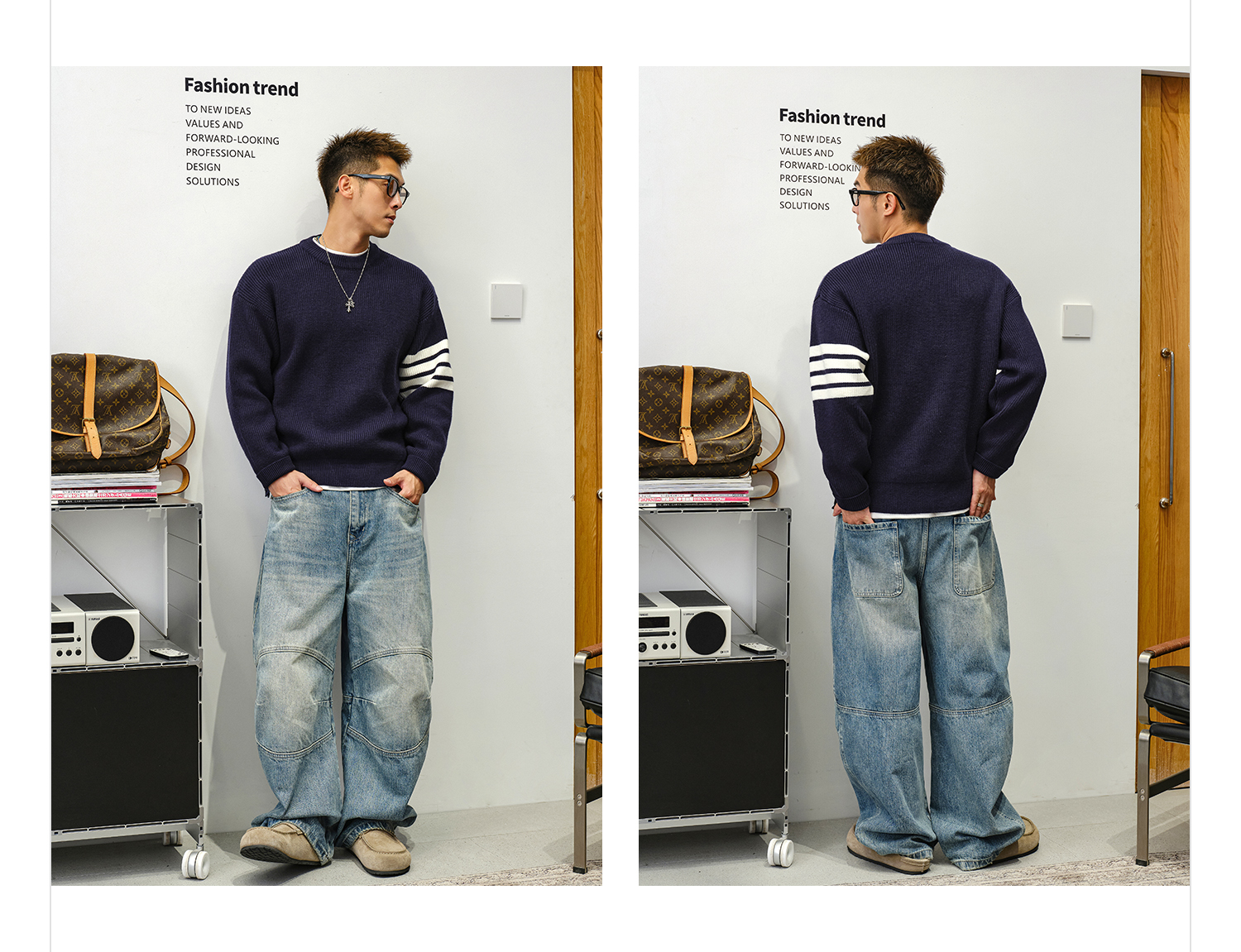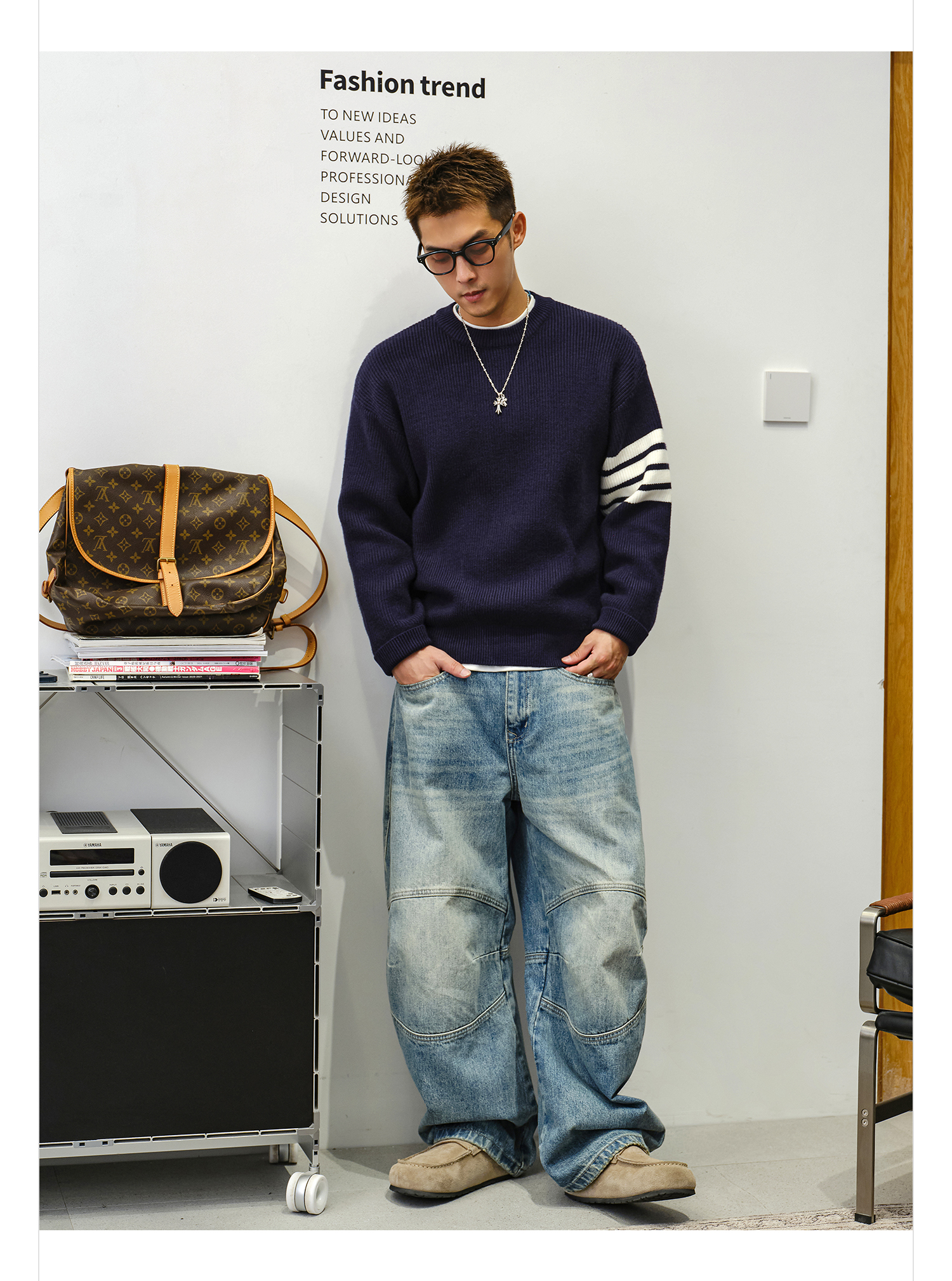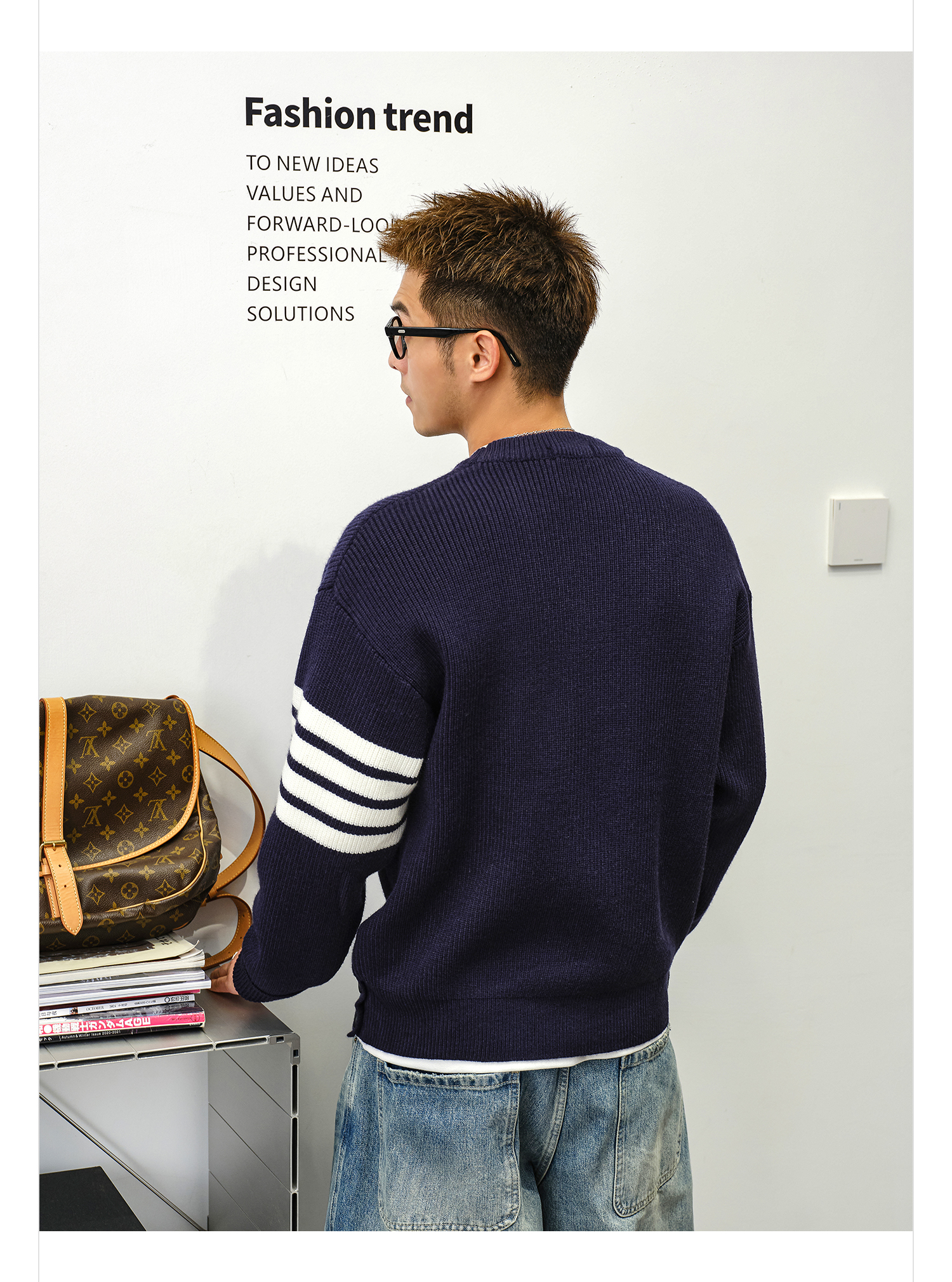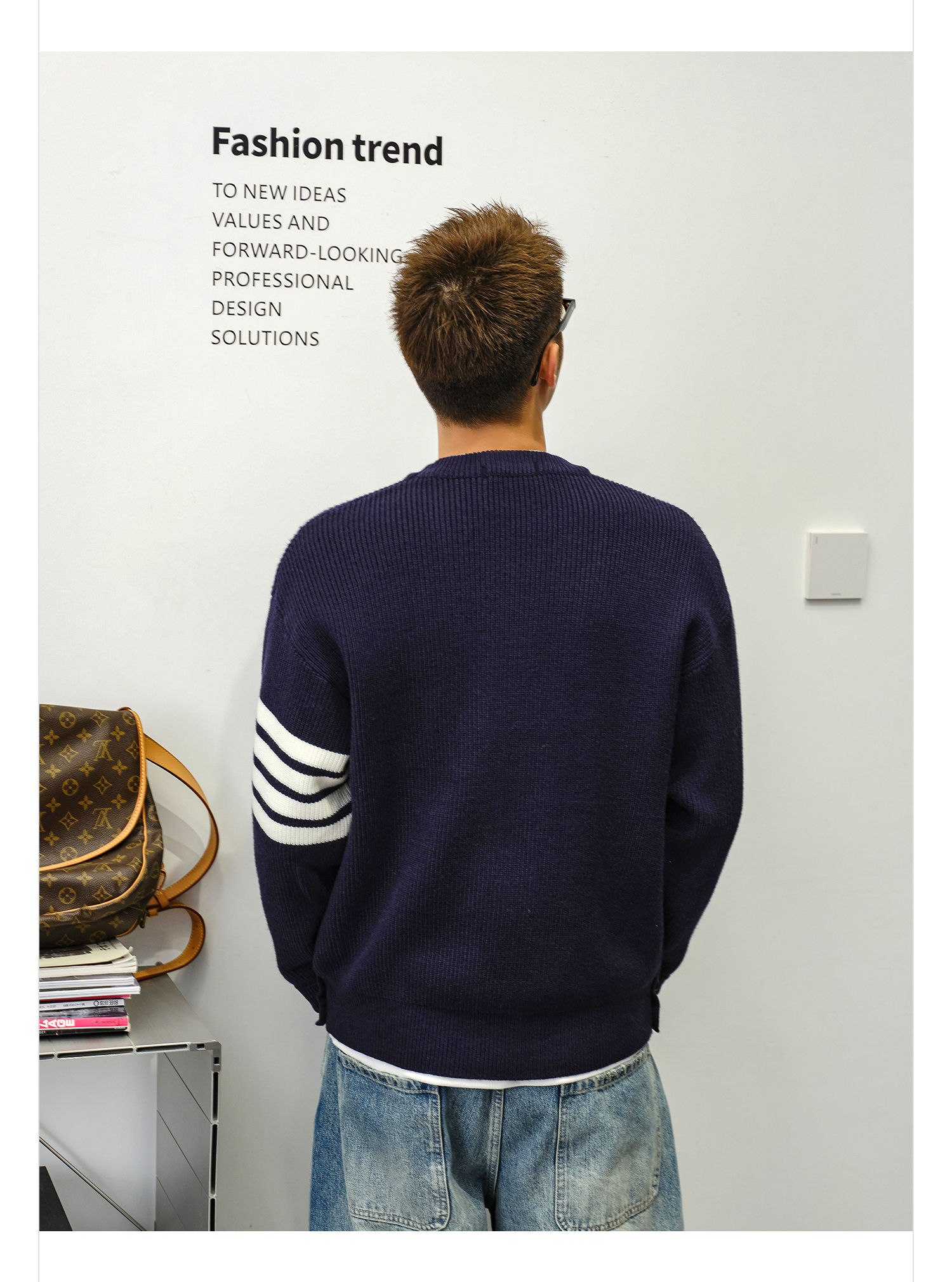 徐太浪【780g重磅 撞色条纹】肌理感针织毛衣男秋季男装通勤上衣