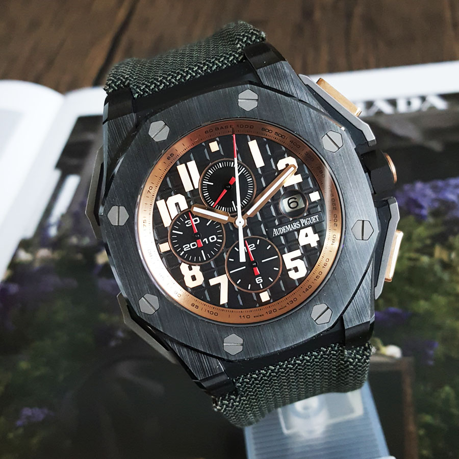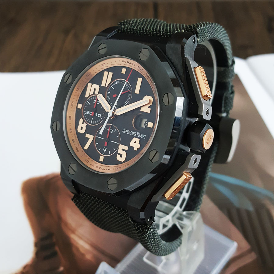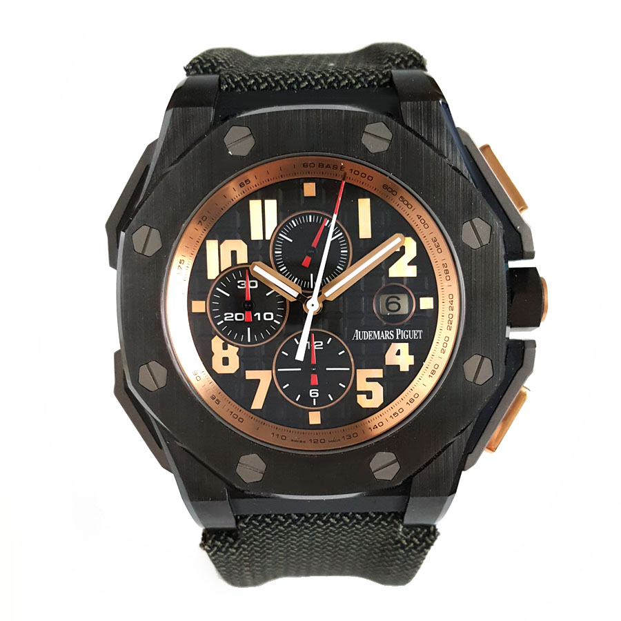 【95新】Audemars Piguet26378IO.OO.A001KE.01自动机械机芯 日期显示、计时 爱彼皇家橡树离岸型系列48MM(男款)陶瓷/钛金属;18K玫瑰金按钮151025TJ06