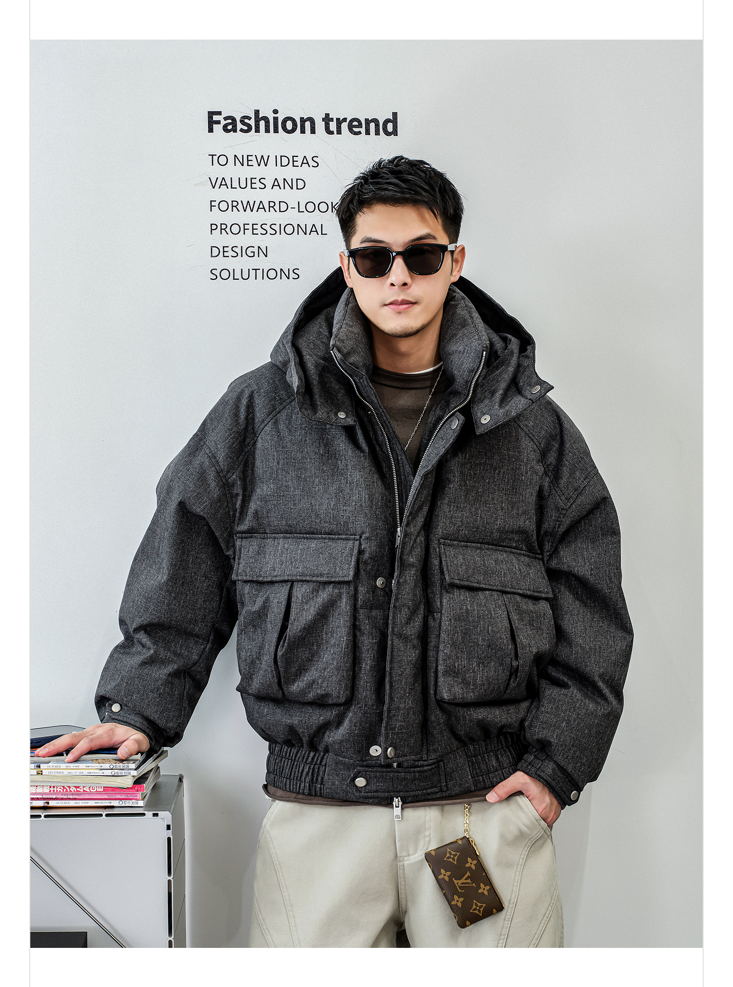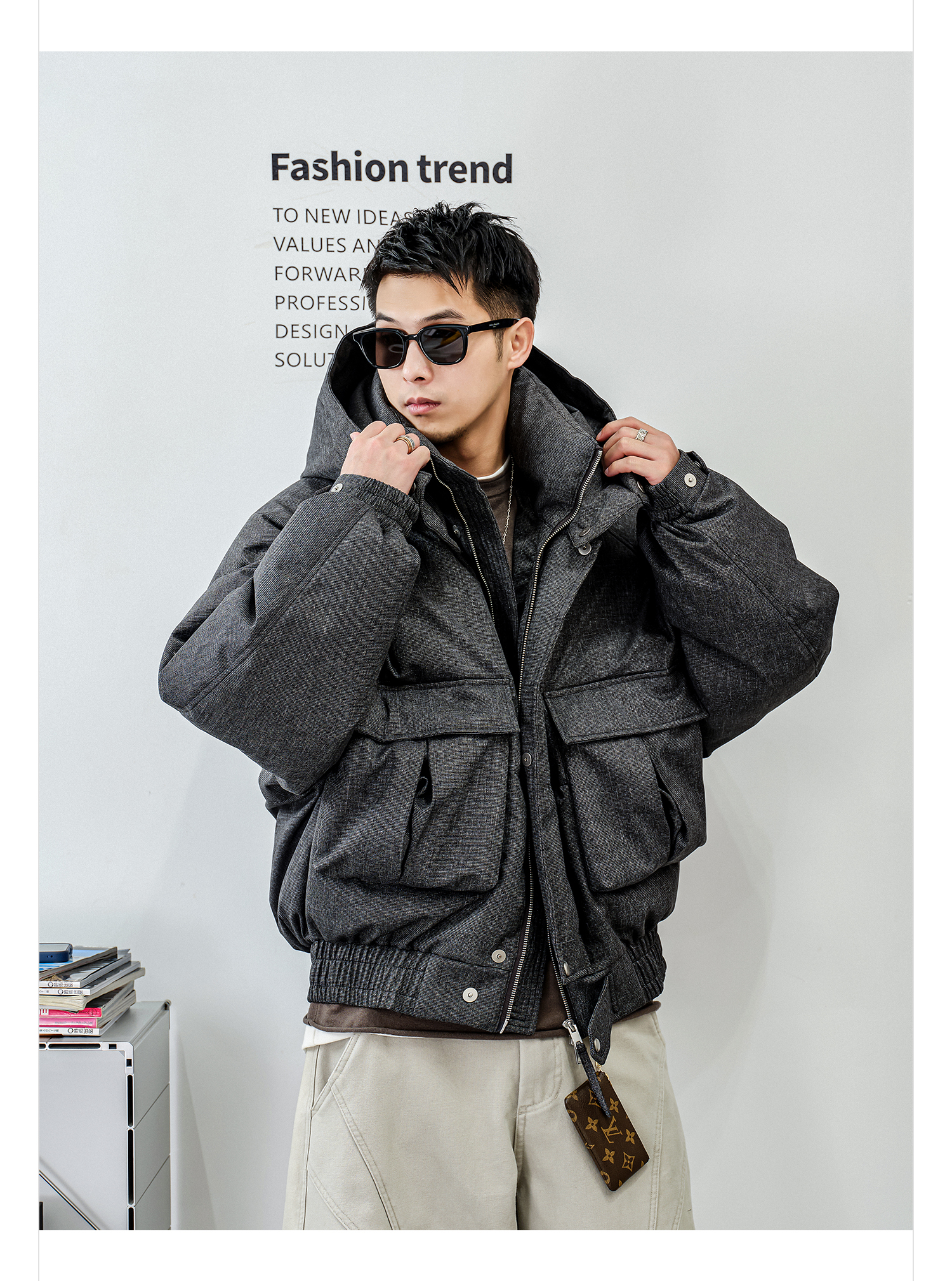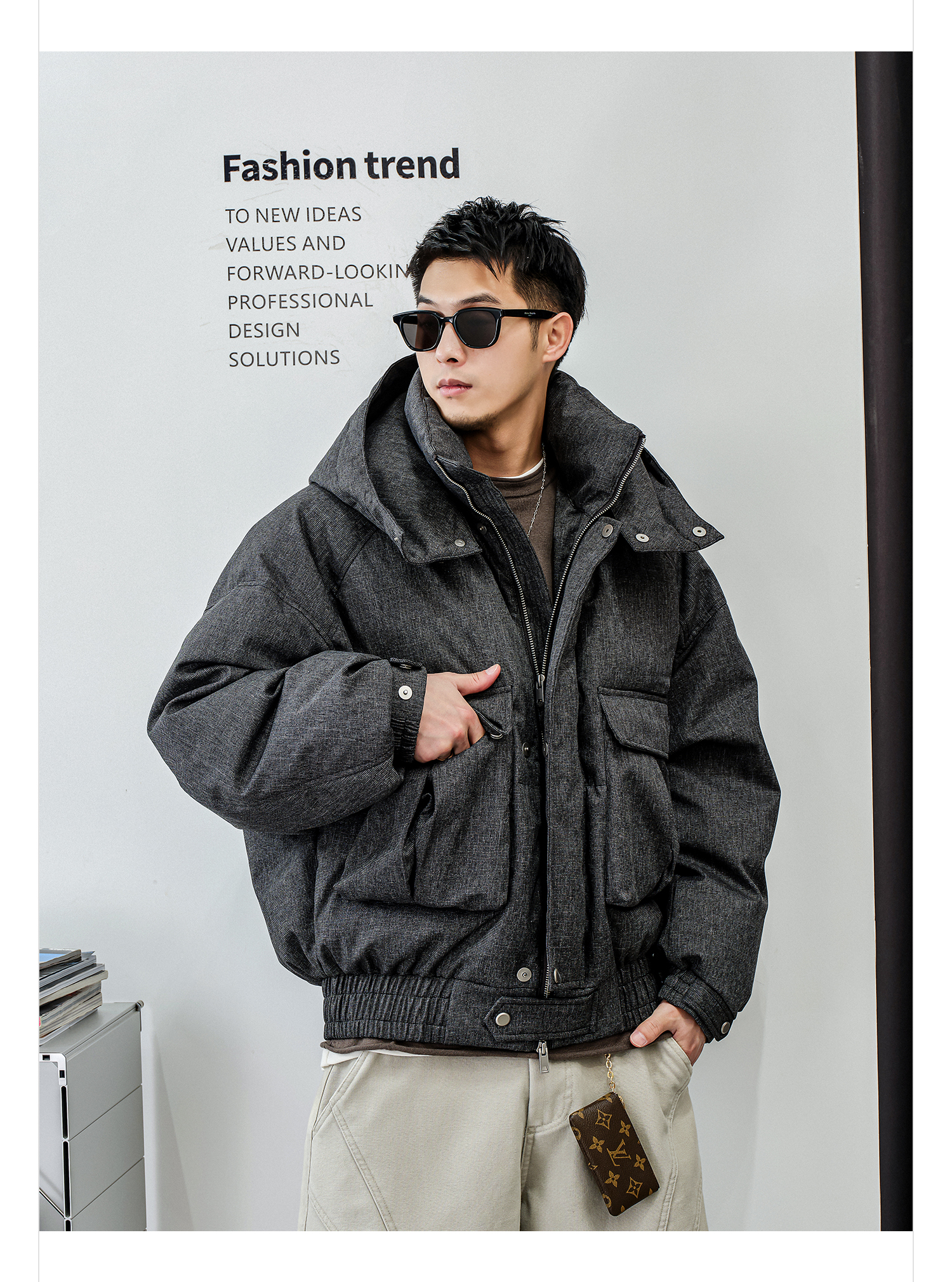徐太浪【龟背辑行 工装拼接】连帽羽绒服男冬季厚款休闲防寒外套