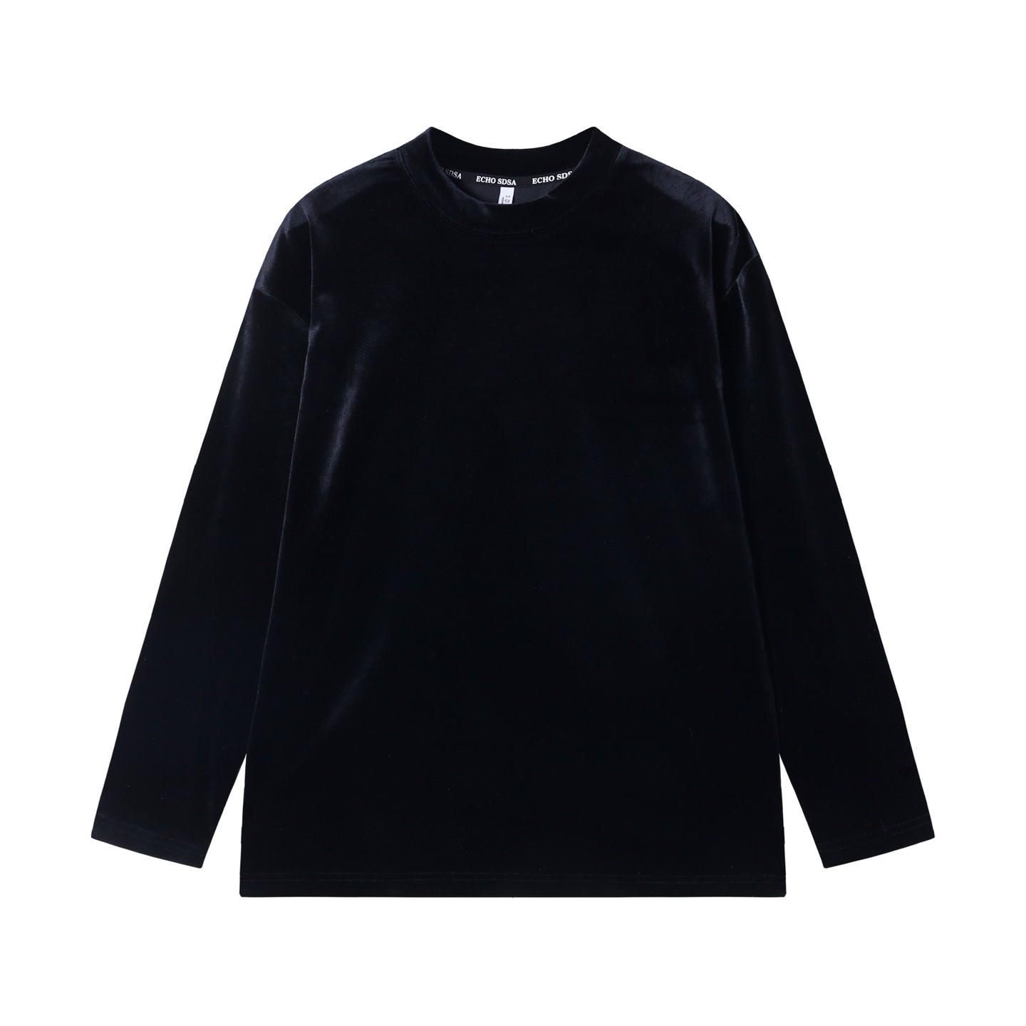 T1848秋季新款时尚个性纯色绒面圆领套头长袖T恤休闲情侣户外上衣