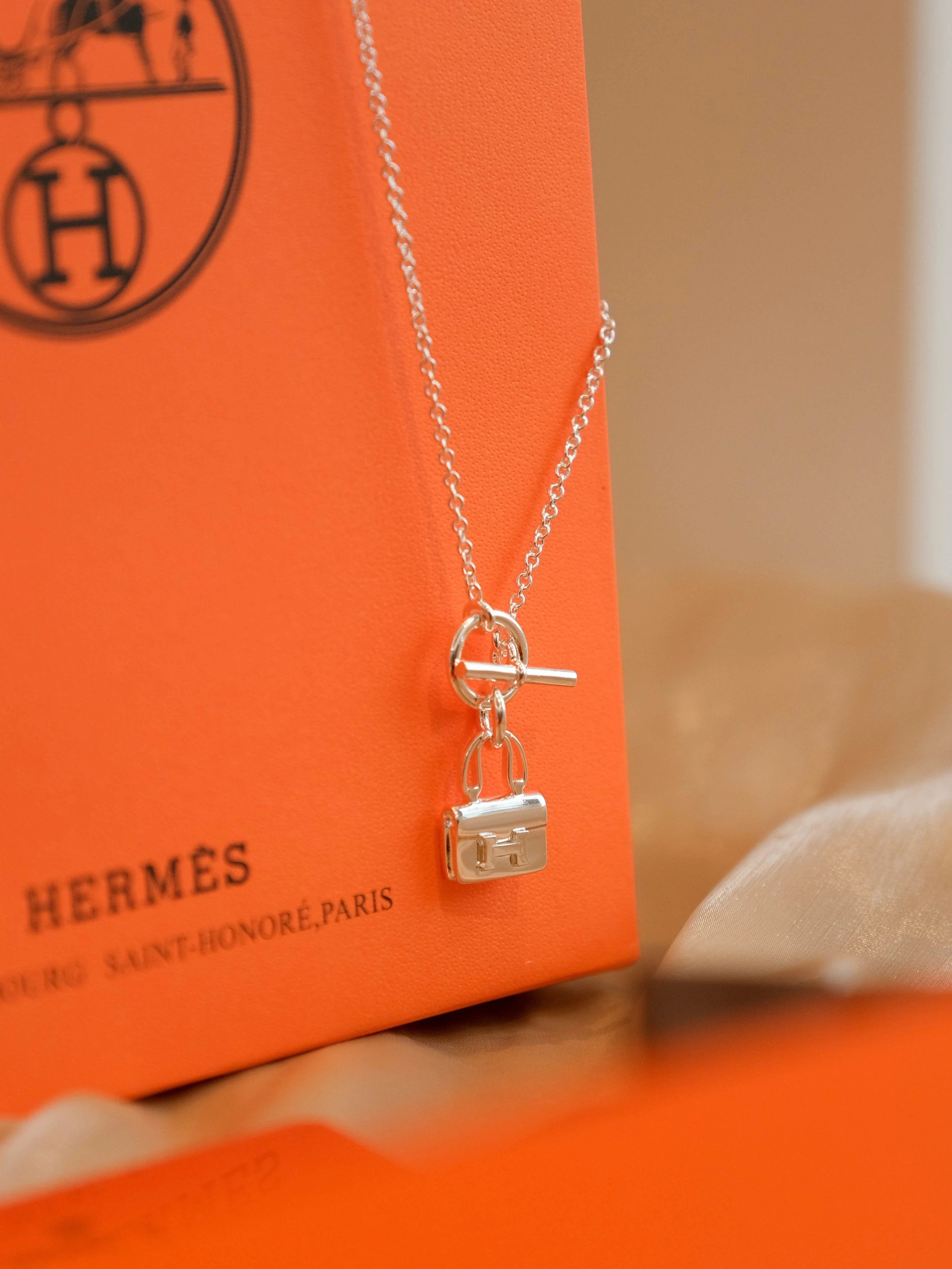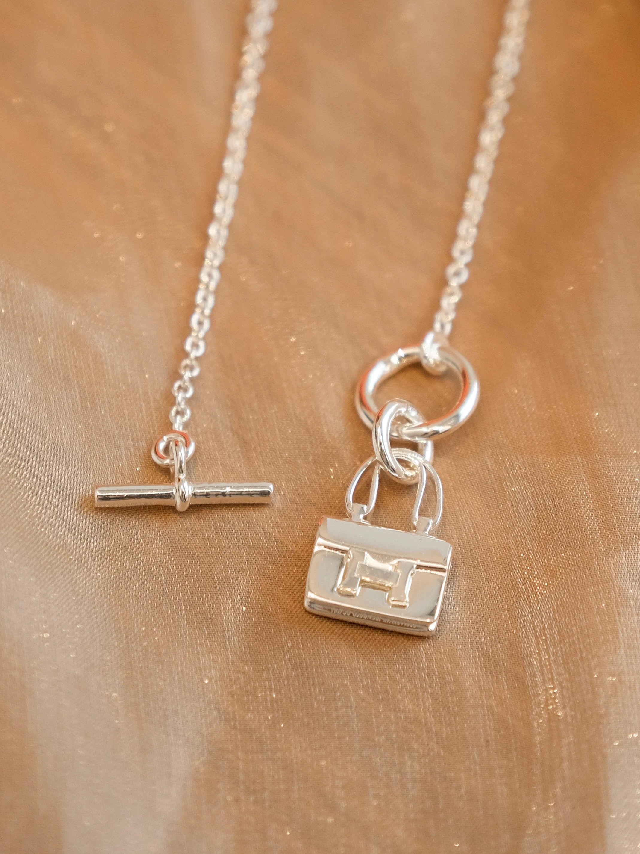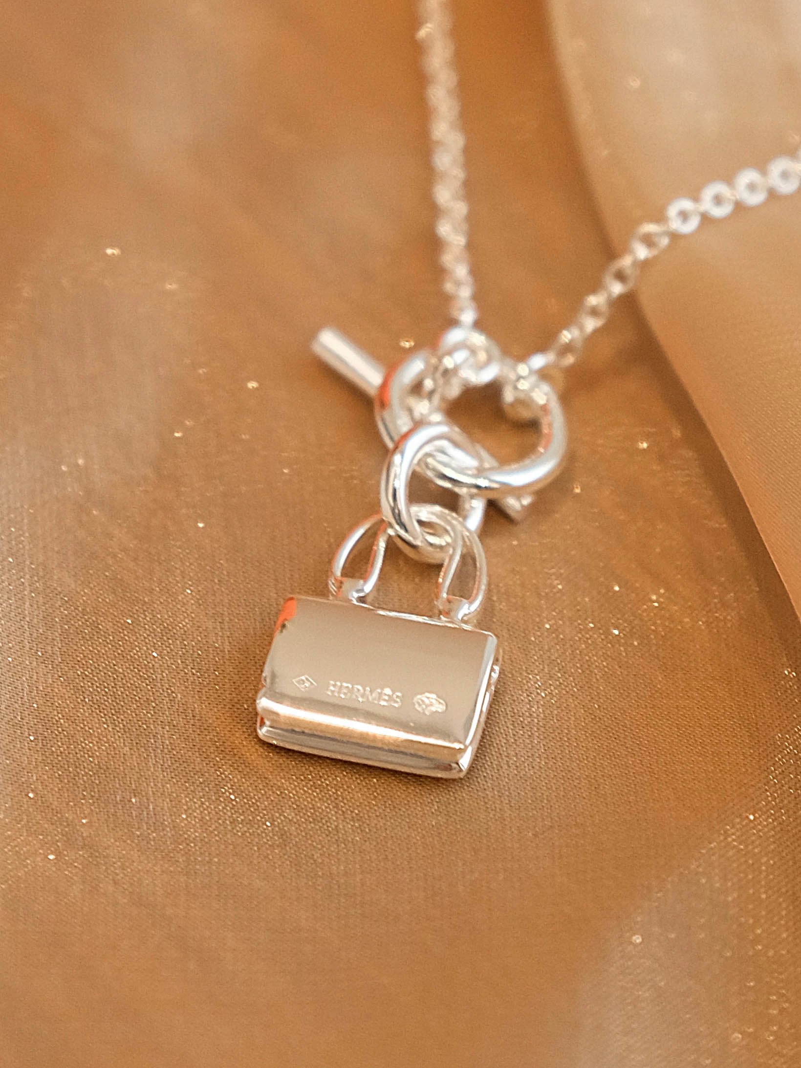 爱马仕包包银色项链
