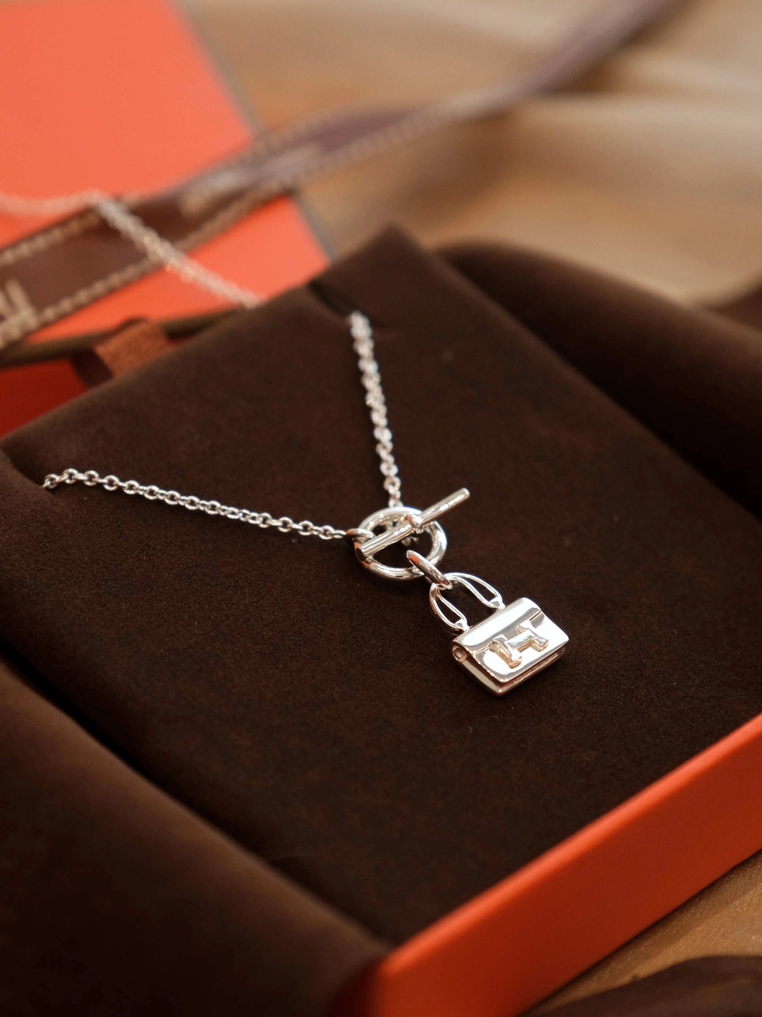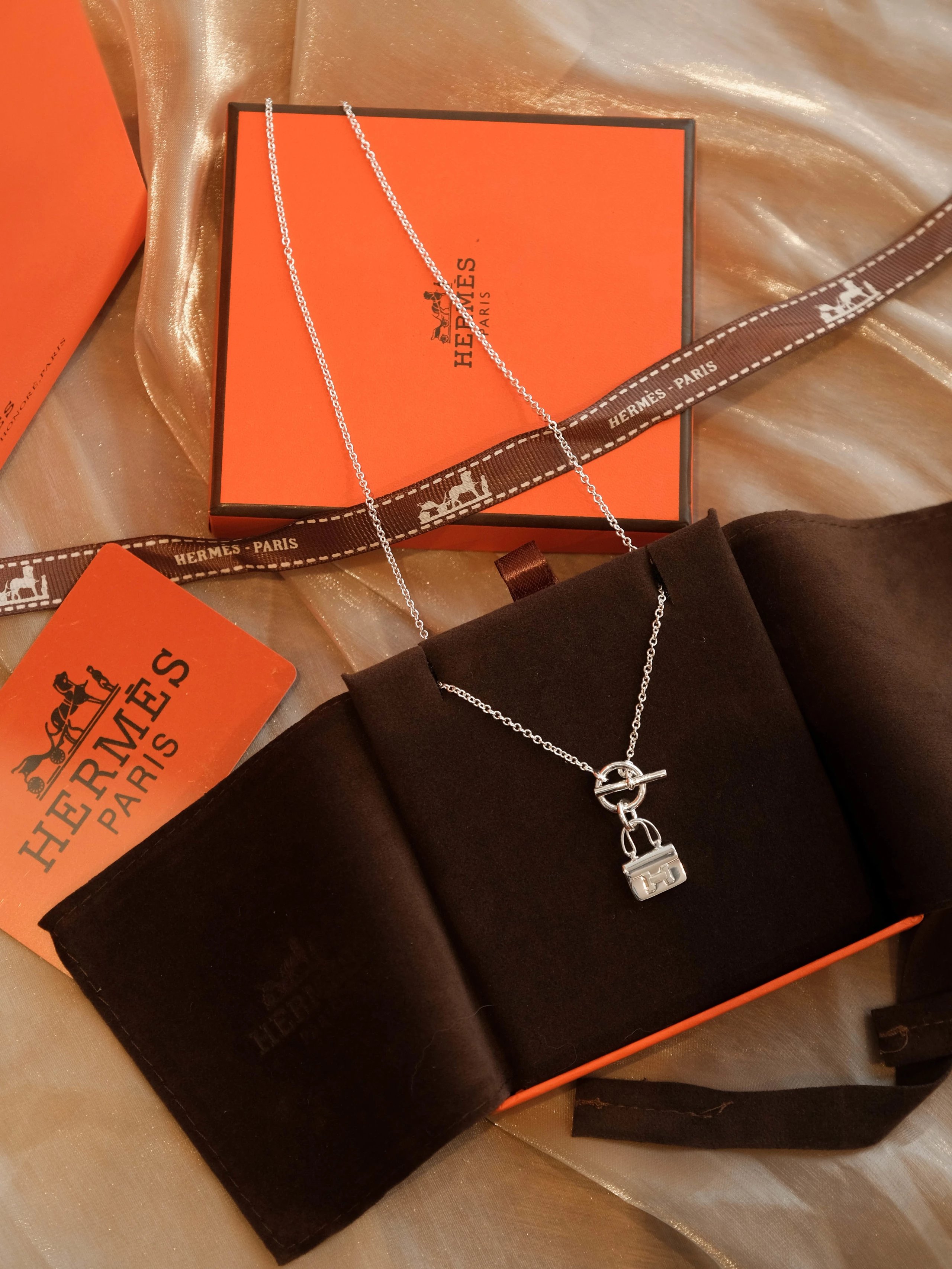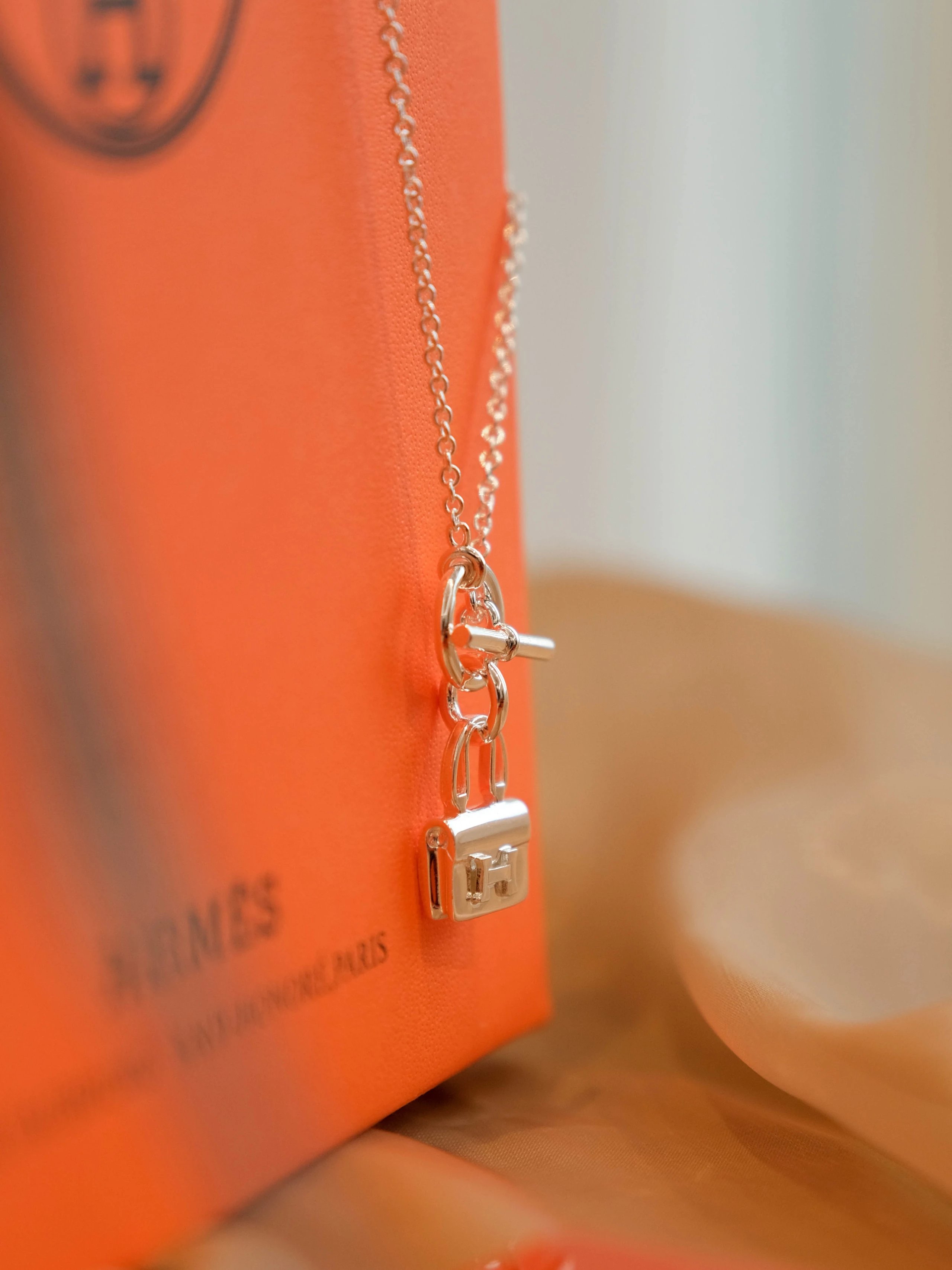 爱马仕包包银色项链