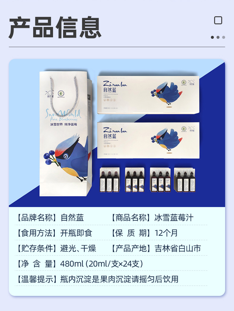 【东北特产】自然蓝 蓝莓汁 源自长白山无添加未添加糖 鲜果榨取原汁