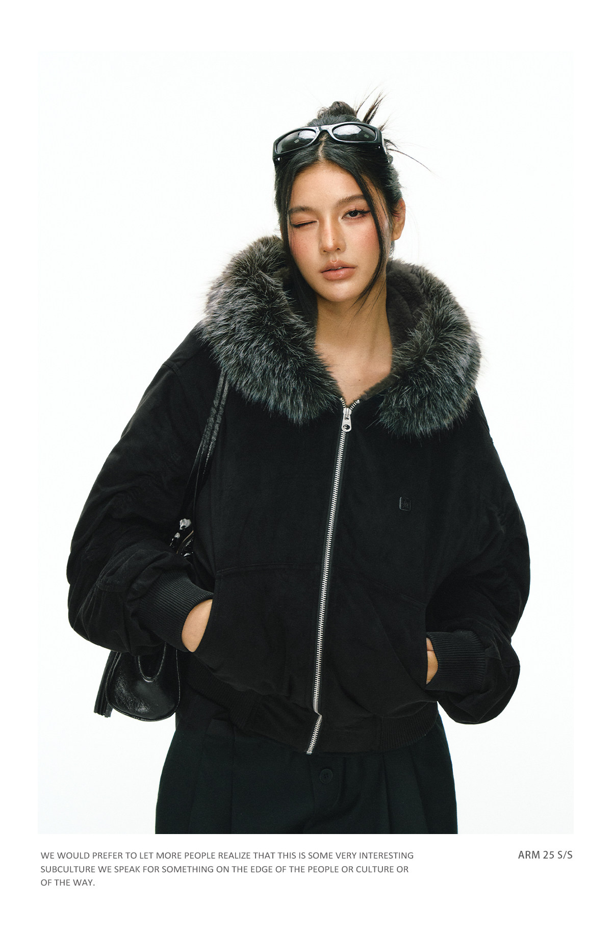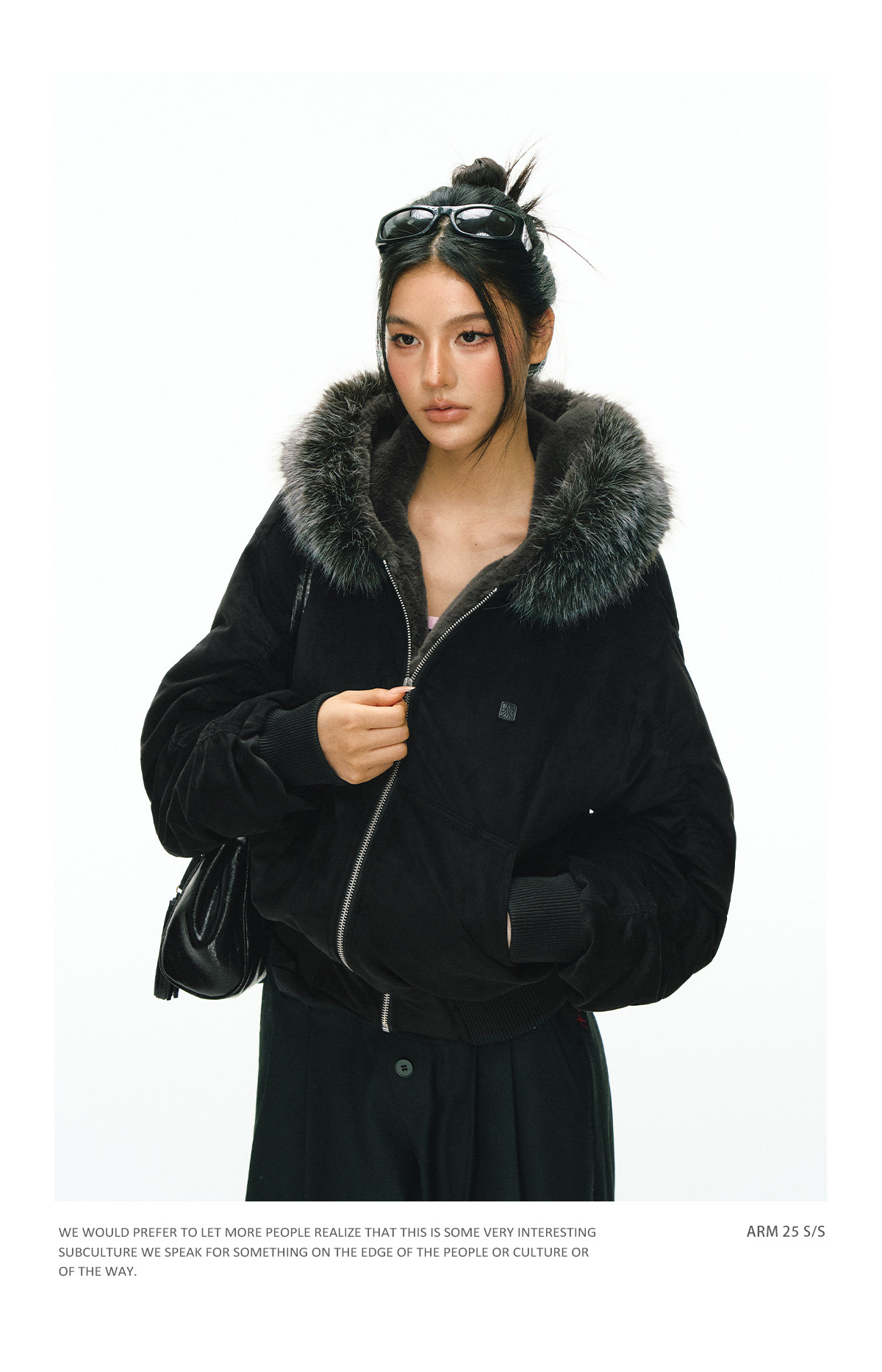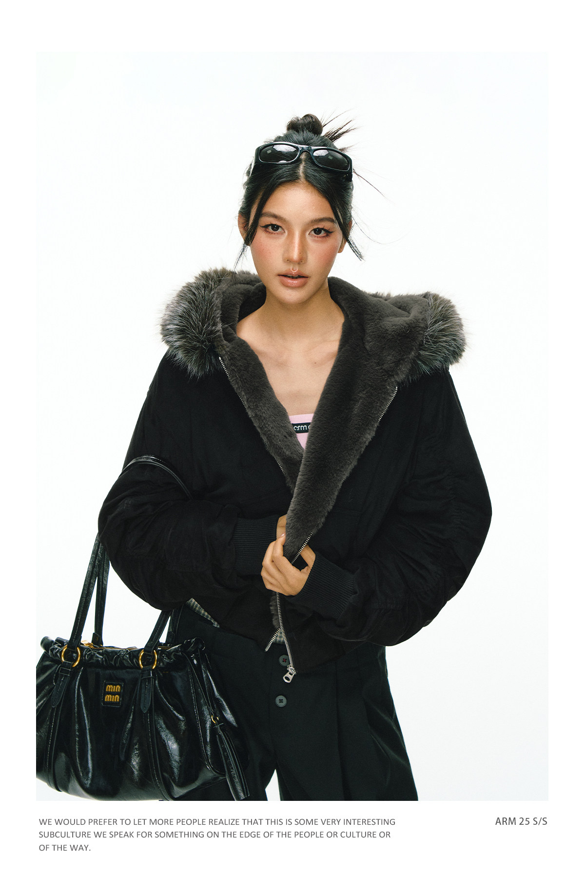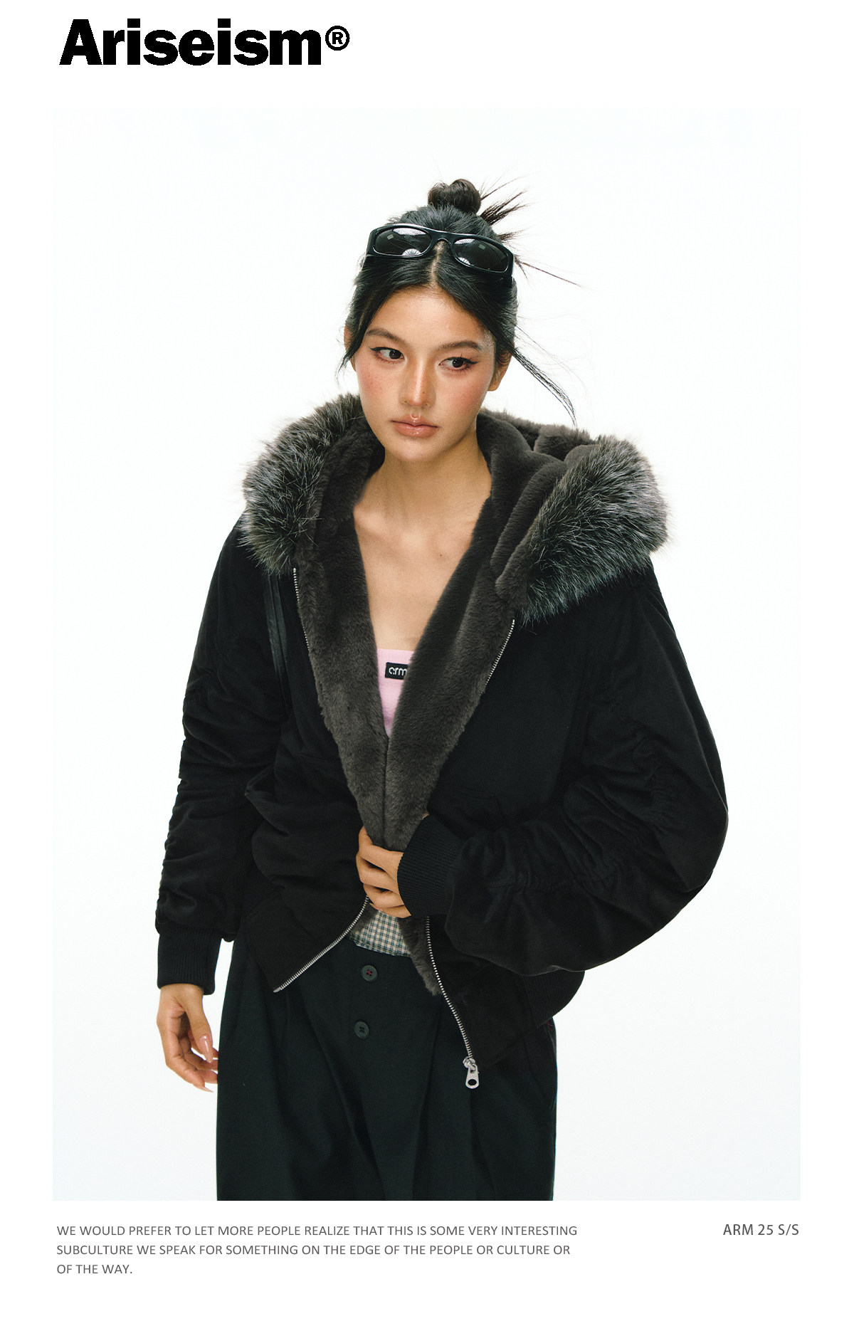 Ariseism 美式复古设计感连帽可拆卸毛领棉服女冬季新款