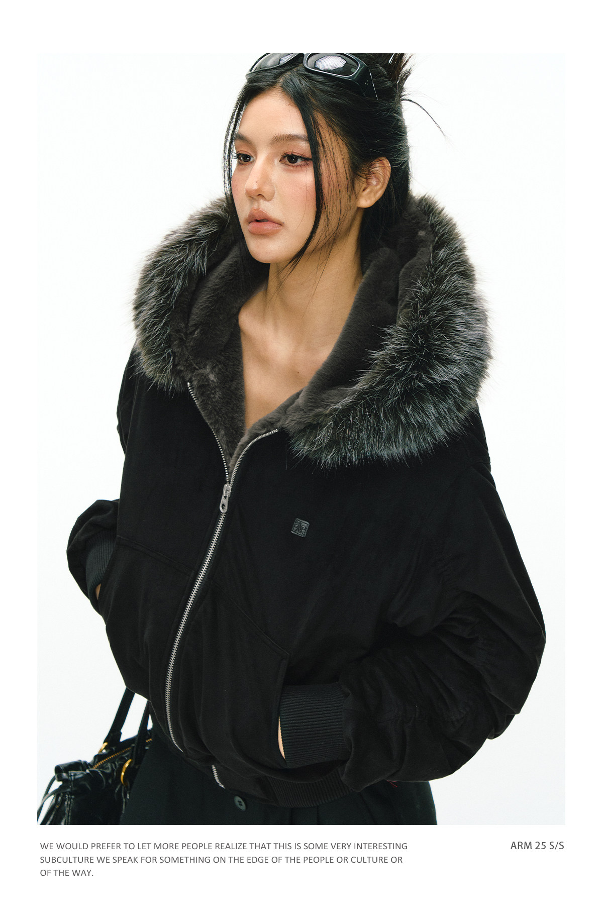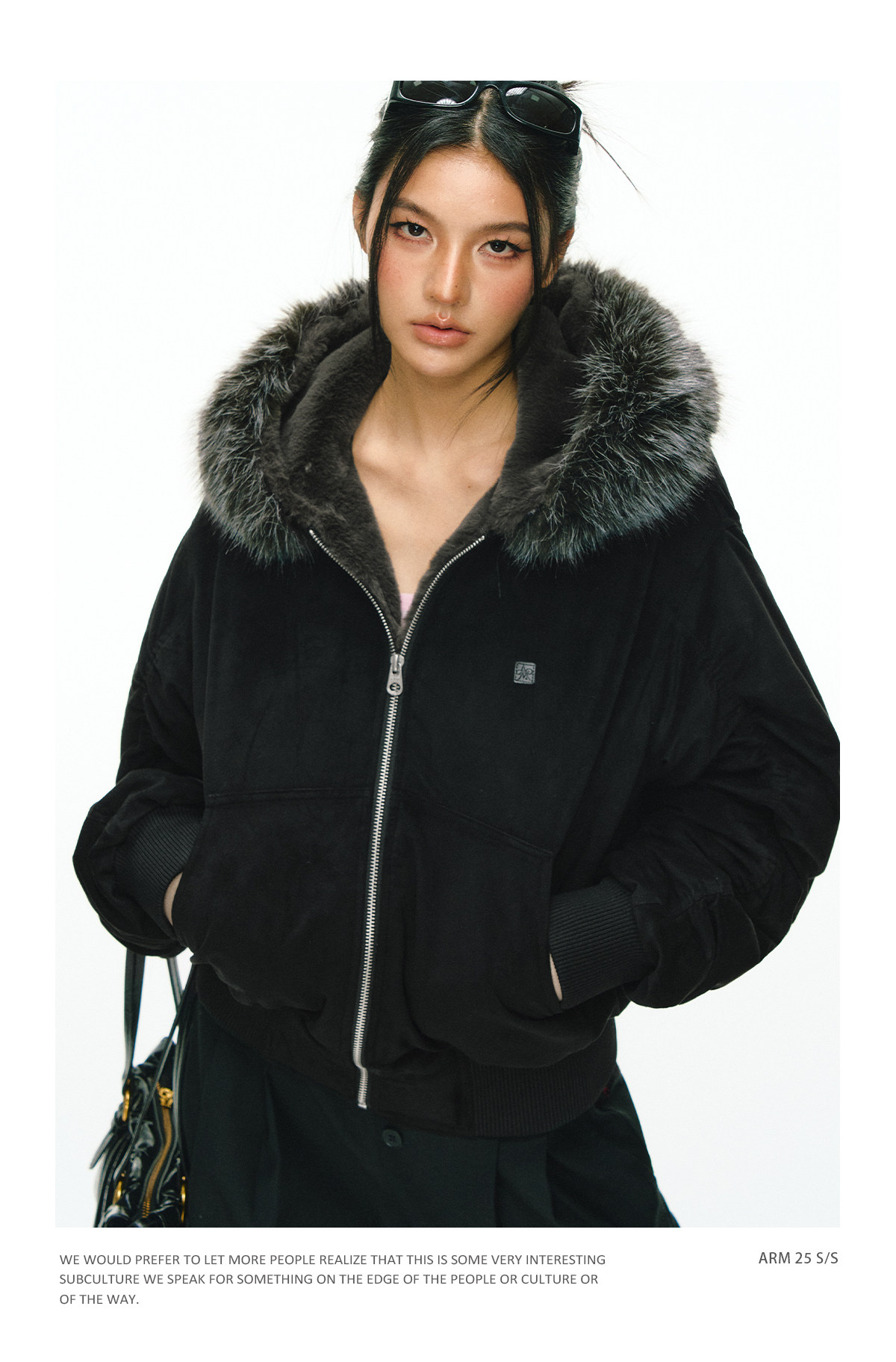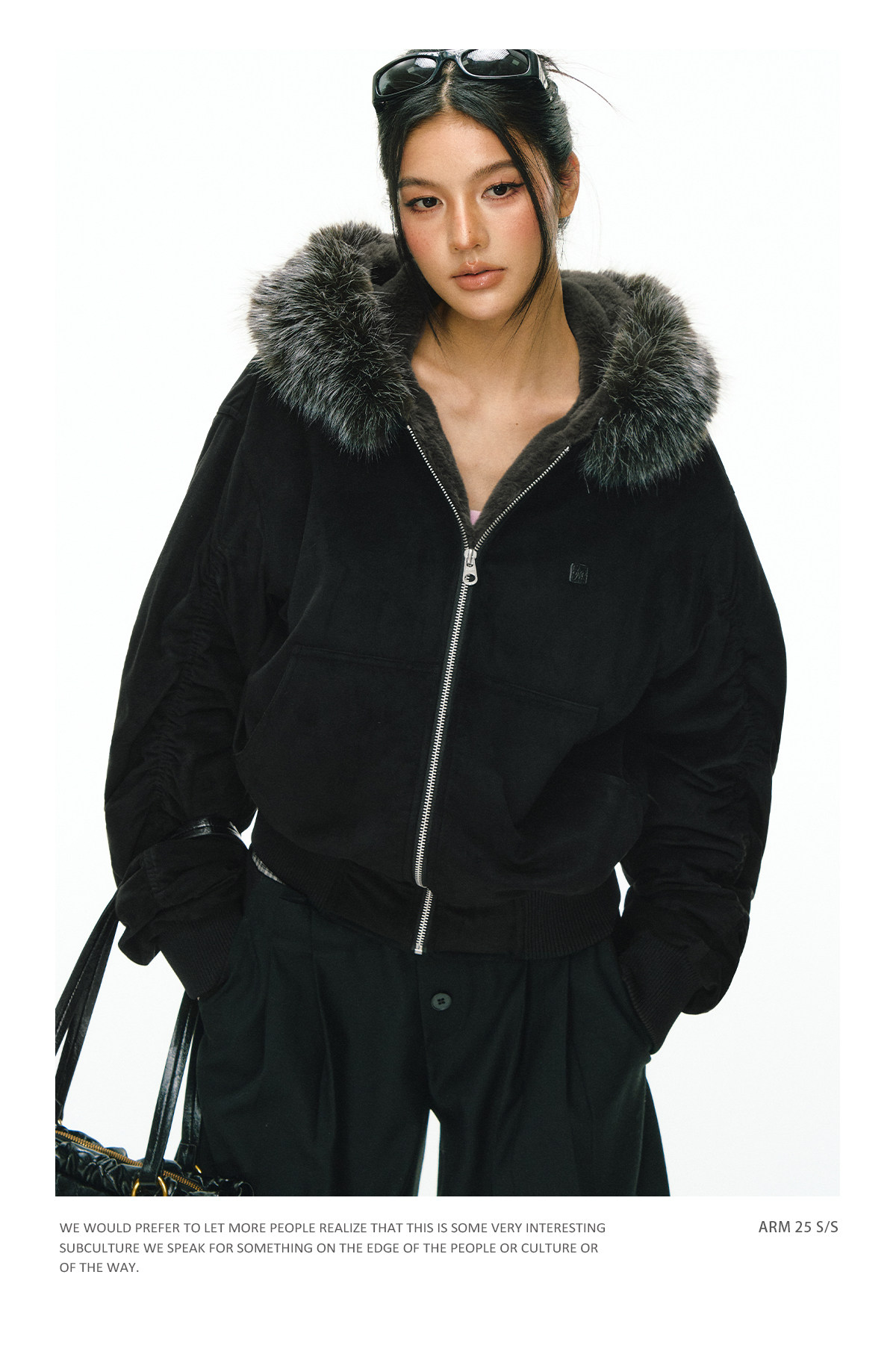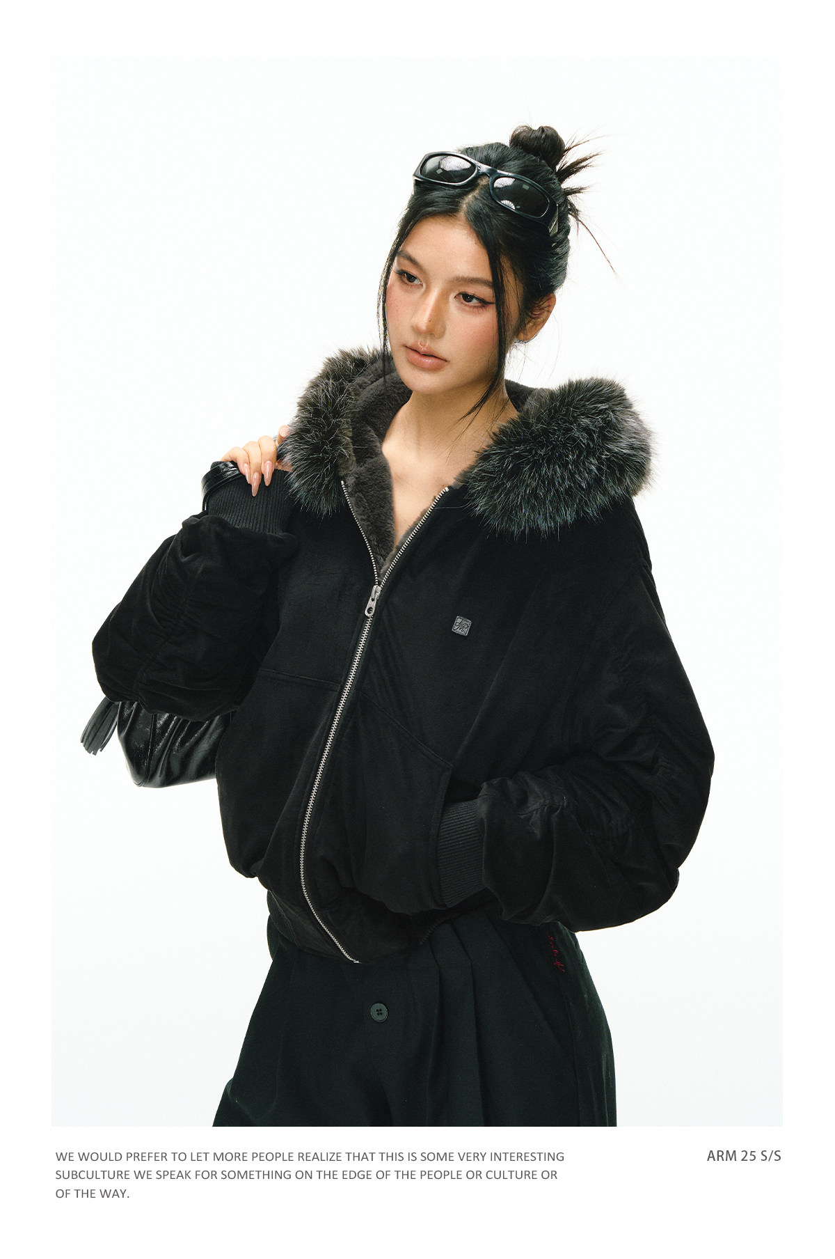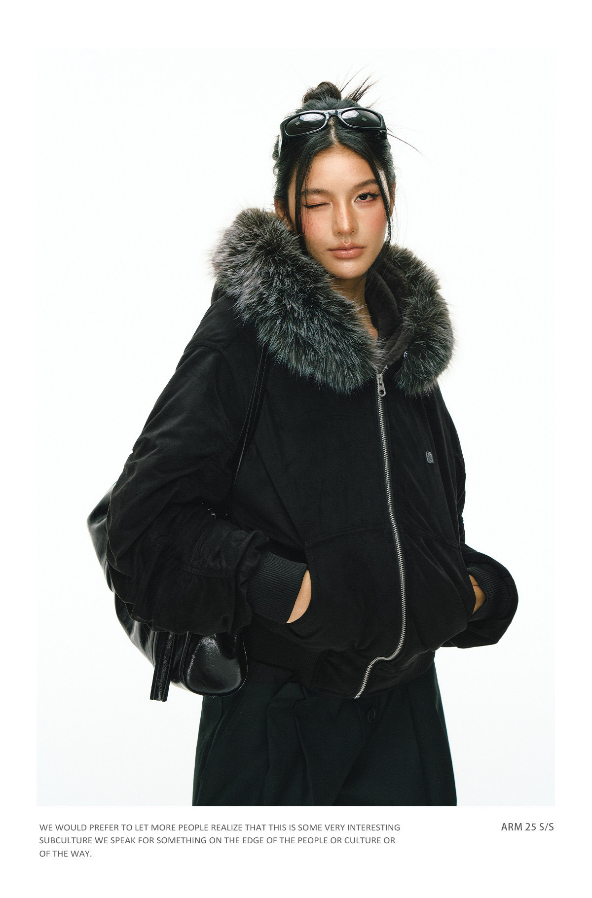 Ariseism 美式复古设计感连帽可拆卸毛领棉服女冬季新款
