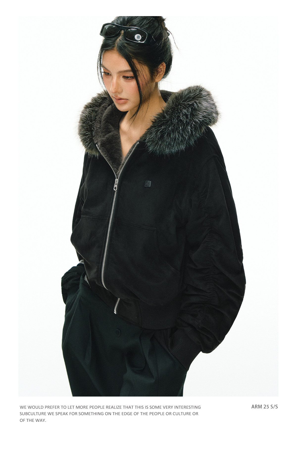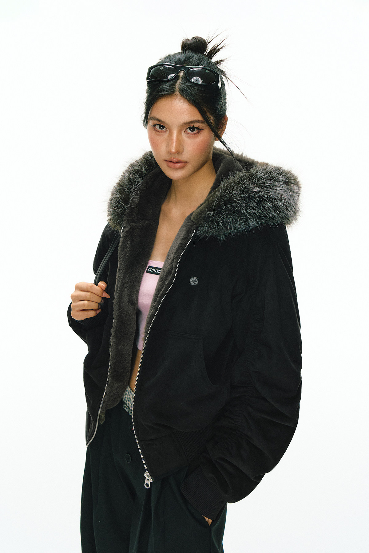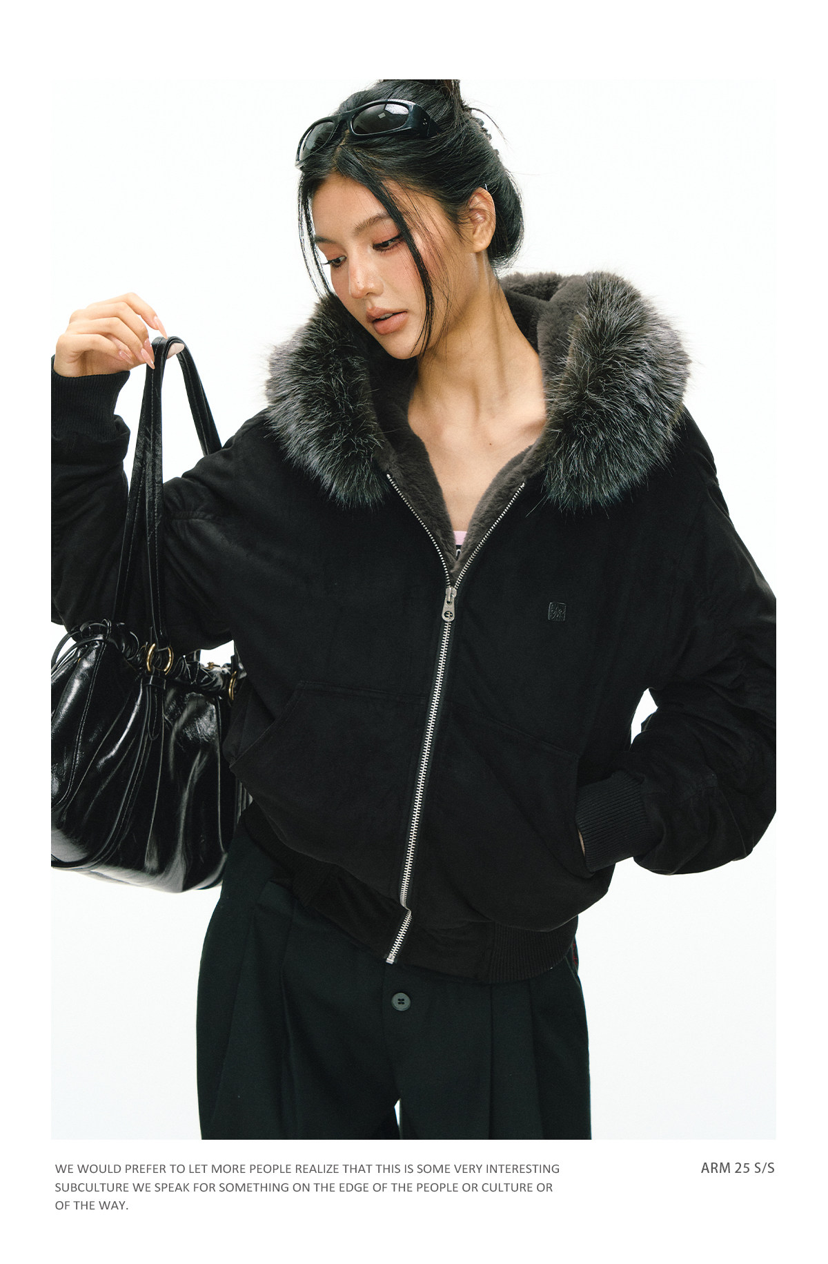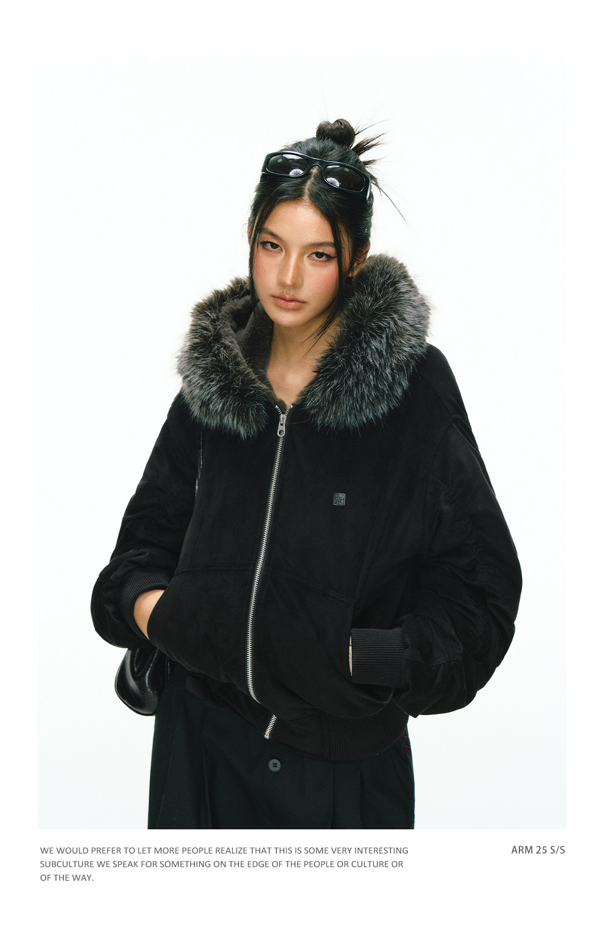 Ariseism 美式复古设计感连帽可拆卸毛领棉服女冬季新款