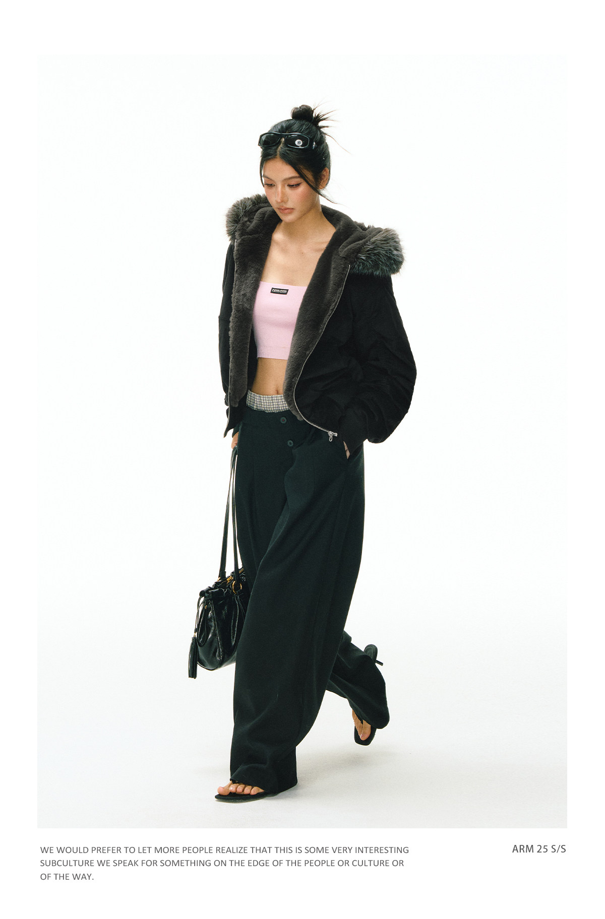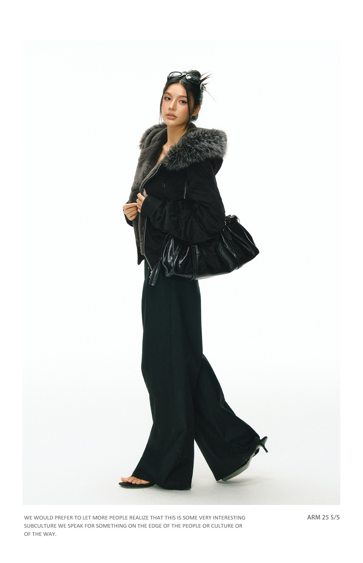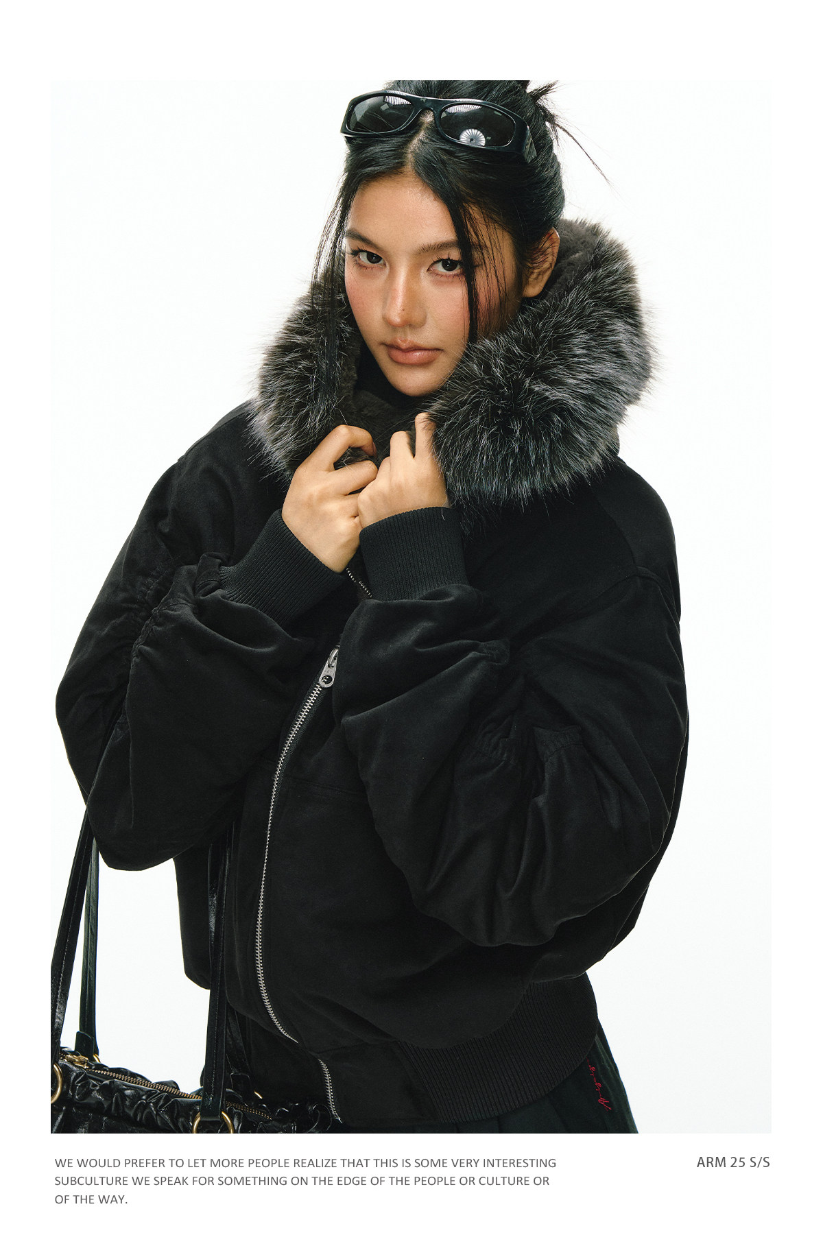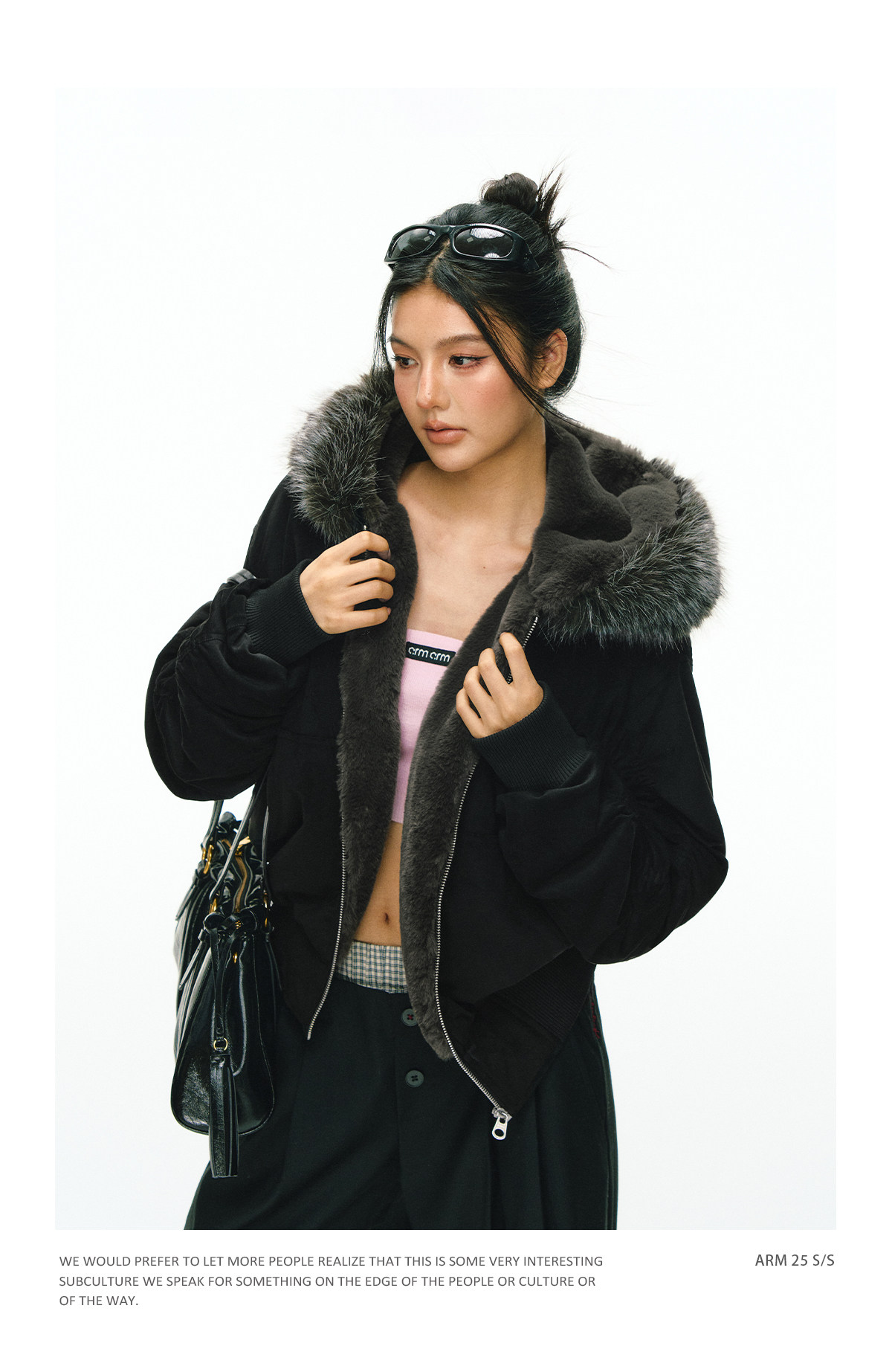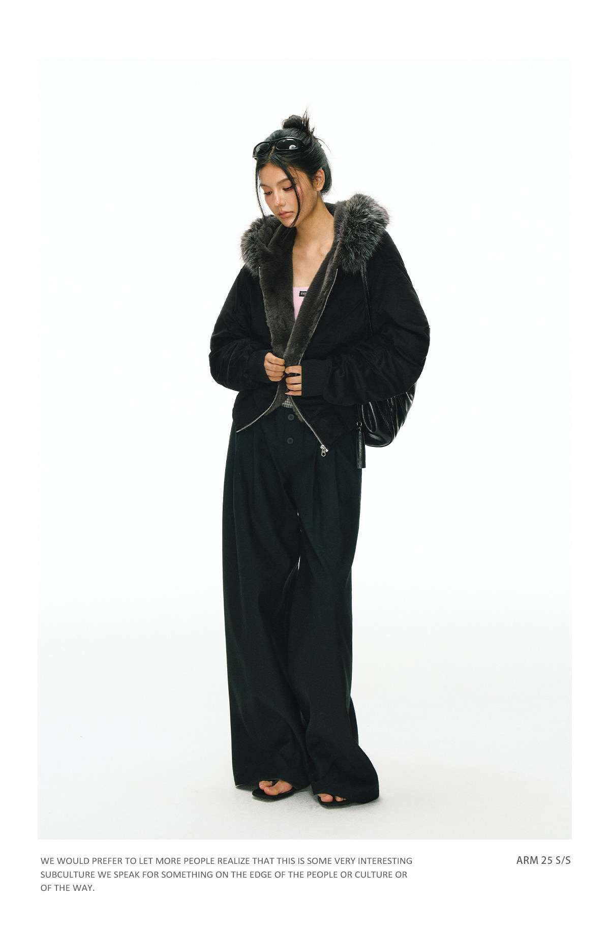 Ariseism 美式复古设计感连帽可拆卸毛领棉服女冬季新款
