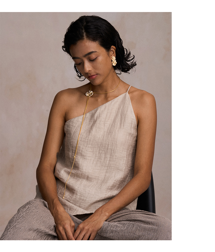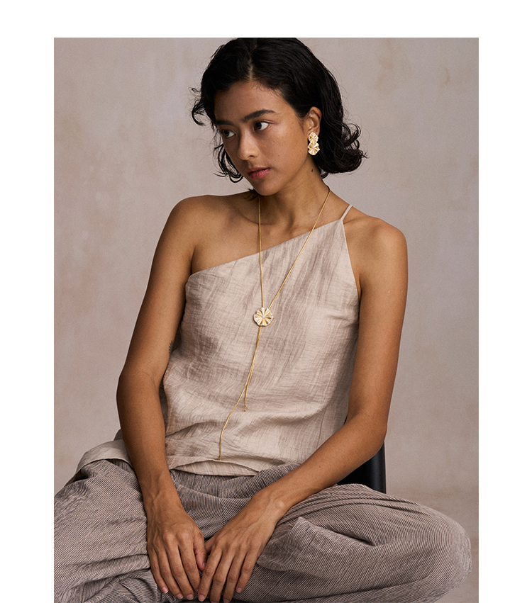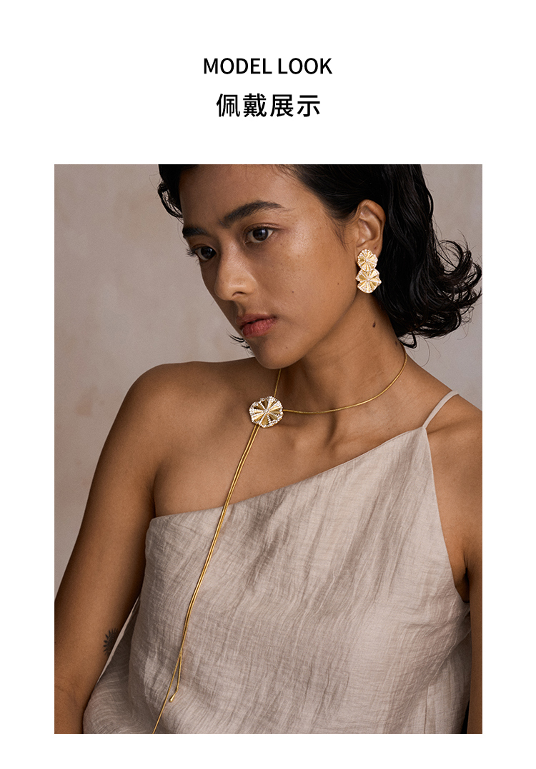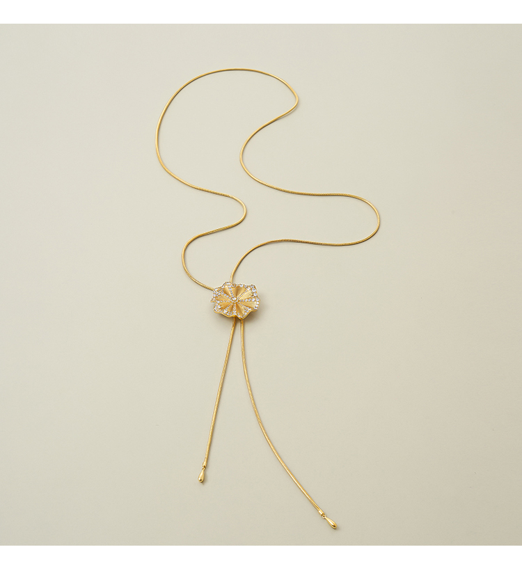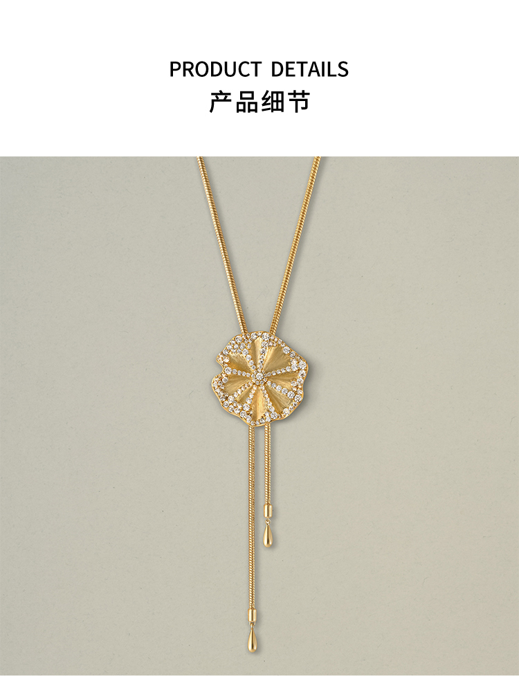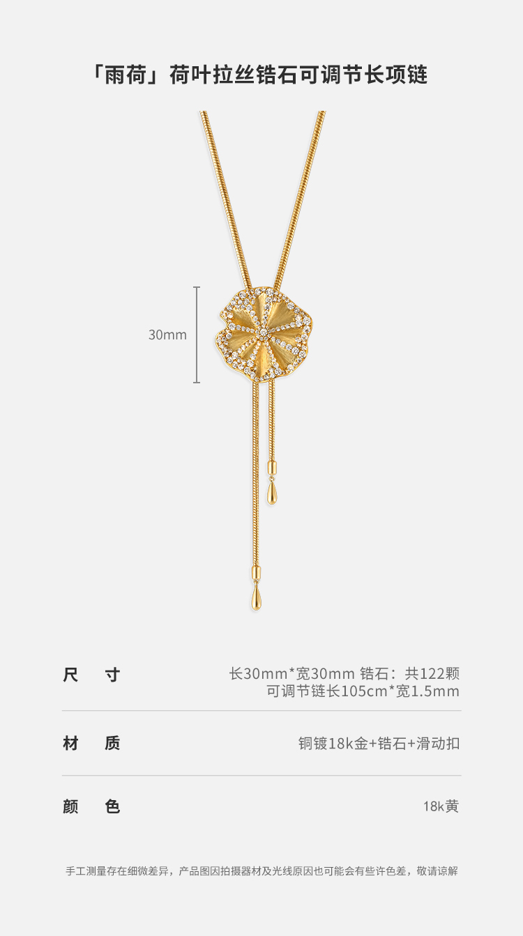 ANGEL ISLAND「雨荷」荷叶拉丝锆石可调节长项链