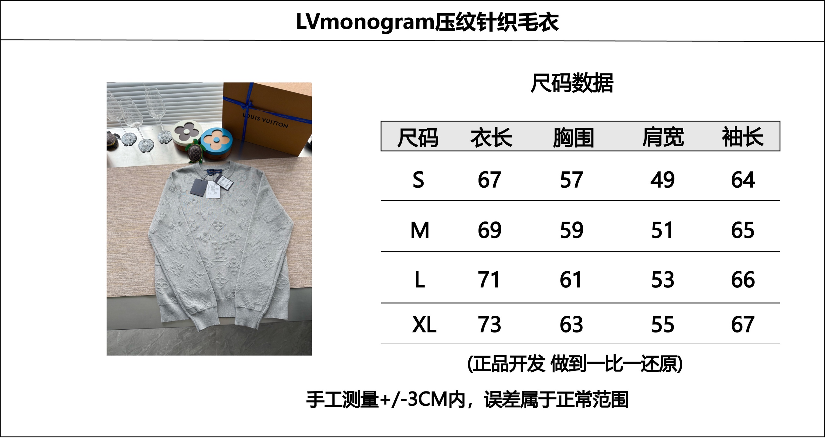 Louis Vuitton25FWMonogram压纹针织毛衣‼️整件衣服15100购买ZP拆解打造,采用定制棉质针织面料,做到100%全棉进口纱线,意大利制造,全幅饰以Monogram提花,定织标志性罗纹领口 袖口 下摆,超紧密度局部编织,真正做到1:1copy 码数:S M L XL