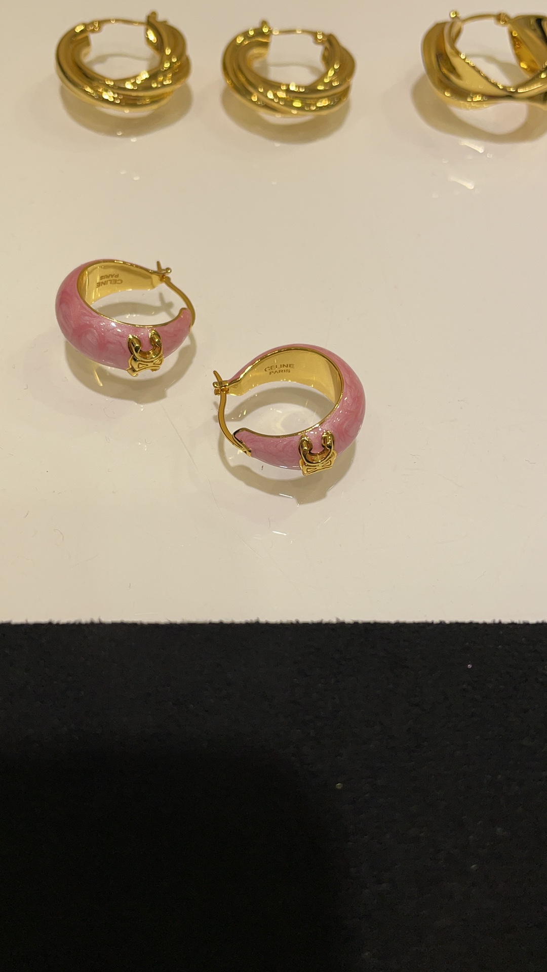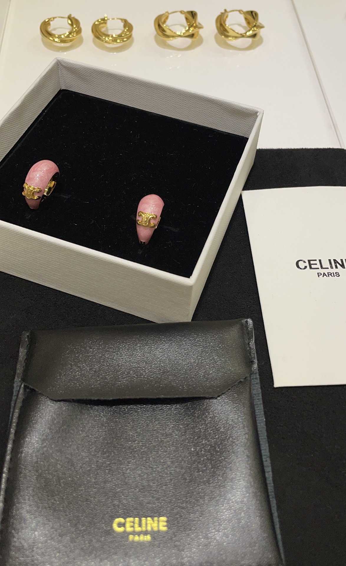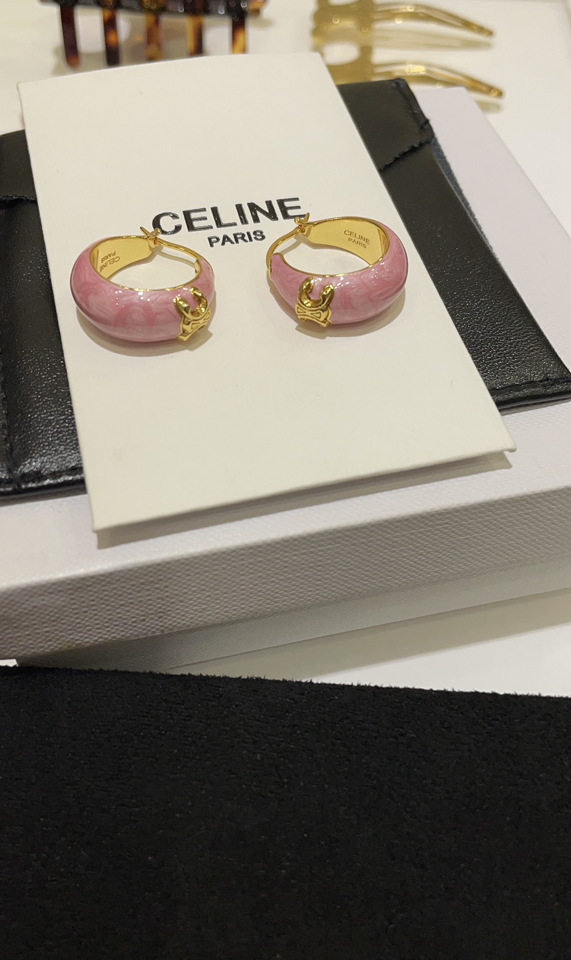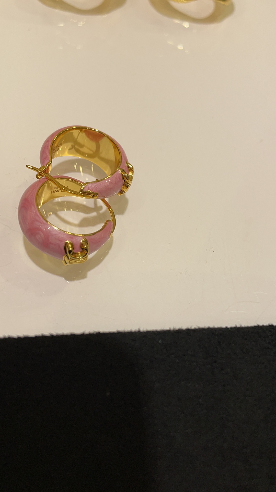 赛家 新款金色凯旋门徽标粉色耳环