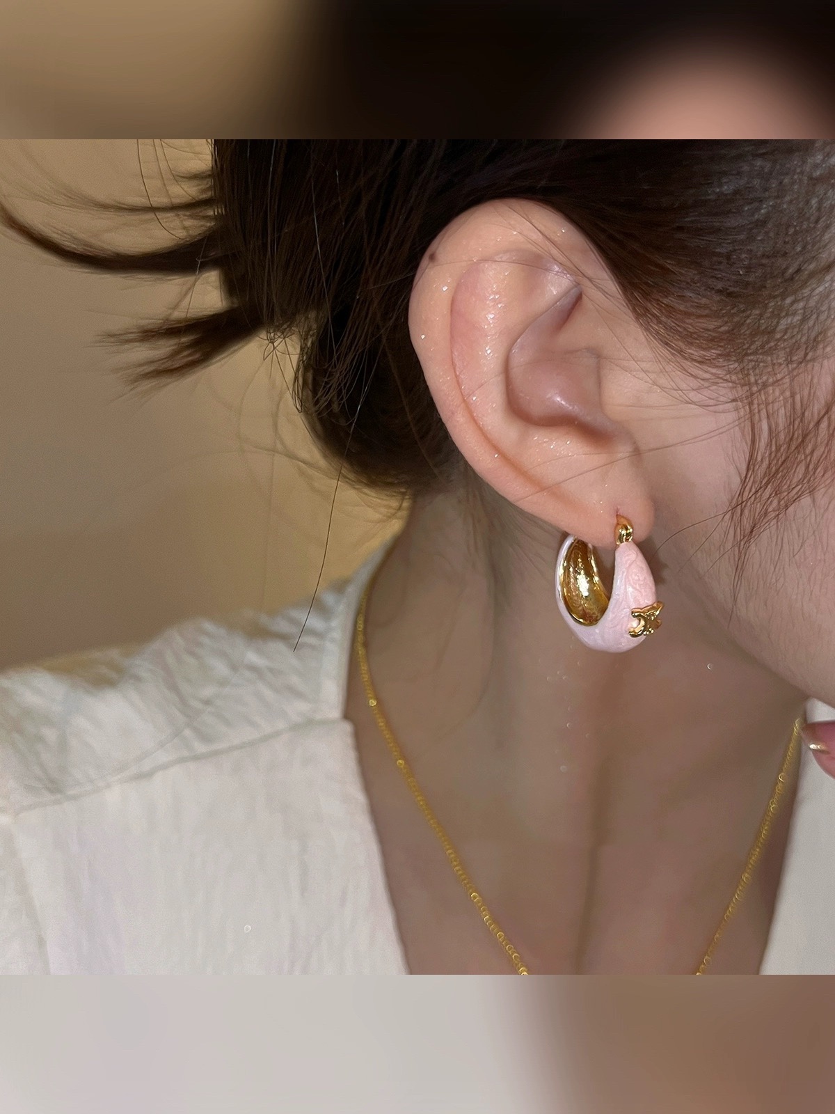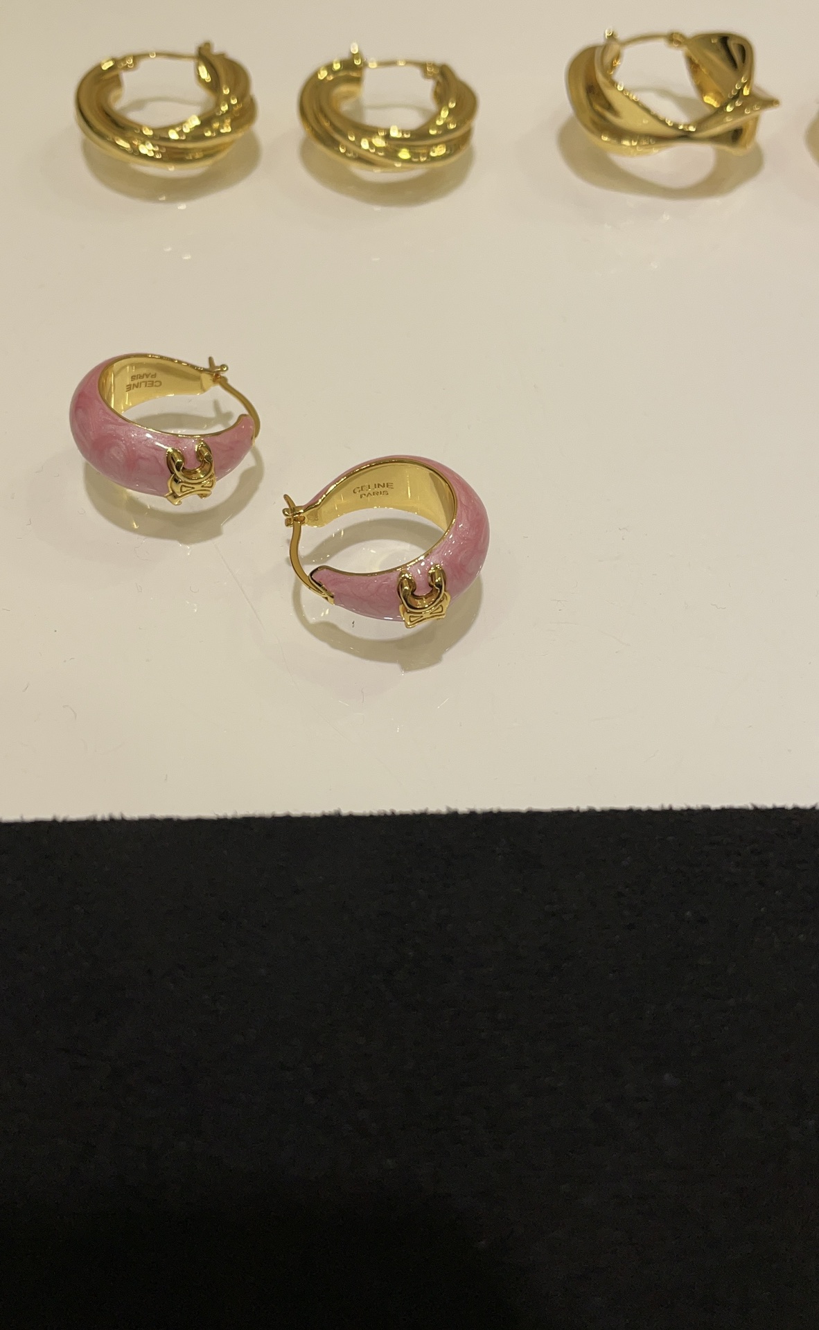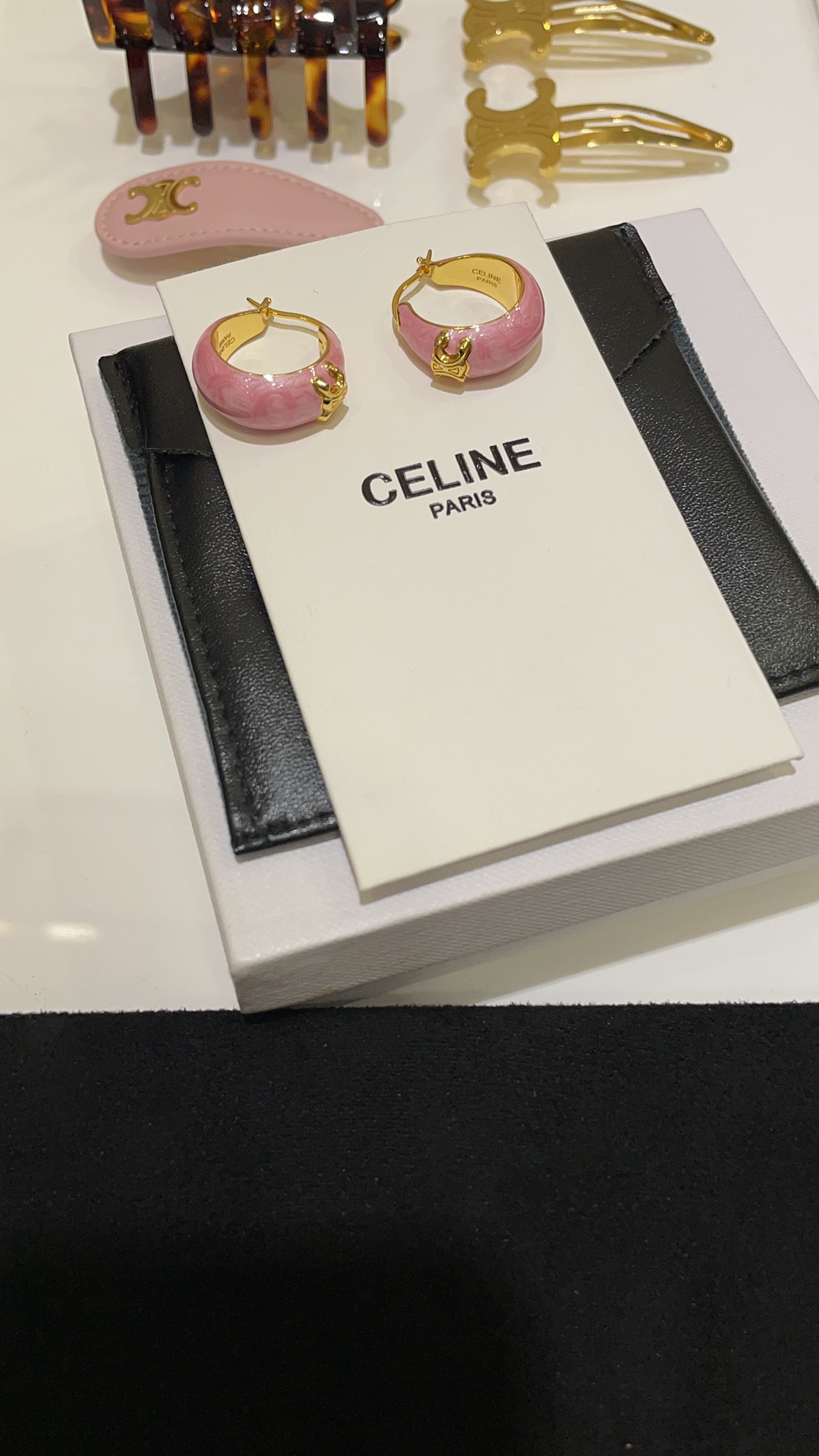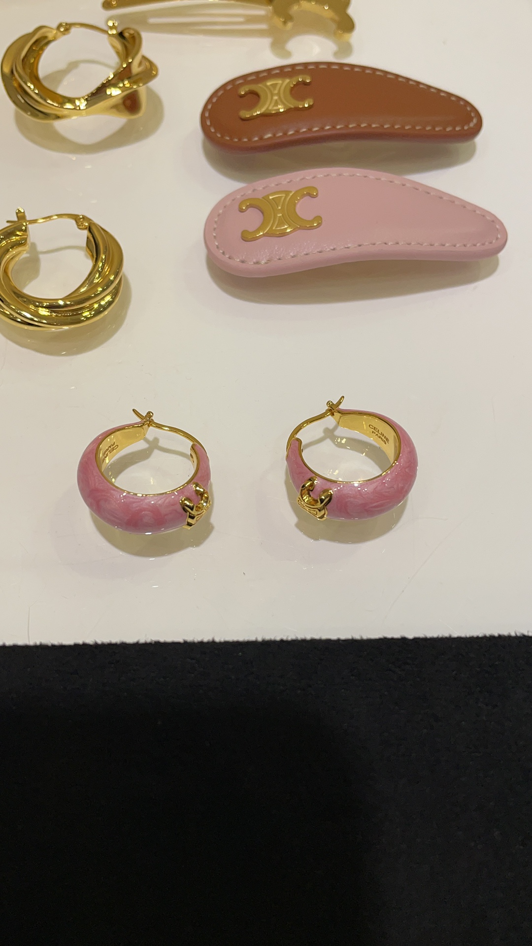 赛家 新款金色凯旋门徽标粉色耳环