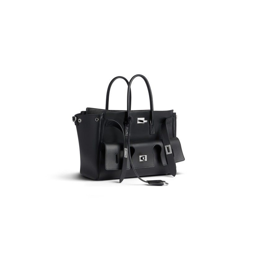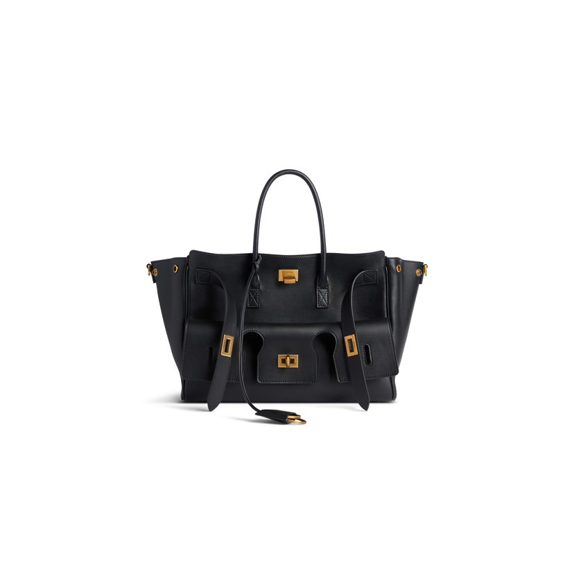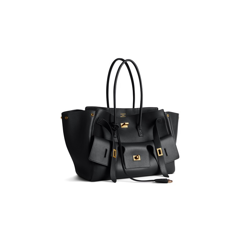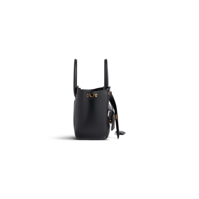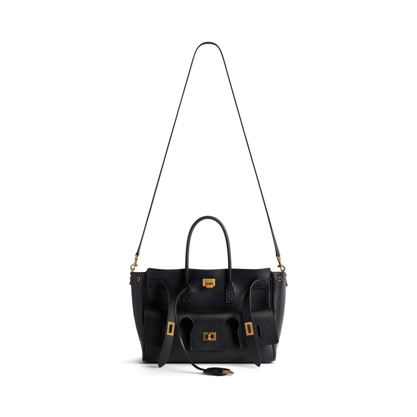 Balenciaga巴黎世家 BEL AIR 可调节可拆卸肩带做旧金色金属配件 光滑牛皮革 单肩斜挎手提包 小号 中号女款 黑色 金扣银扣(CB)