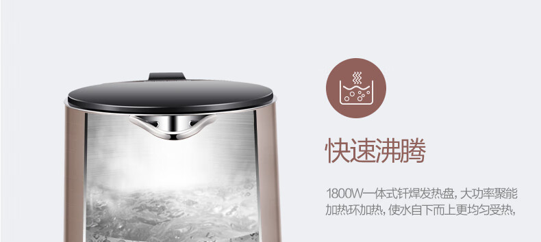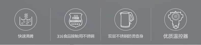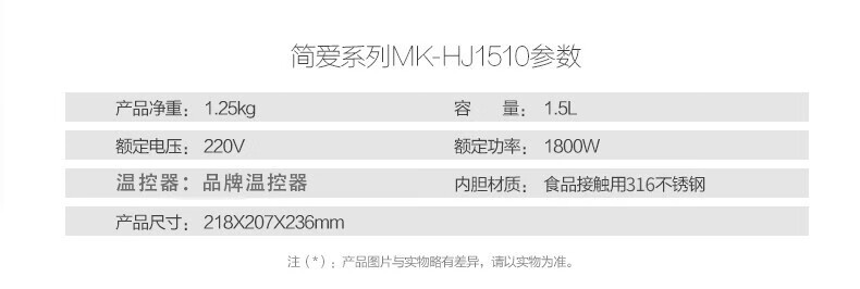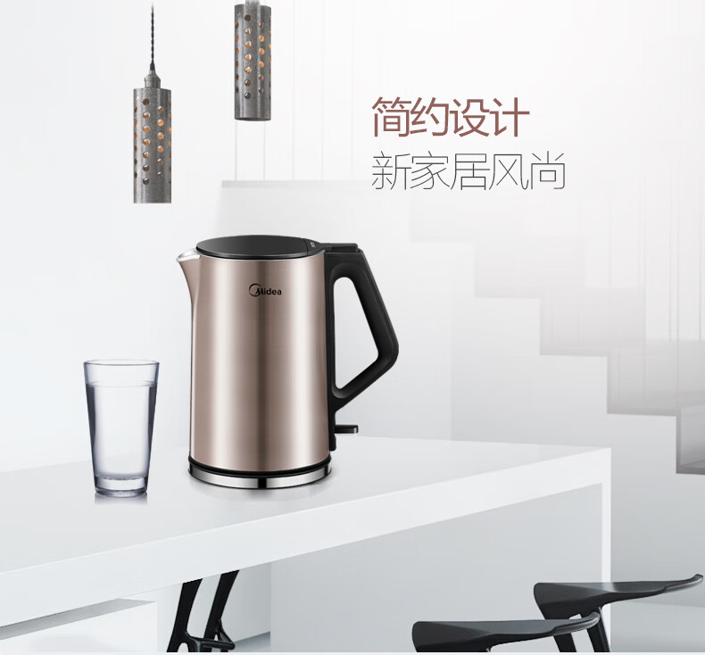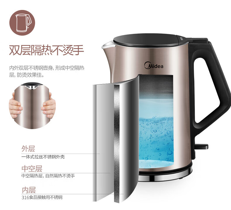 美的(Midea)电热水壶 家用1.5L烧水壶双钢防烫防干烧电茶壶热水壶 316不锈钢自动断电开水壶 HJ1510a
