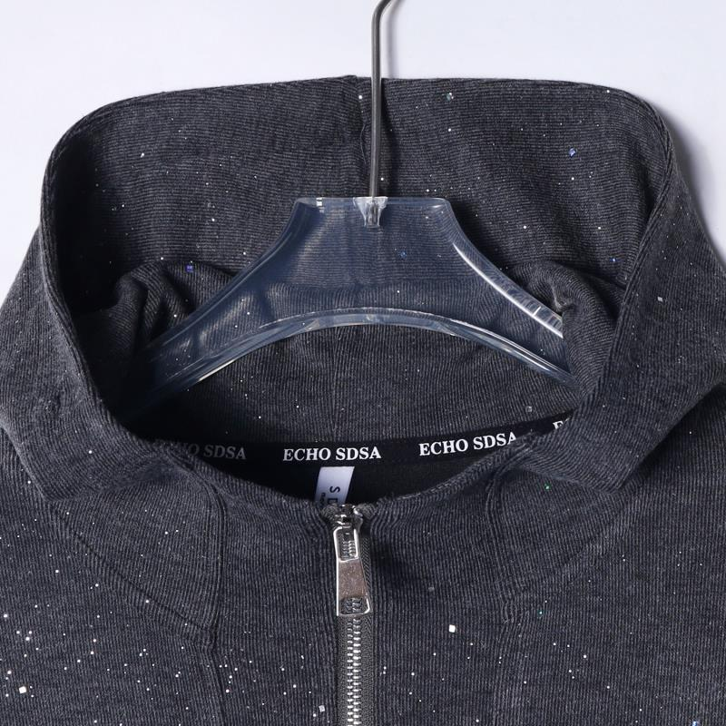 秋季新款时尚个性纯色满天星半拉链连帽卫衣休闲简约宽松上衣