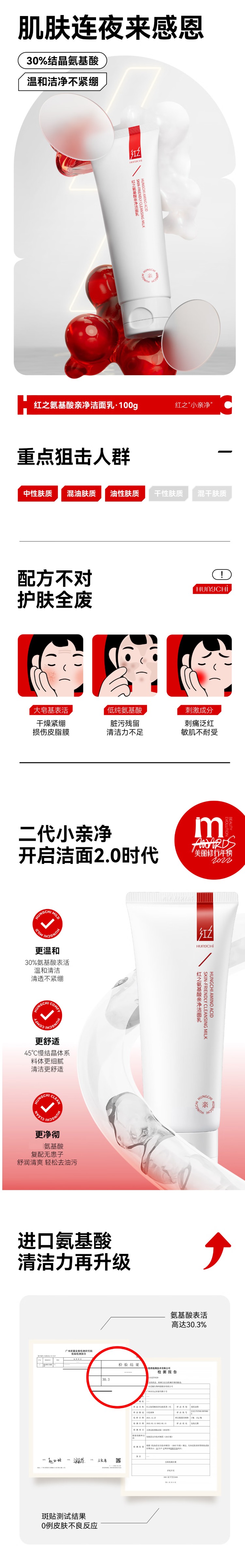 红之氢基酸亲净洁面乳 第二代小亲净100g