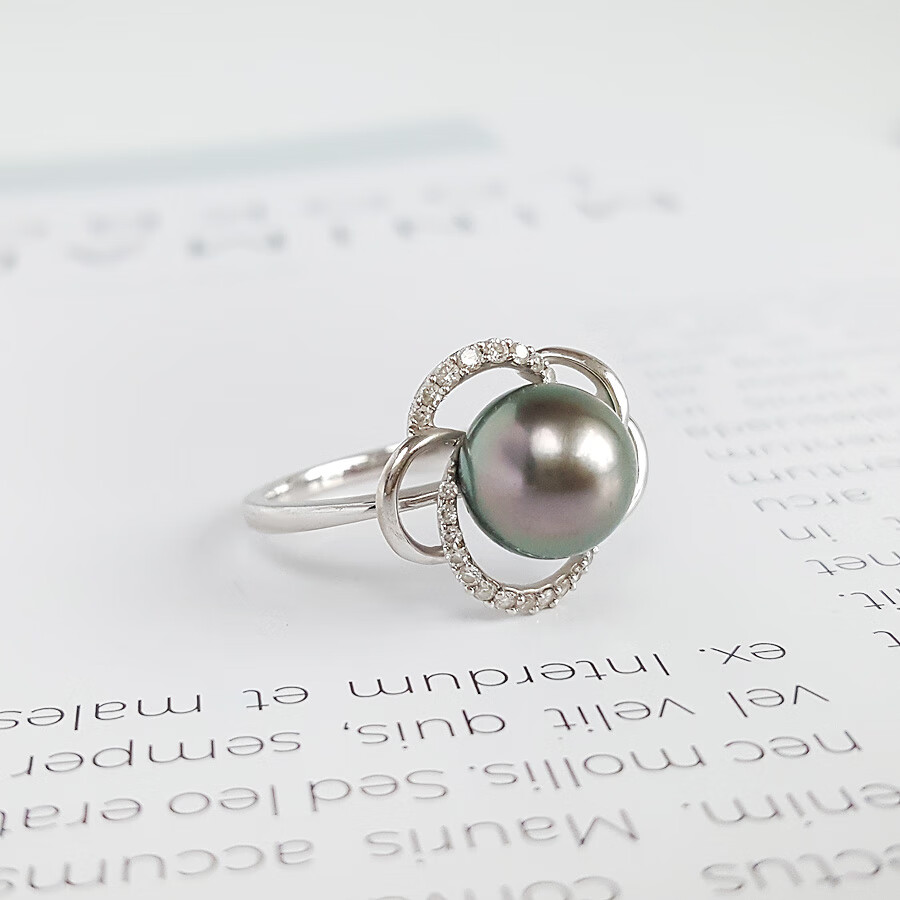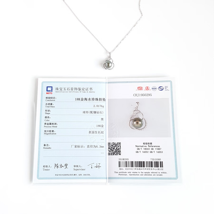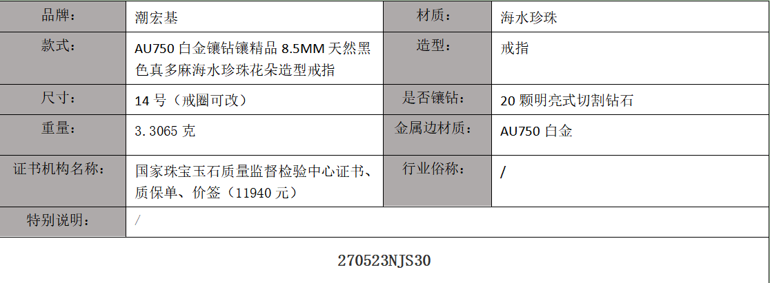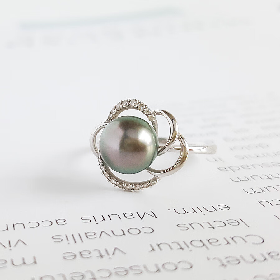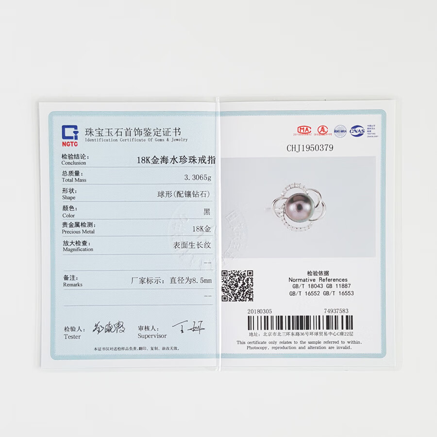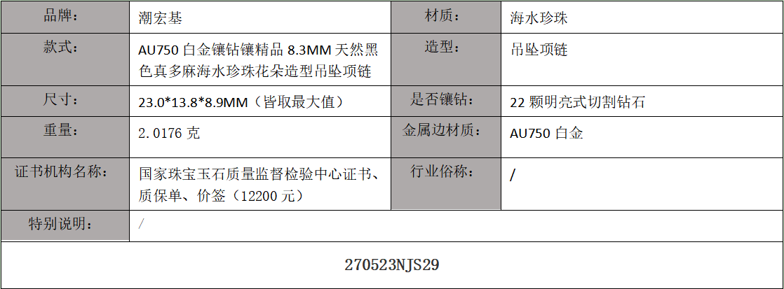 【天然正品】潮宏基 8.3MM天然黑色真多麻海水珍珠花朵造型 项链/戒指 270523NJS29 270523NJS30