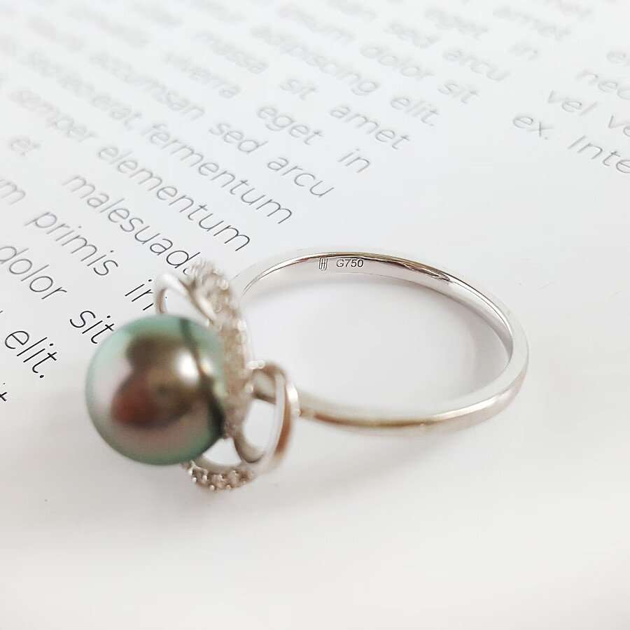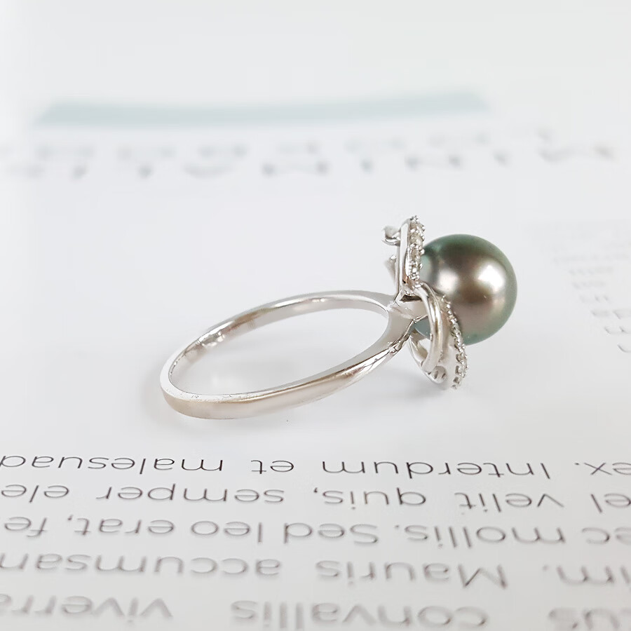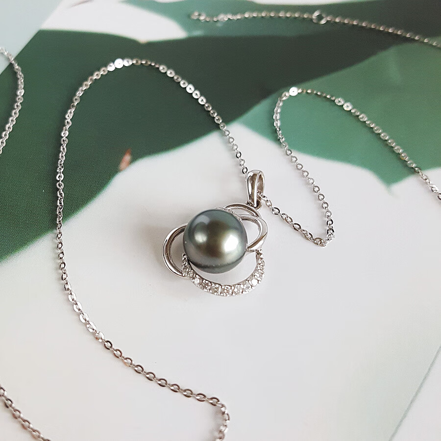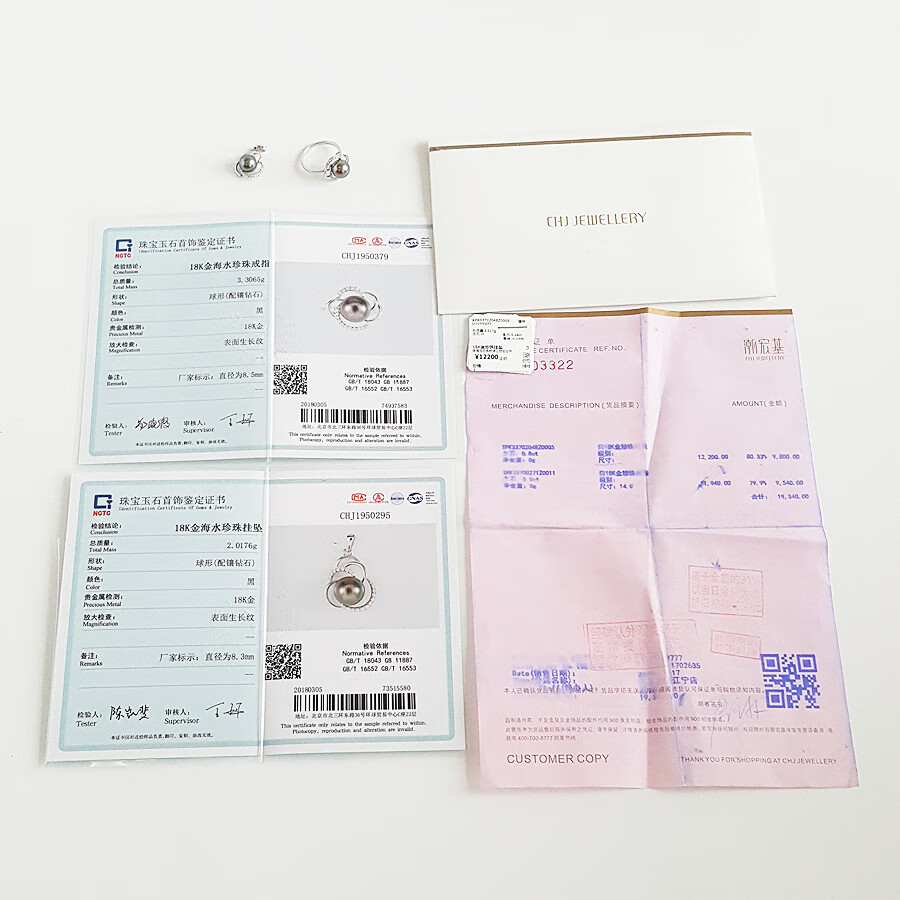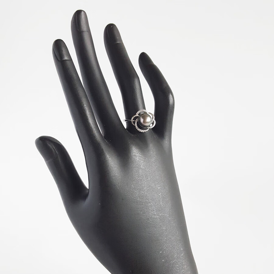 【天然正品】潮宏基 8.3MM天然黑色真多麻海水珍珠花朵造型 项链/戒指 270523NJS29 270523NJS30