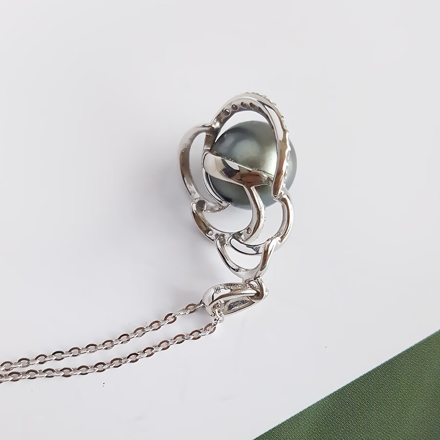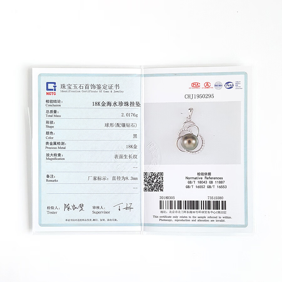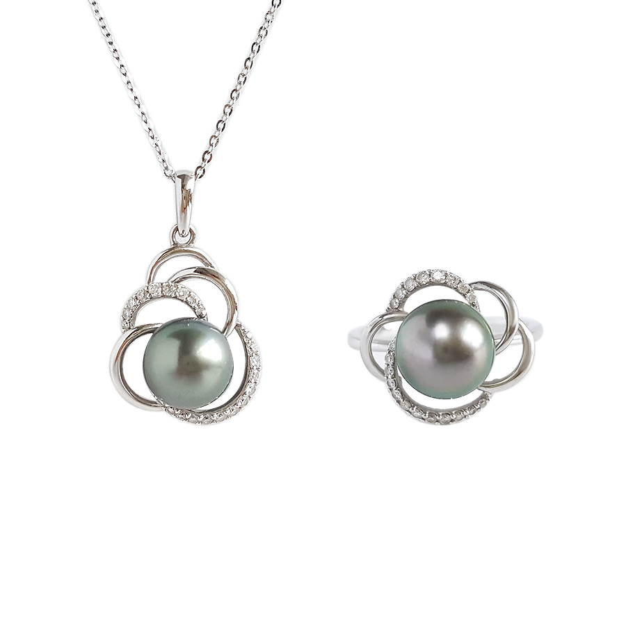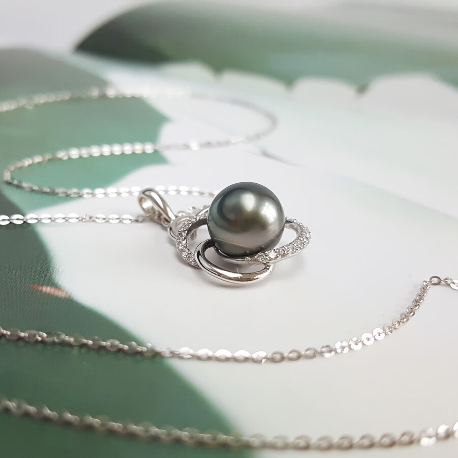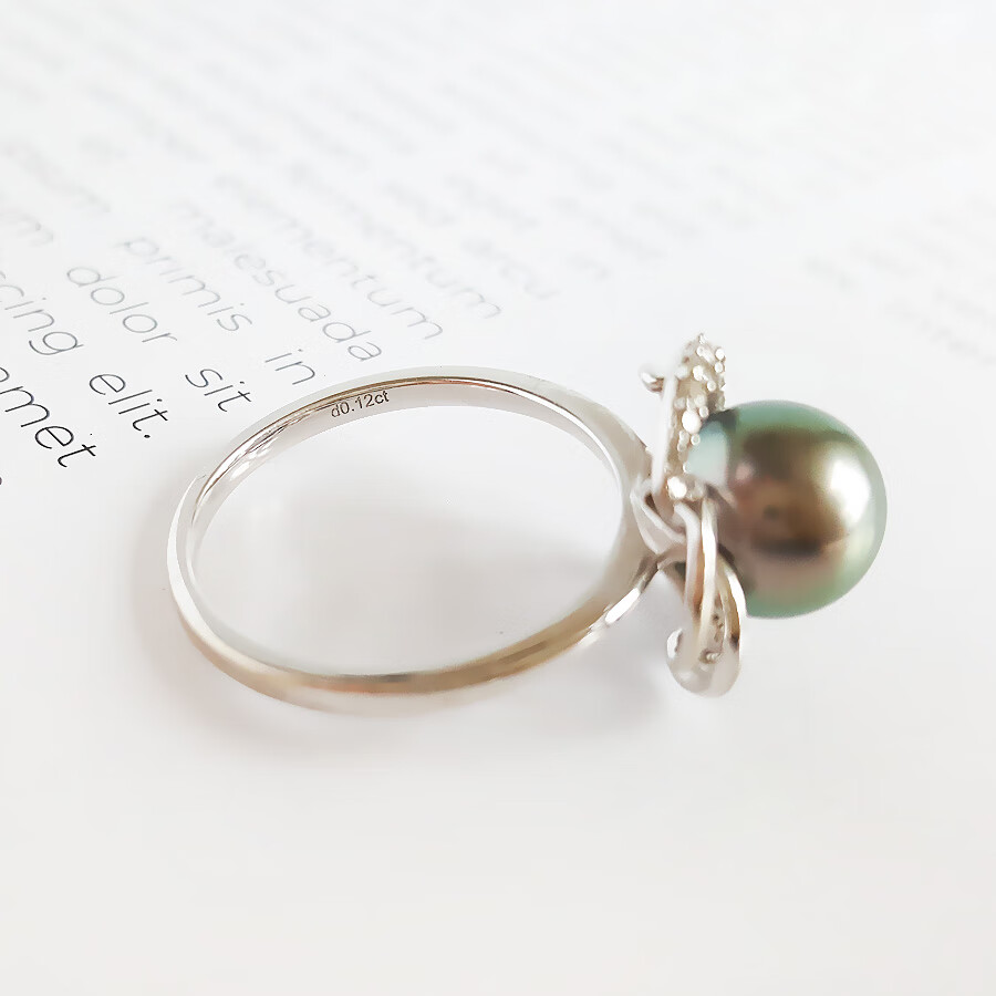 【天然正品】潮宏基 8.3MM天然黑色真多麻海水珍珠花朵造型 项链/戒指 270523NJS29 270523NJS30