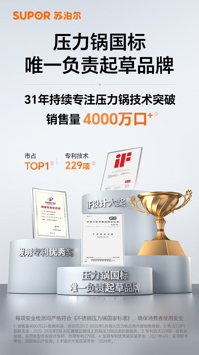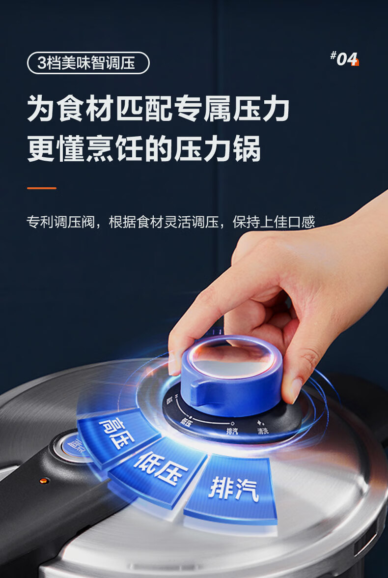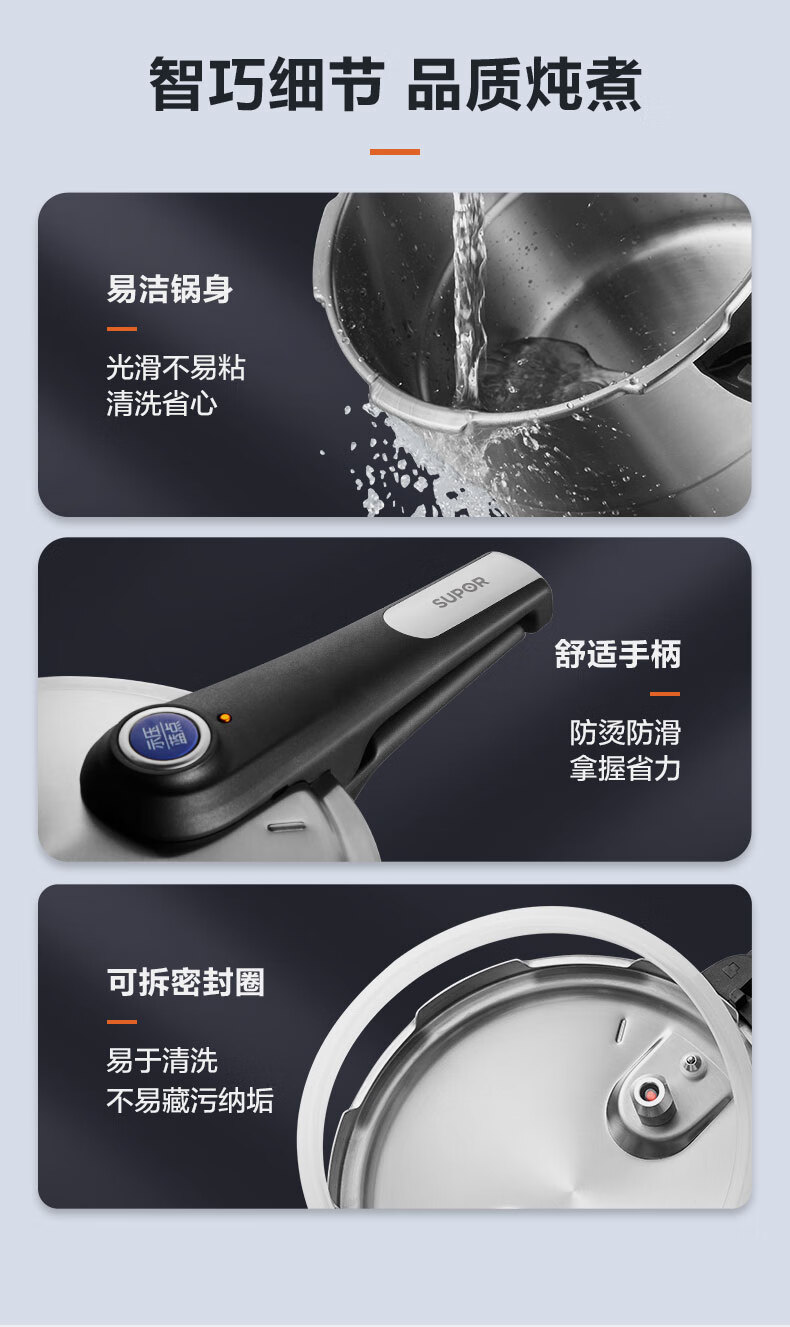 苏泊尔SUPOR304不锈钢家用快煮高压锅22cm复底加厚磁炉燃气通用YW22LT1低分贝三档