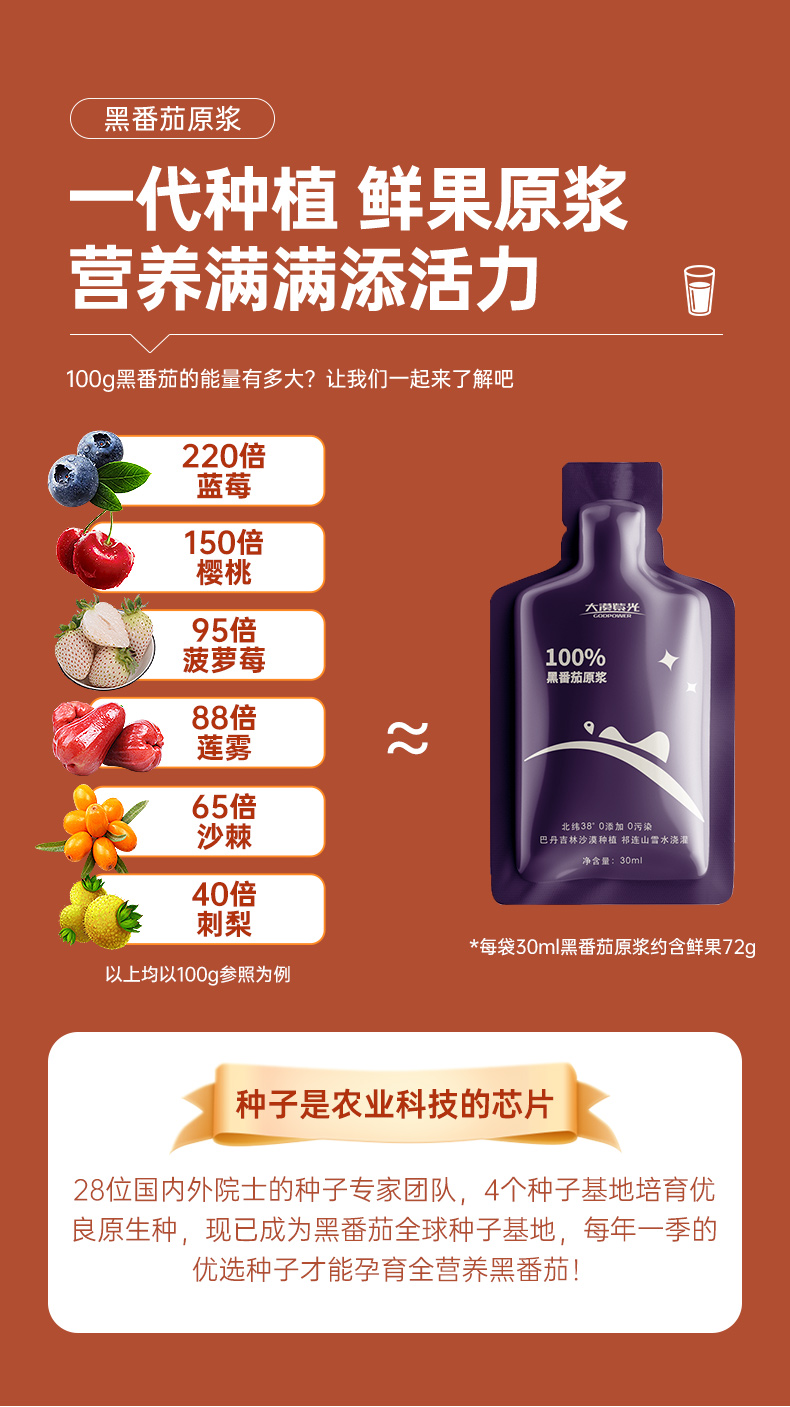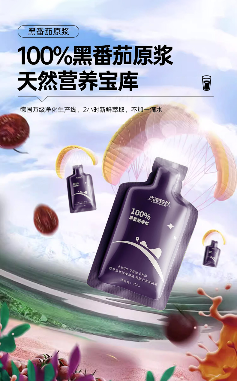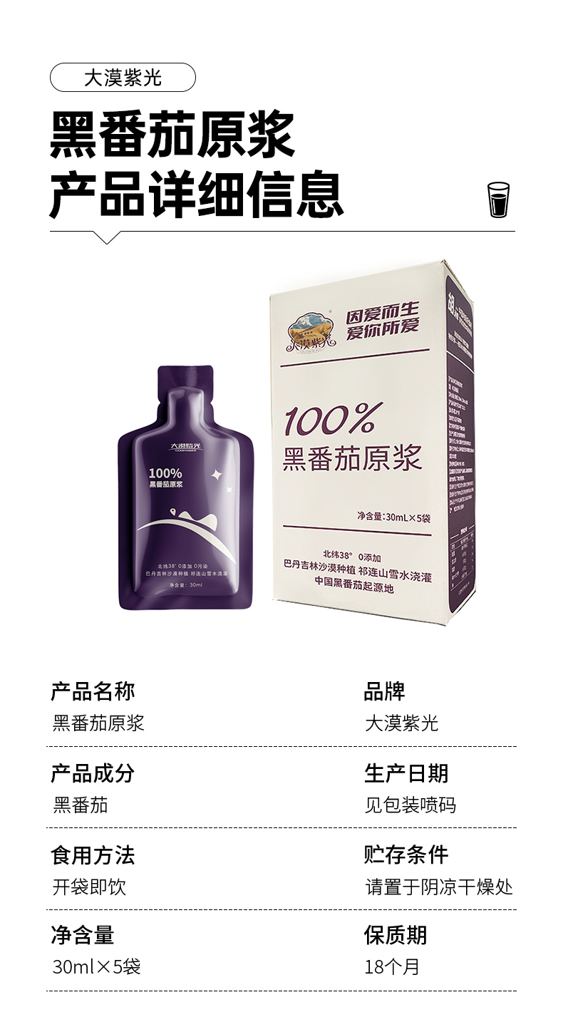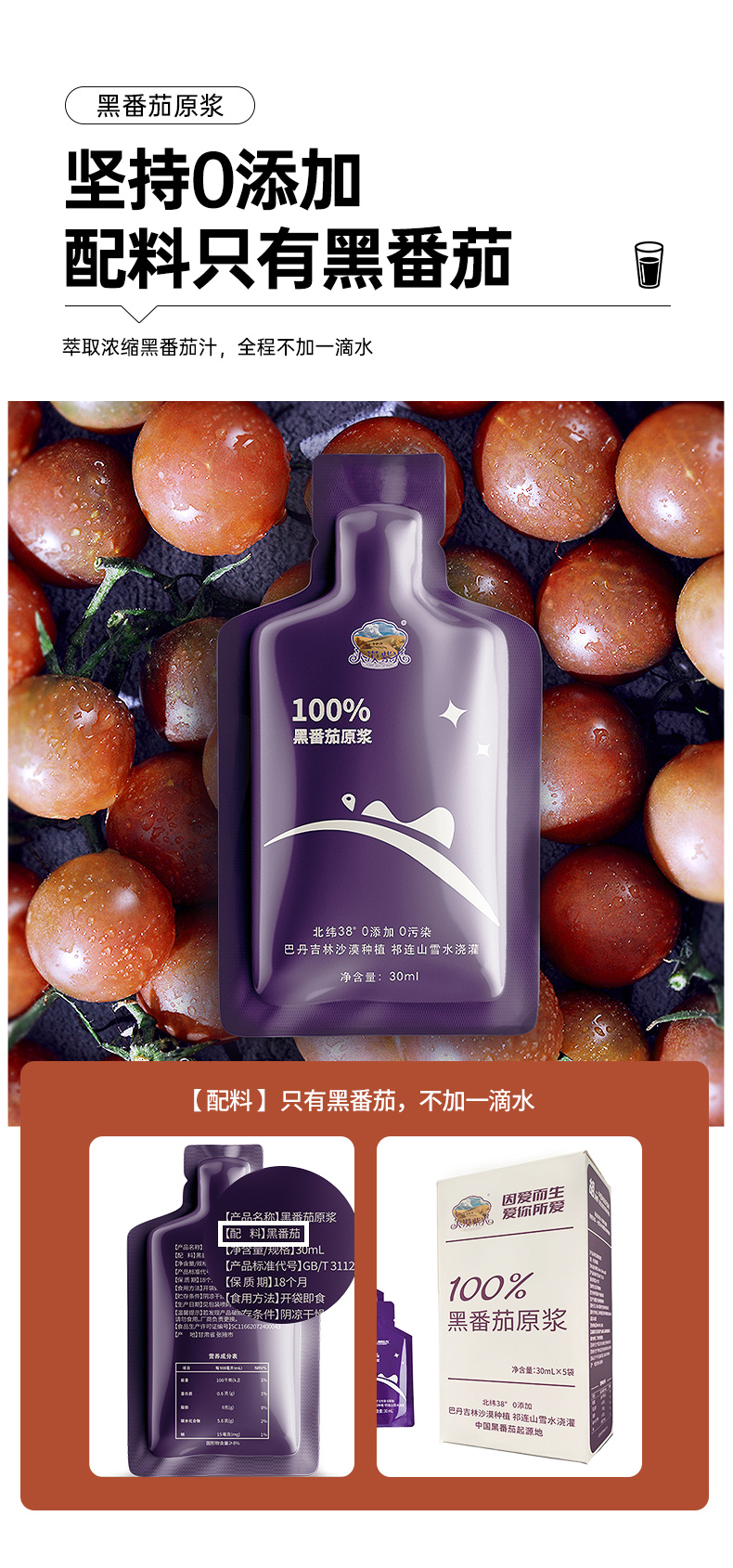 【男性滋养“黑金刚”】大漠紫光黑番茄原浆 不含一滴水 高纯度萃取 0添加 0防腐 天然鲜果榨汁 30ml*15袋/盒