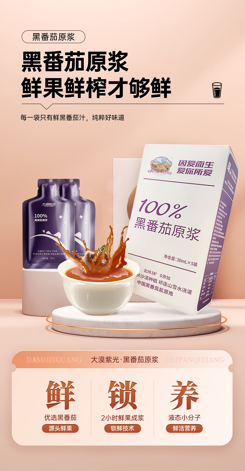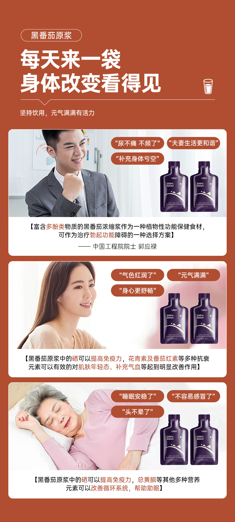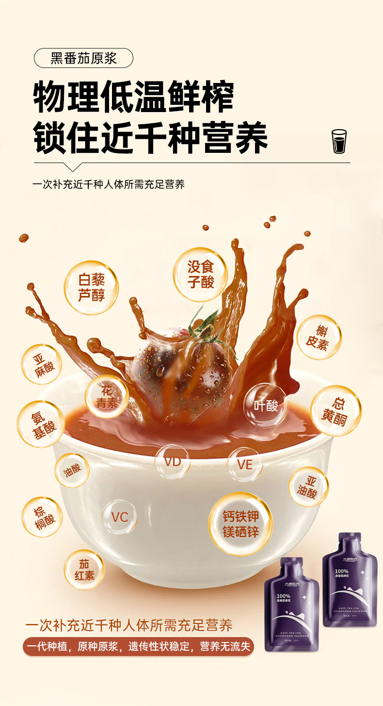 【男性滋养“黑金刚”】大漠紫光黑番茄原浆 不含一滴水 高纯度萃取 0添加 0防腐 天然鲜果榨汁 30ml*15袋/盒