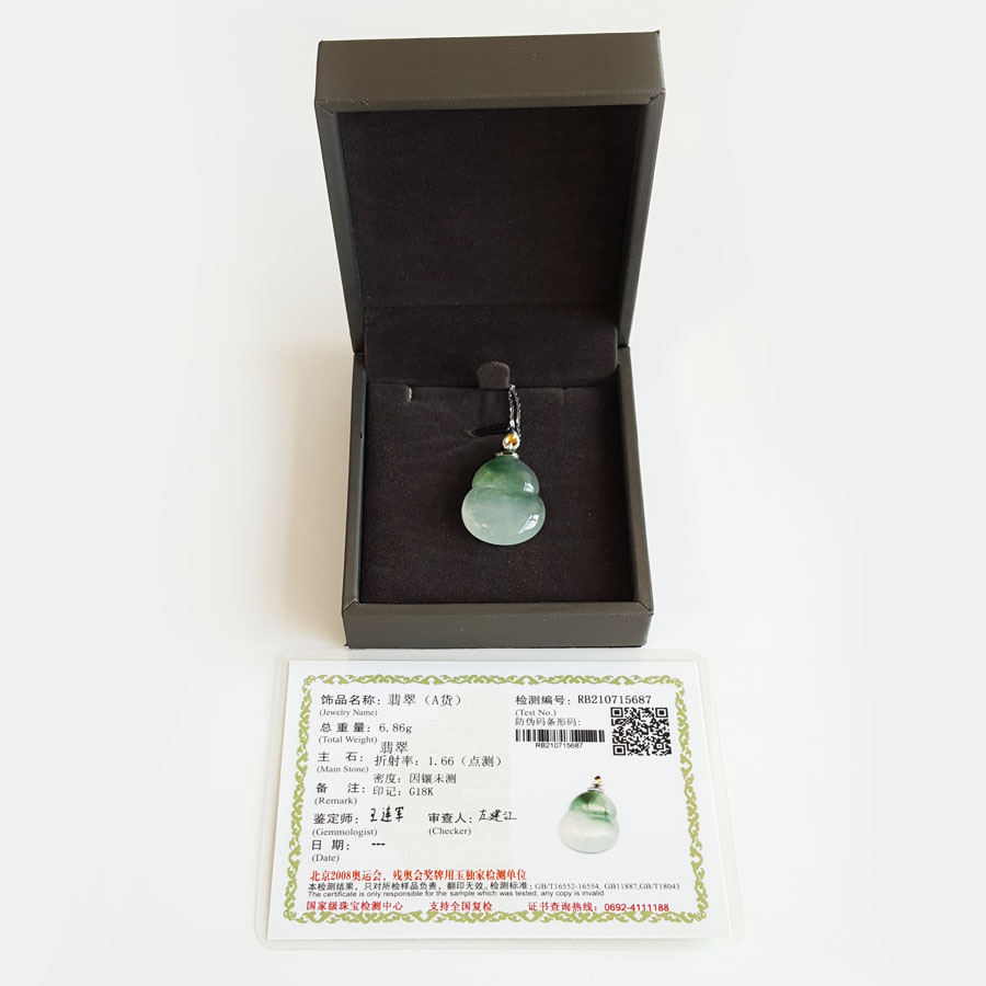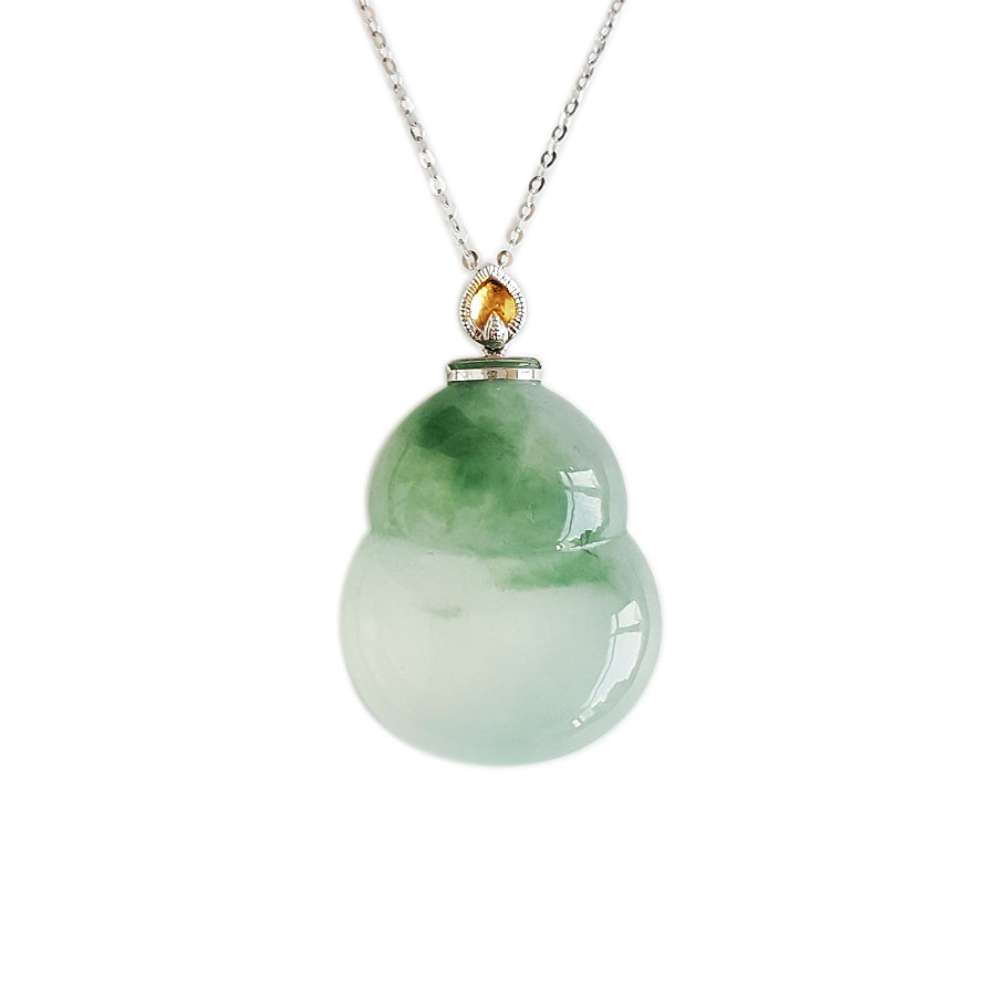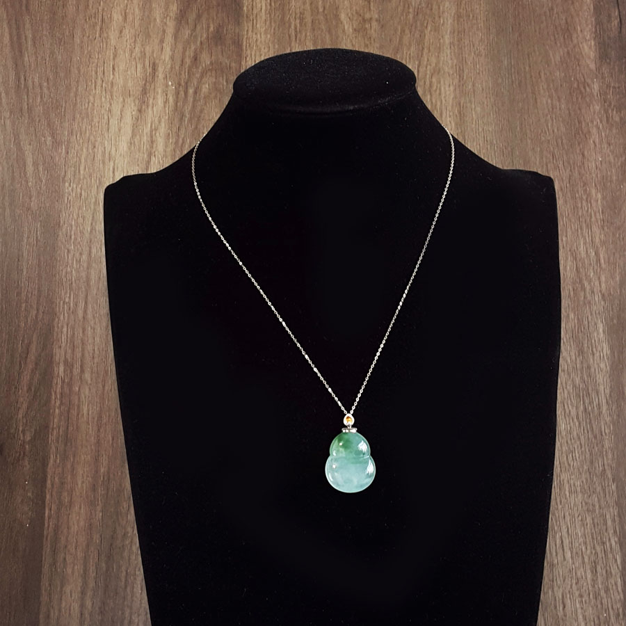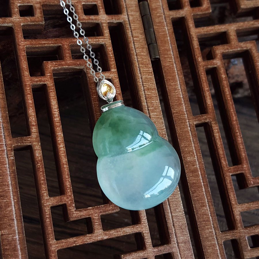 名称 | AU750白金镶天然细腻冰种飘蓝花葫芦造型(福禄平安)翡翠吊坠项链 |