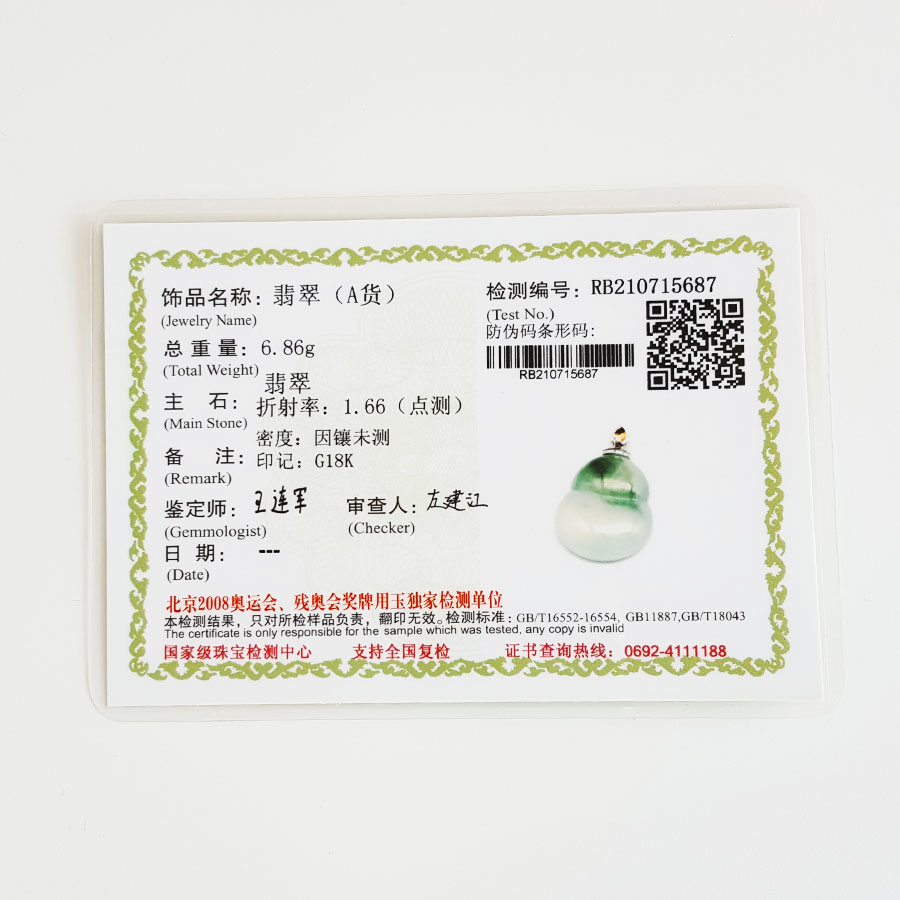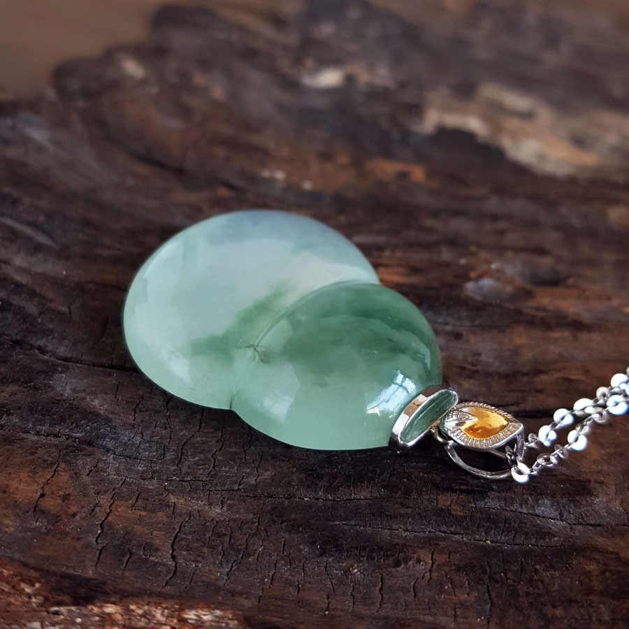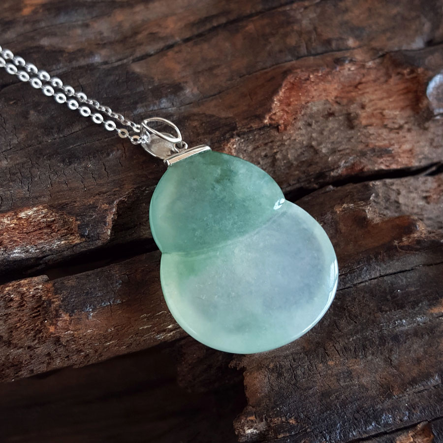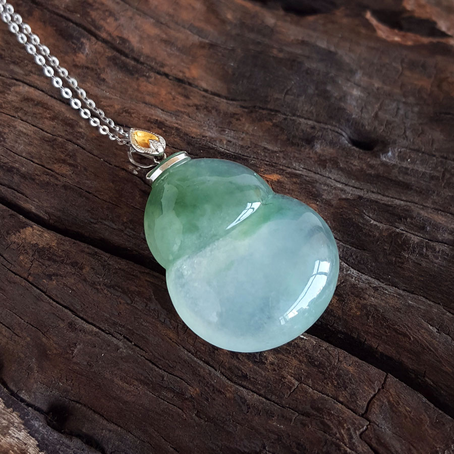 名称 | AU750白金镶天然细腻冰种飘蓝花葫芦造型(福禄平安)翡翠吊坠项链 |
