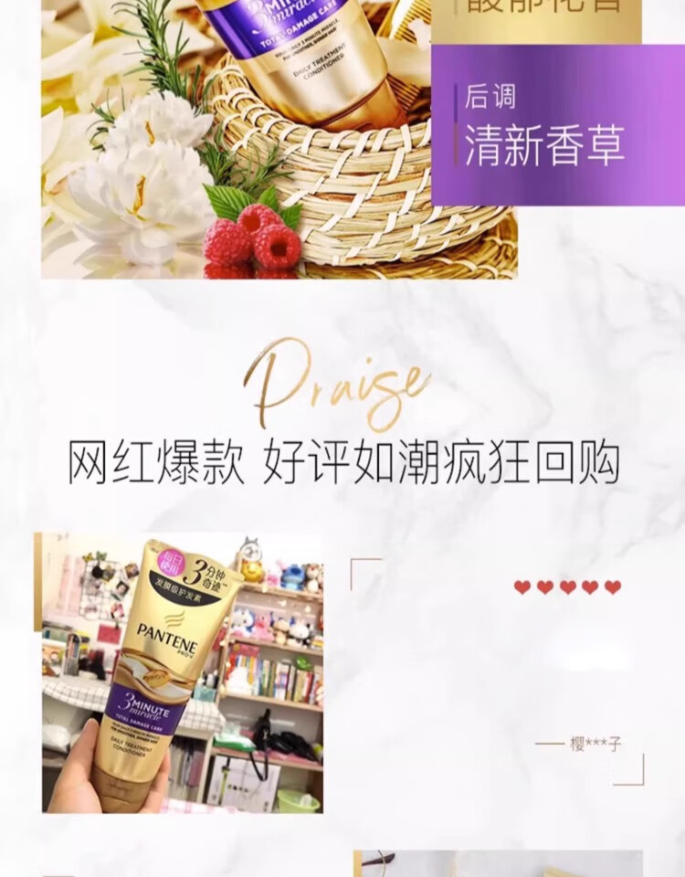 【鼎】潘婷3分钟奇迹护发素发膜三分钟多效修护精华霜180ml