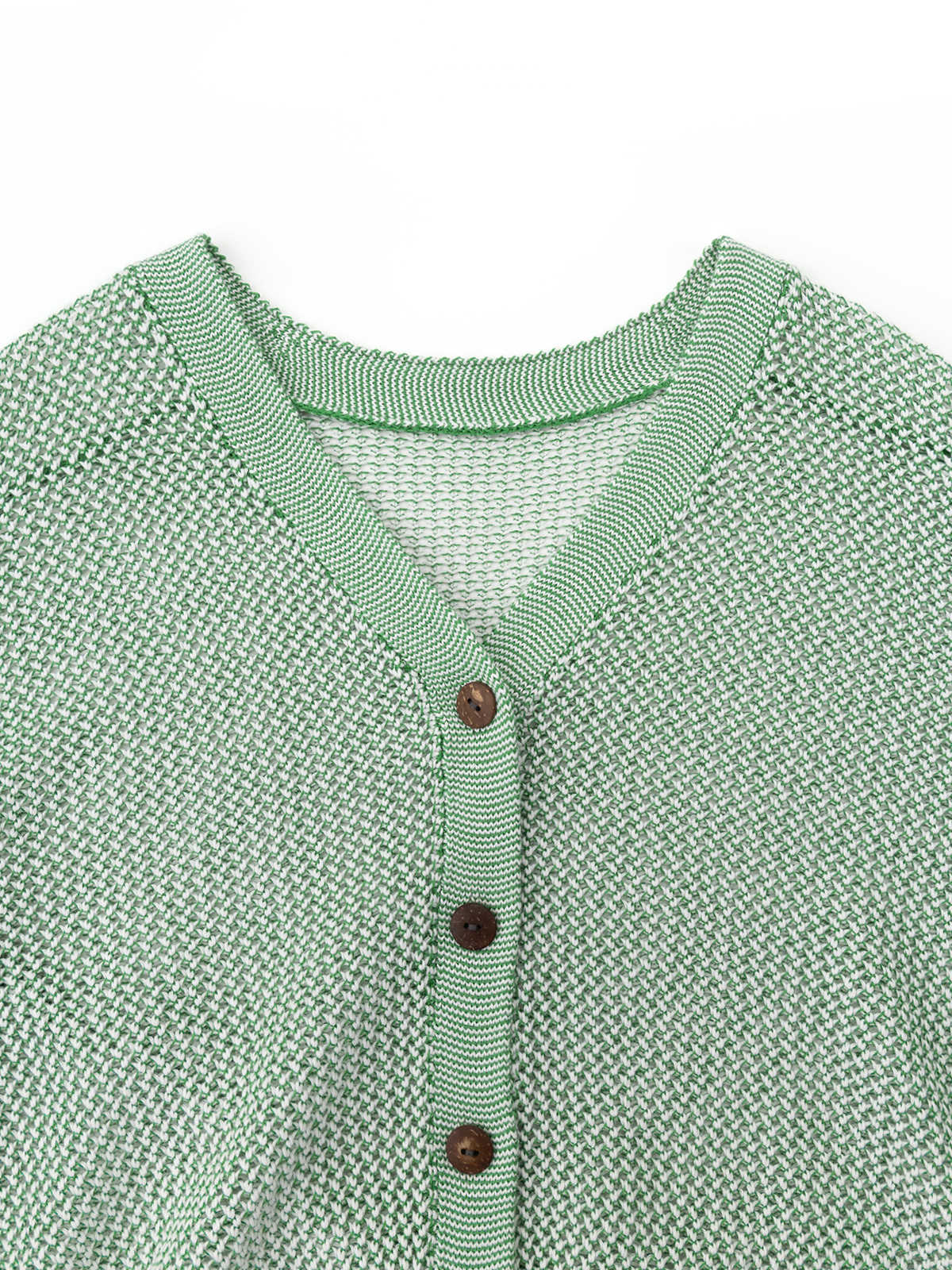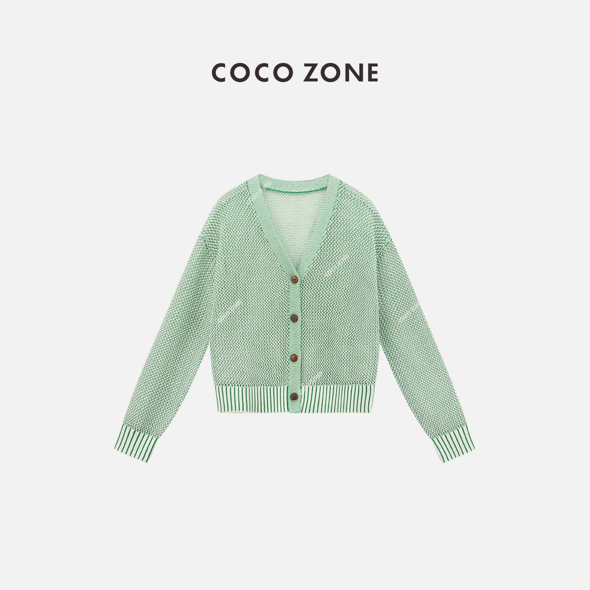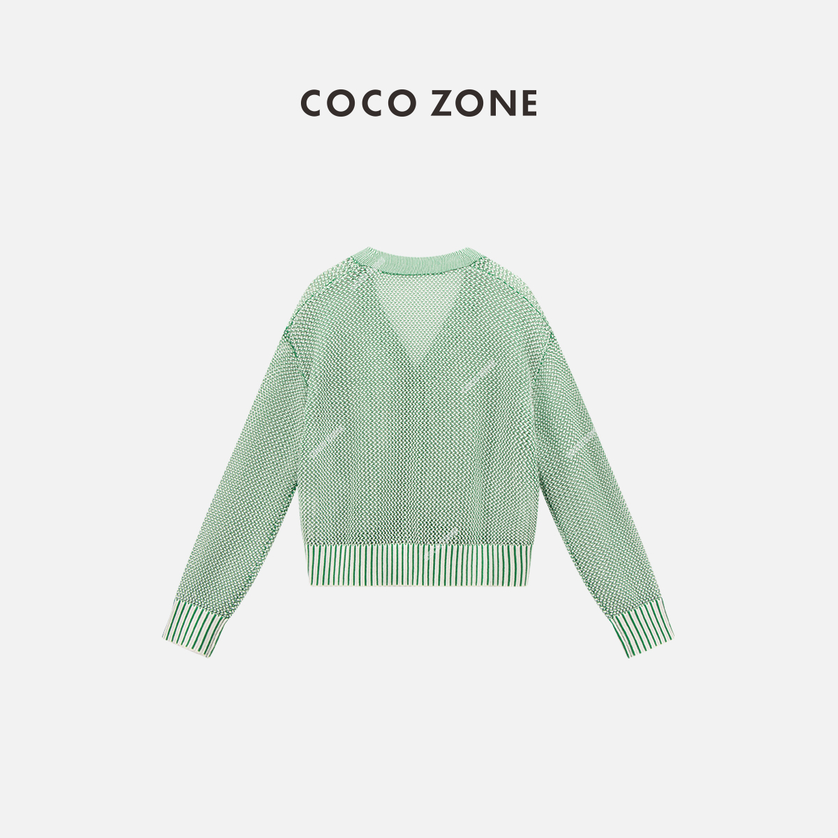 COCO ZONE夏季新款镂空长袖针织衫V领单排扣上衣CC2B0563