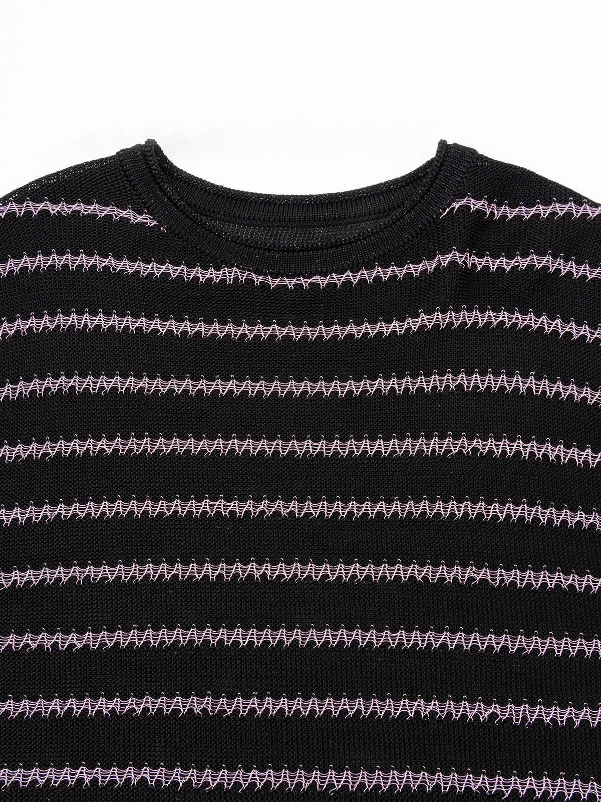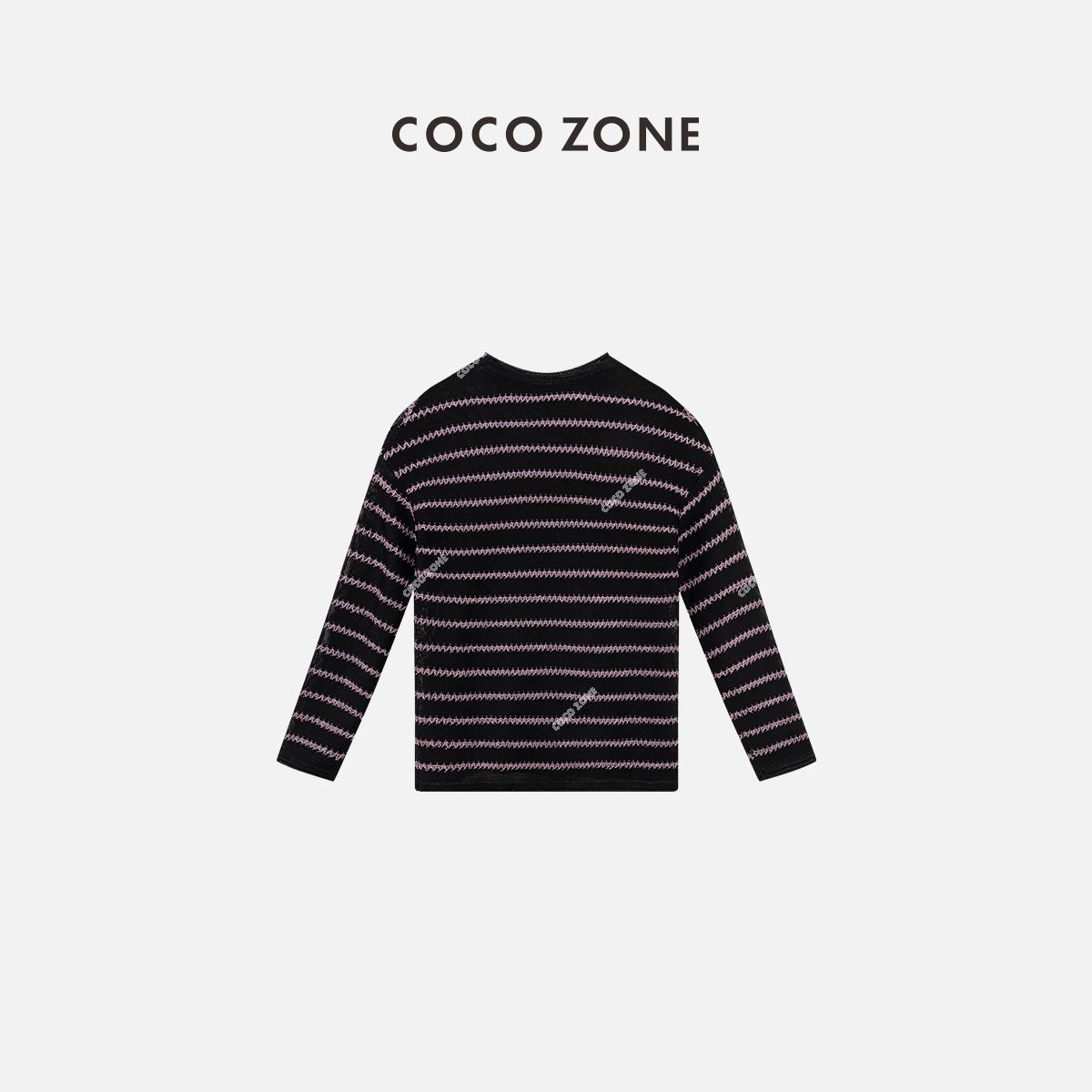 COCO ZONE"南忆"时尚撞色条纹长袖针织衫简约百搭休闲圆领上衣CC2B0605