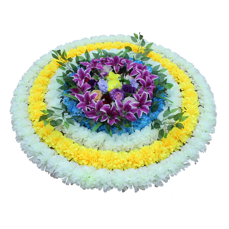 奶白+黄+奶白+蓝仿真花圈1.3米绢花圈假花圈白事用菊花殡仪馆装饰花祭祀祭奠陵园