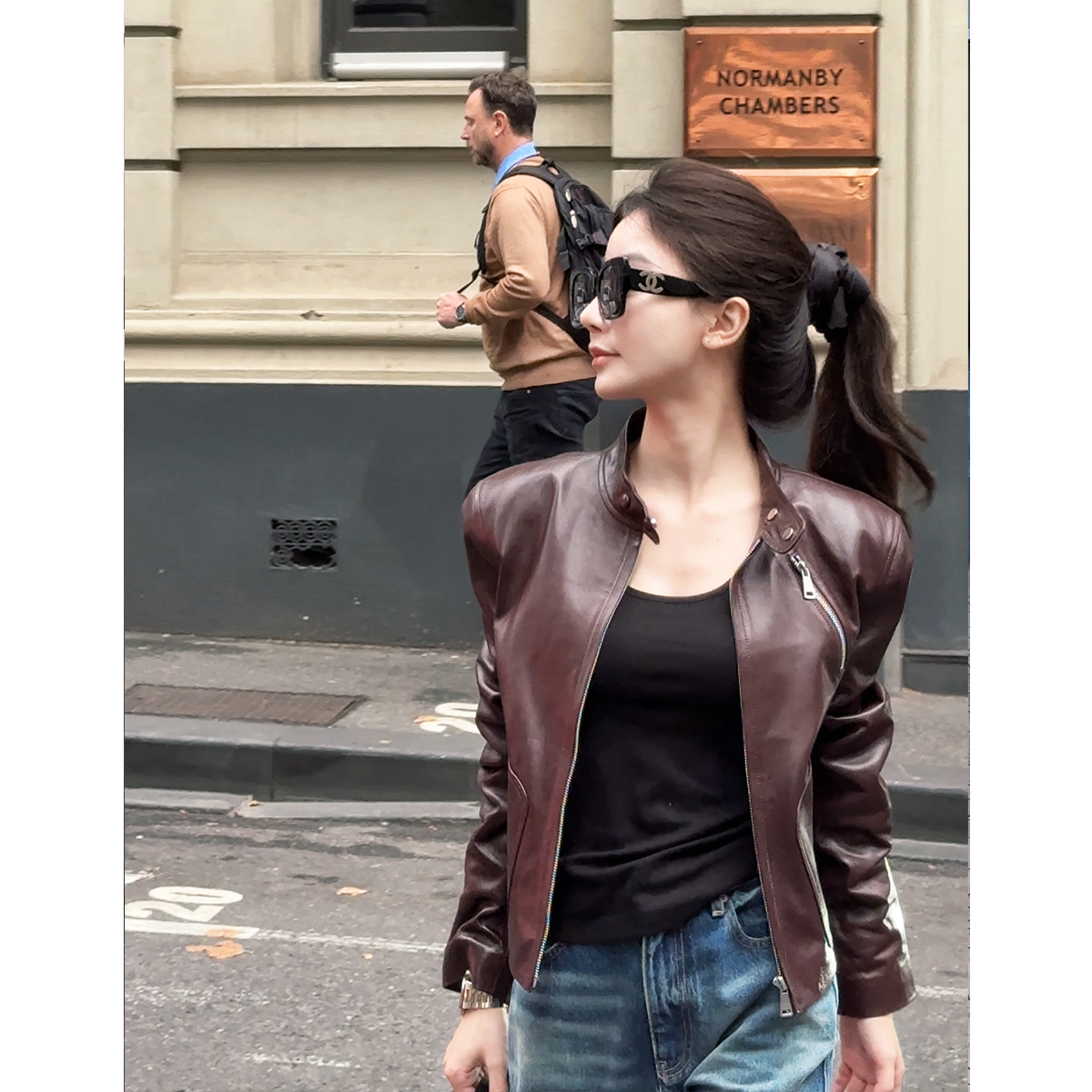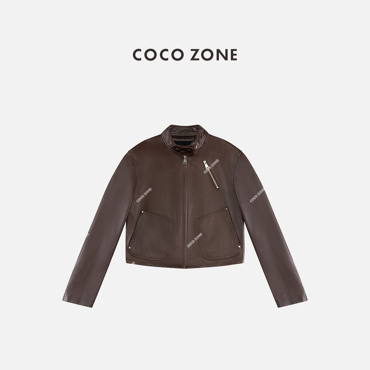 COCO ZONE “咖啡街区”高级感立领拉链皮衣外套ACC1D2741