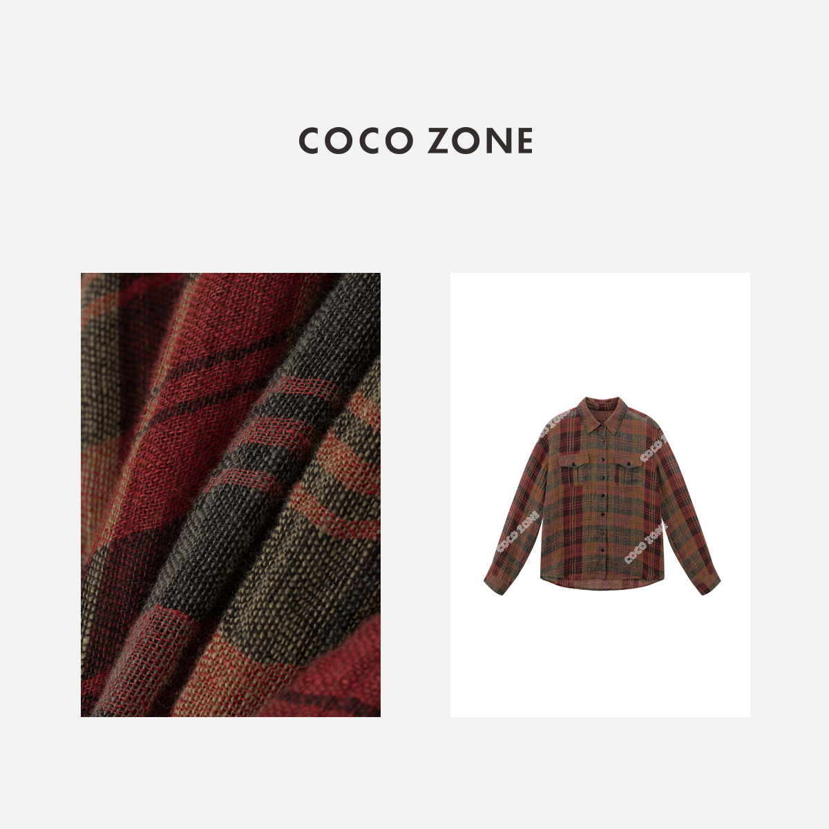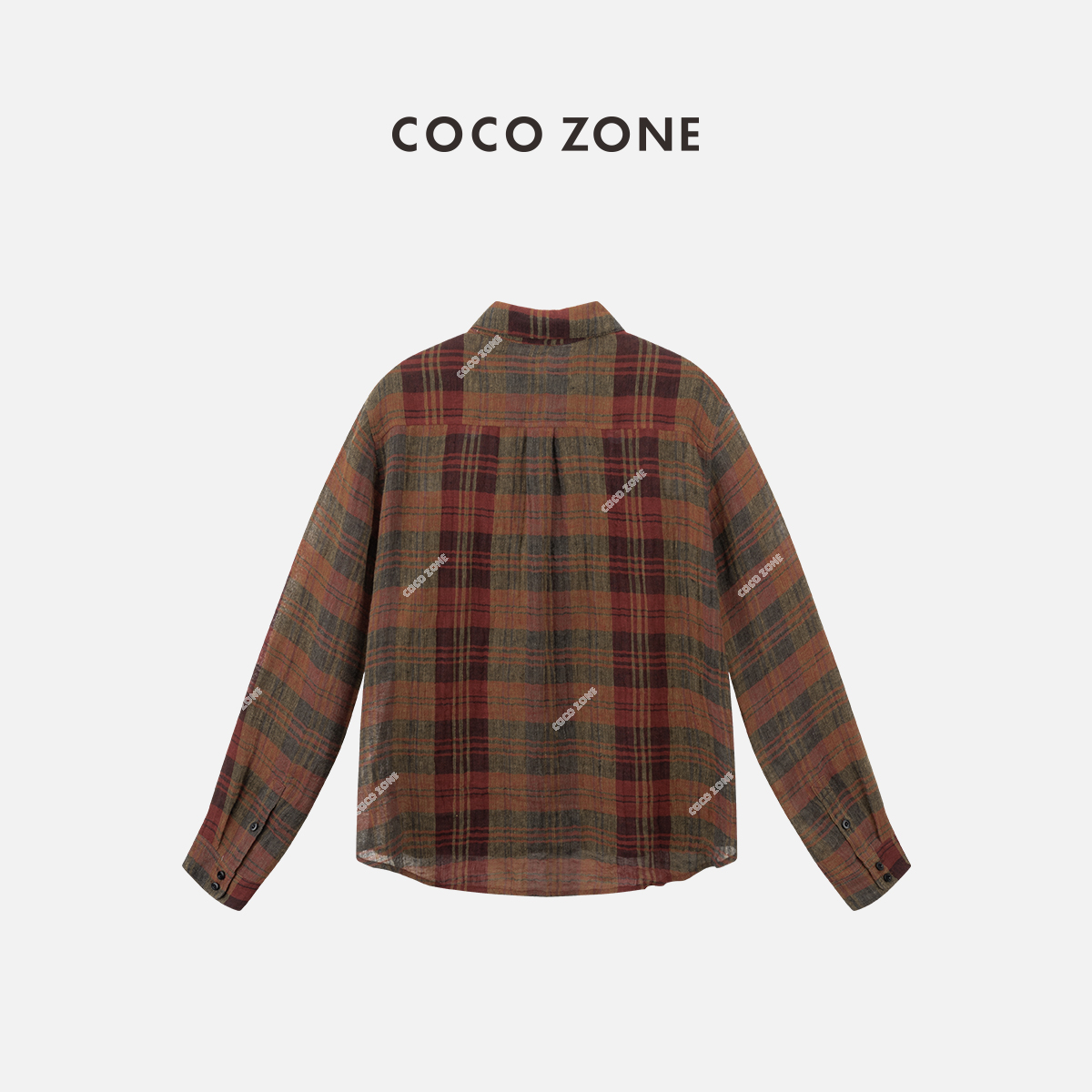 COCO ZONE 复古格子长袖翻领衬衫百搭单排扣上衣CC1B1267