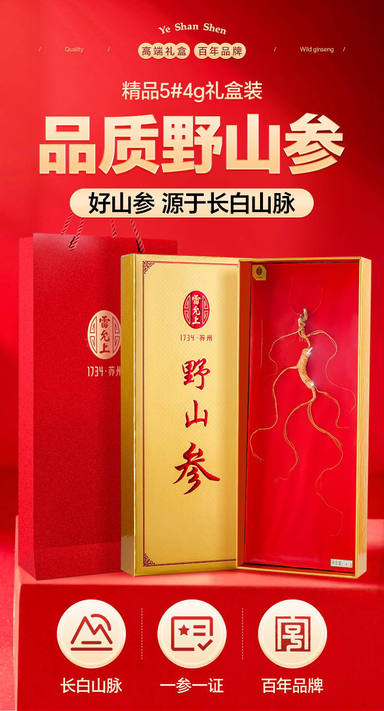 雷允上15年整支野山参4-6g/盒(二等五级)