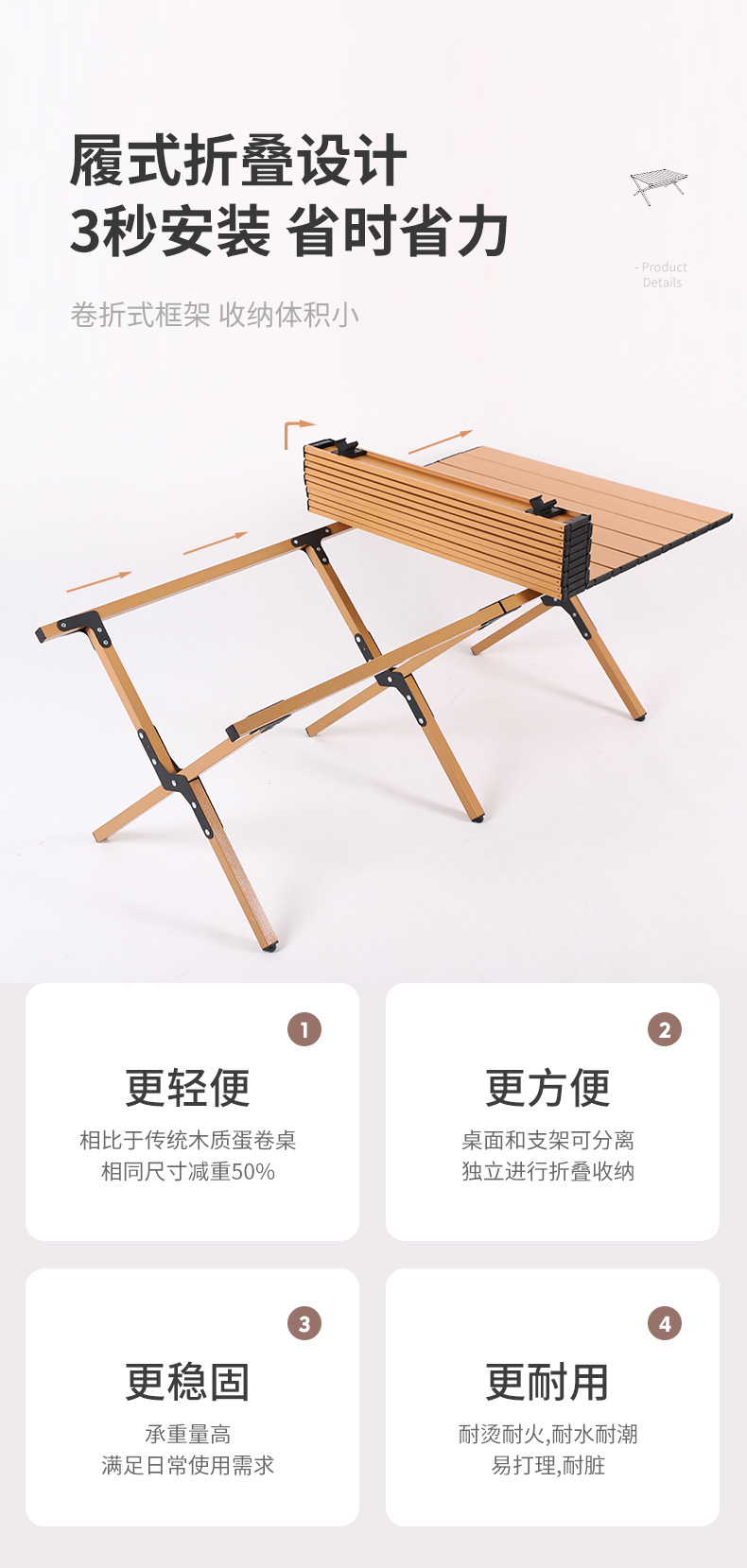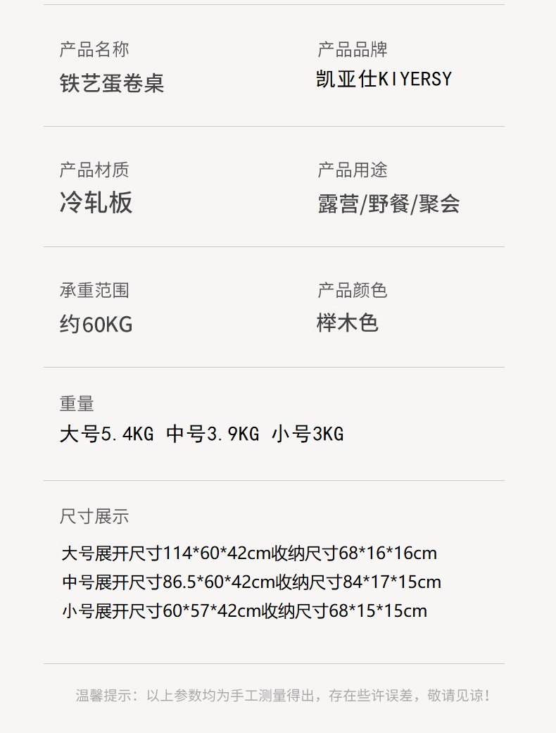 凯亚仕文森折叠蛋卷桌(中号)KYS-812