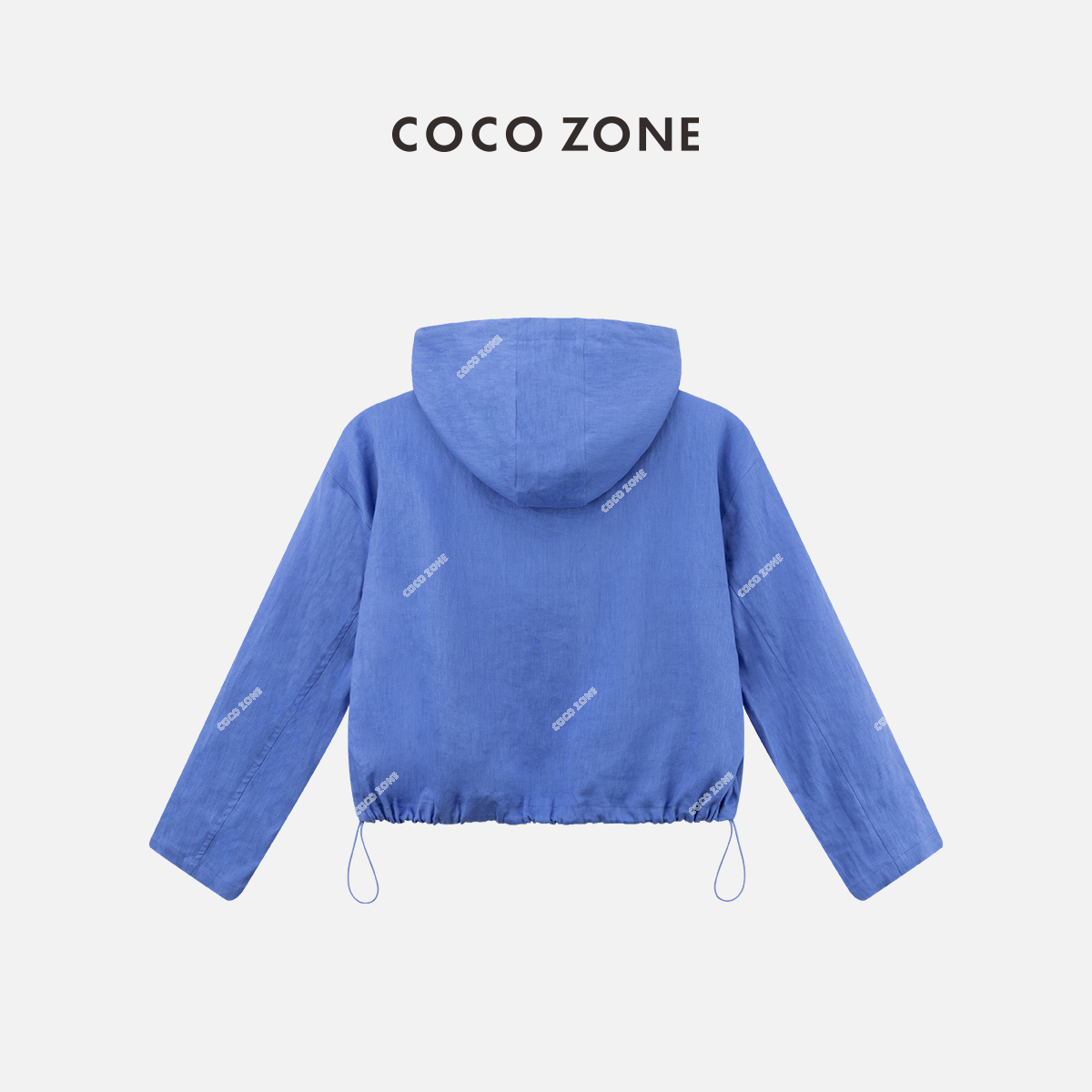 COCO ZONE2024"蓝希“时尚半拉链连帽长袖卫衣纯色休闲上衣CC2A0313