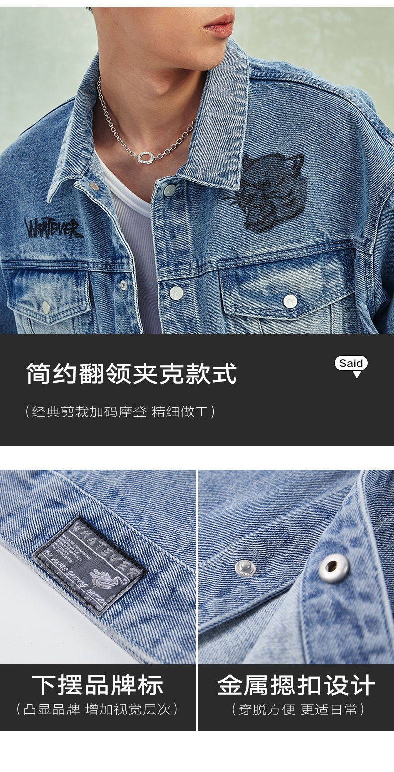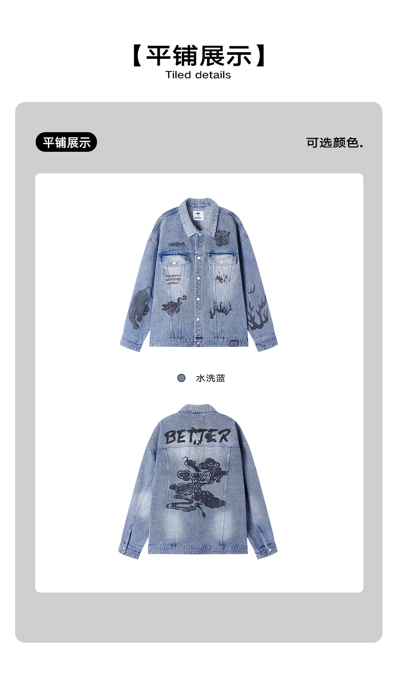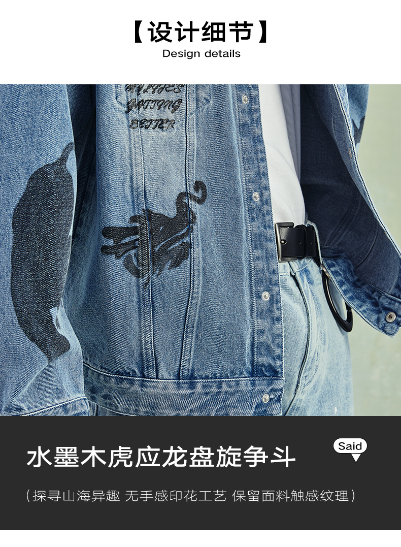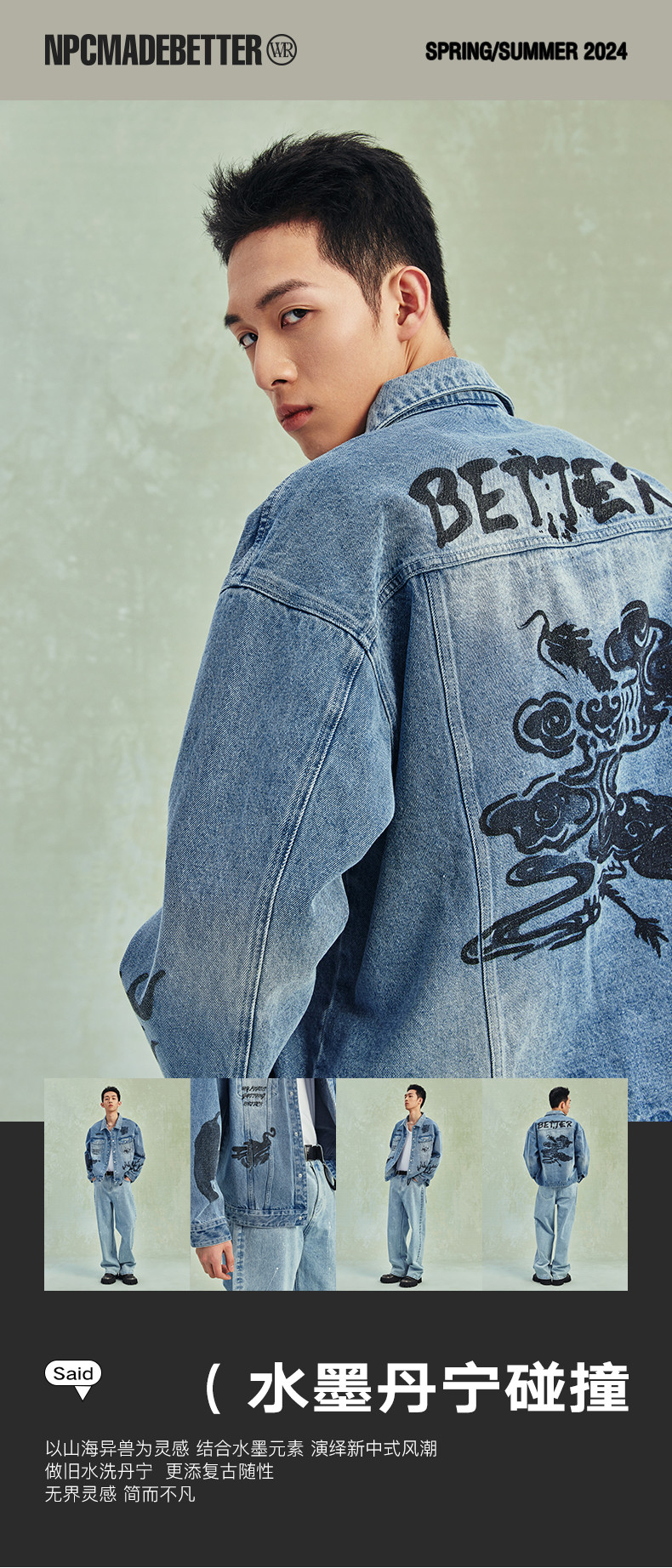 NPC潮牌复古重工水墨印花翻领牛仔外套夹克男潮流春秋NP41DC56