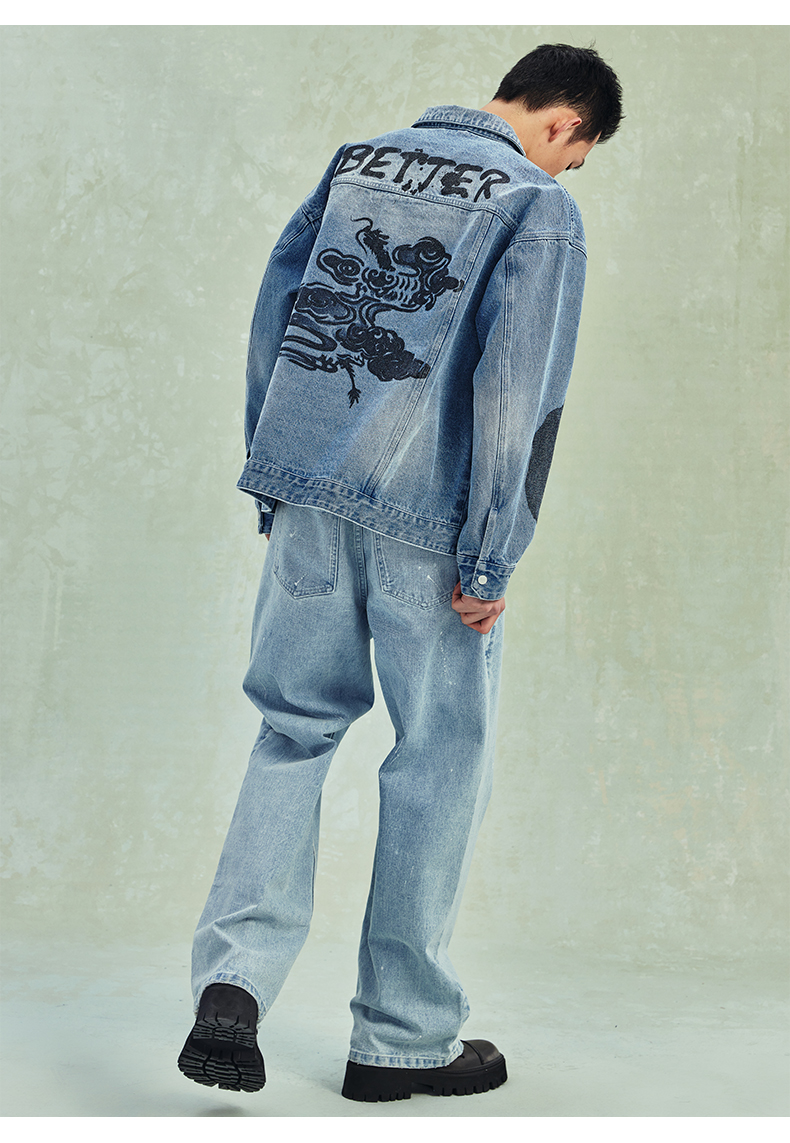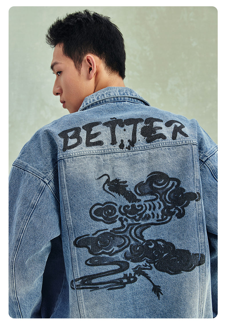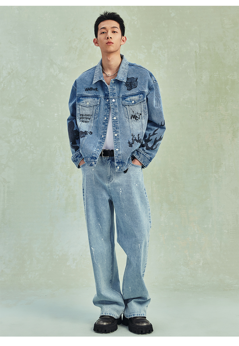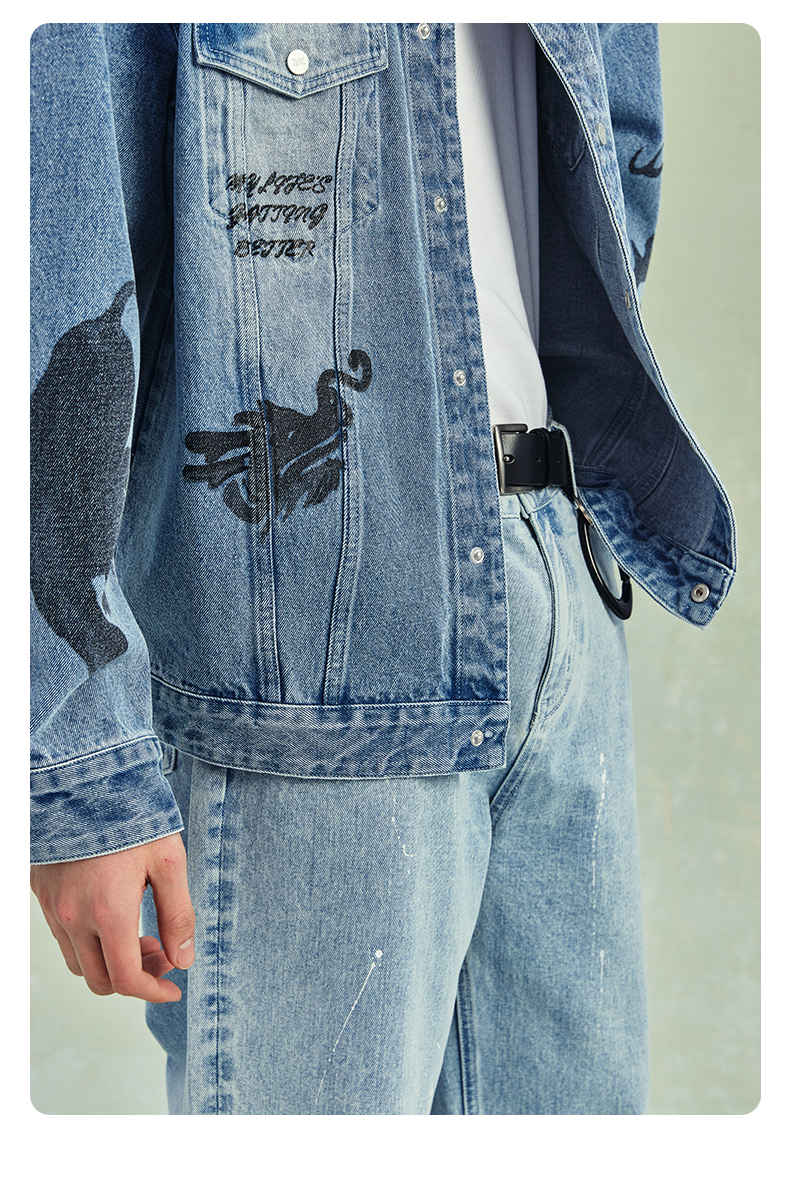 NPC潮牌复古重工水墨印花翻领牛仔外套夹克男潮流春秋NP41DC56