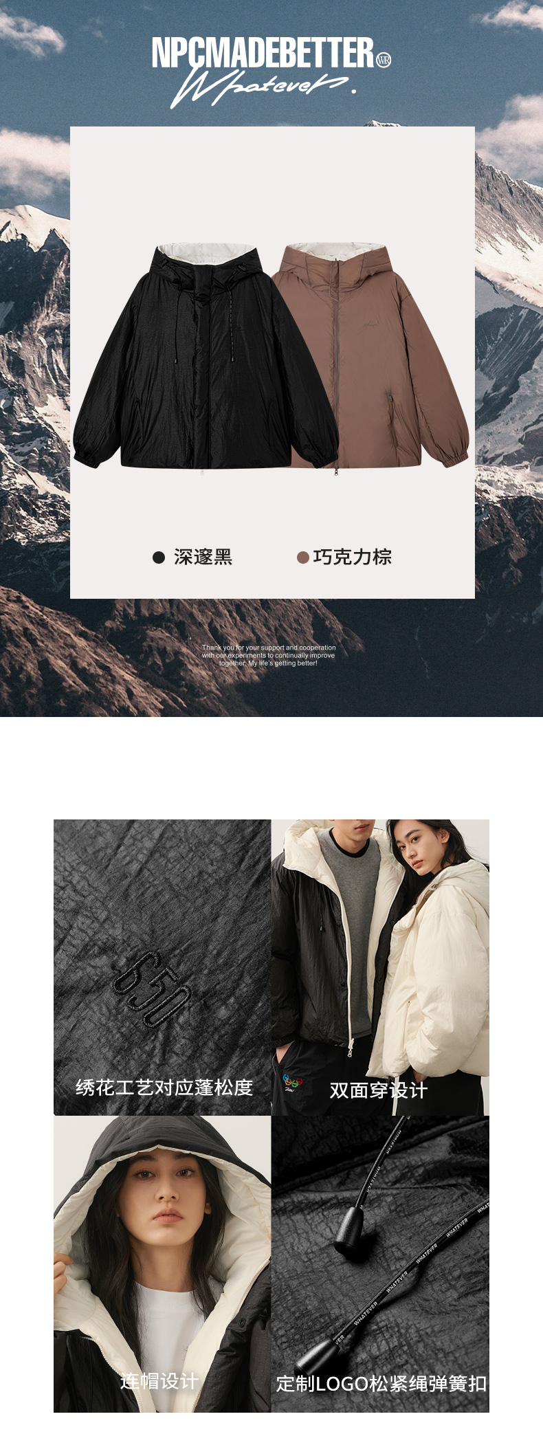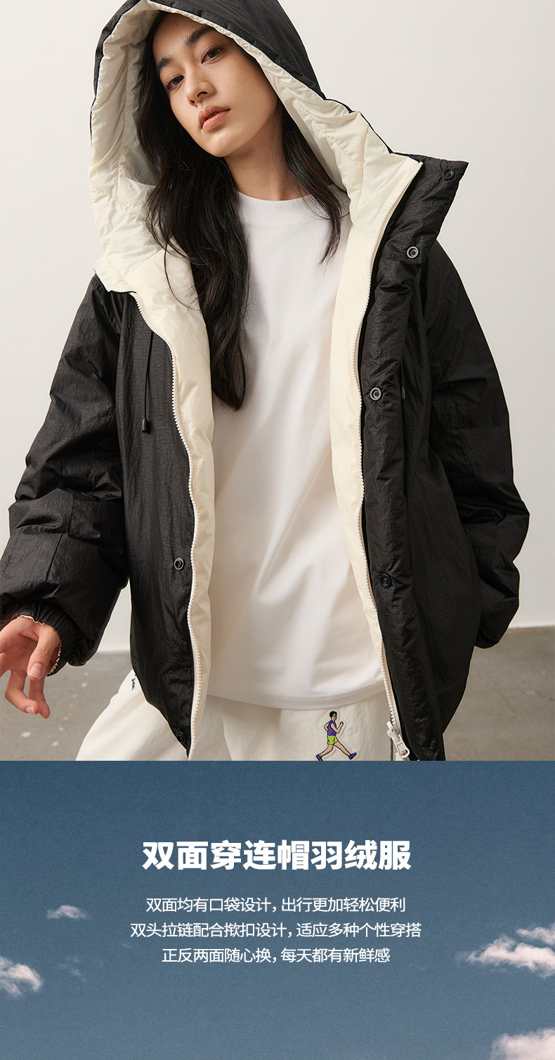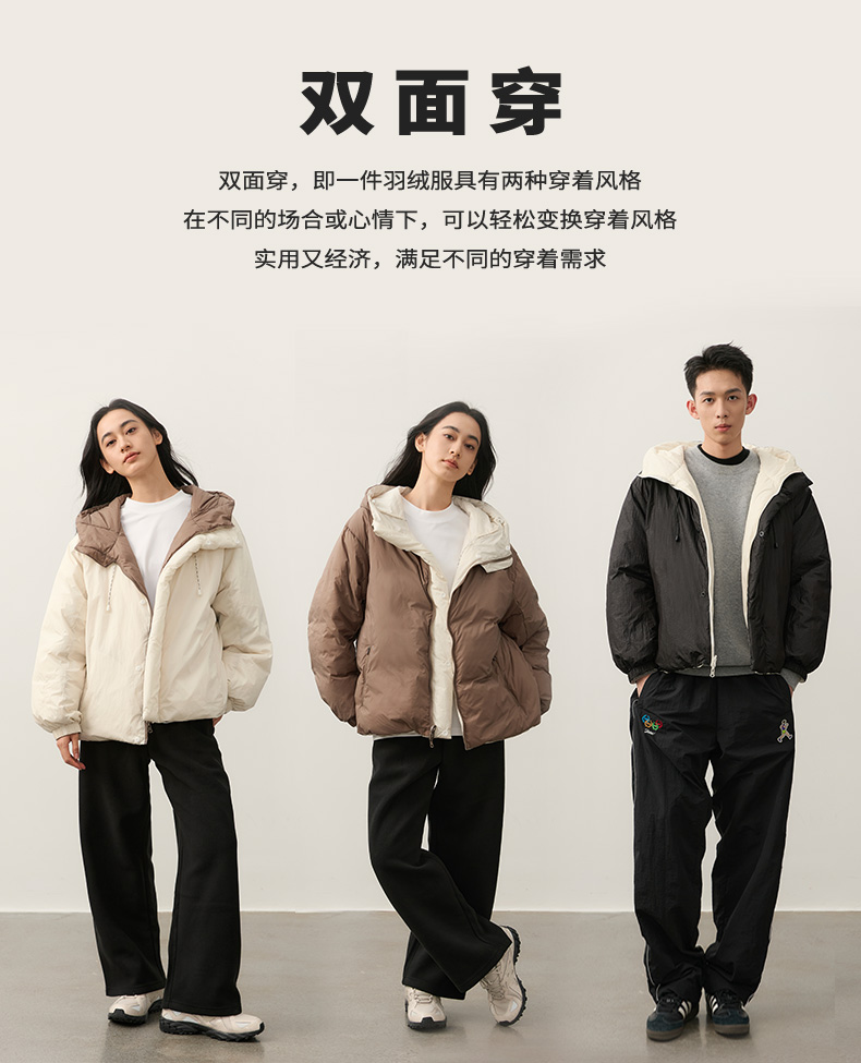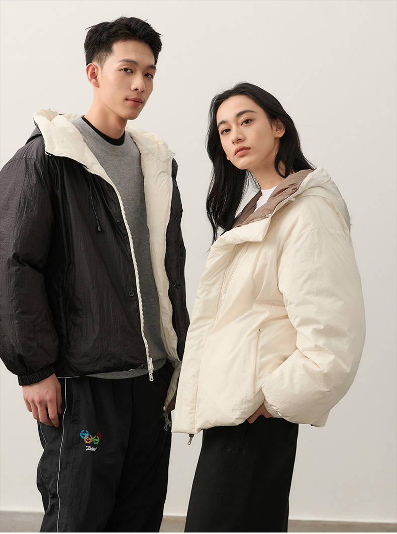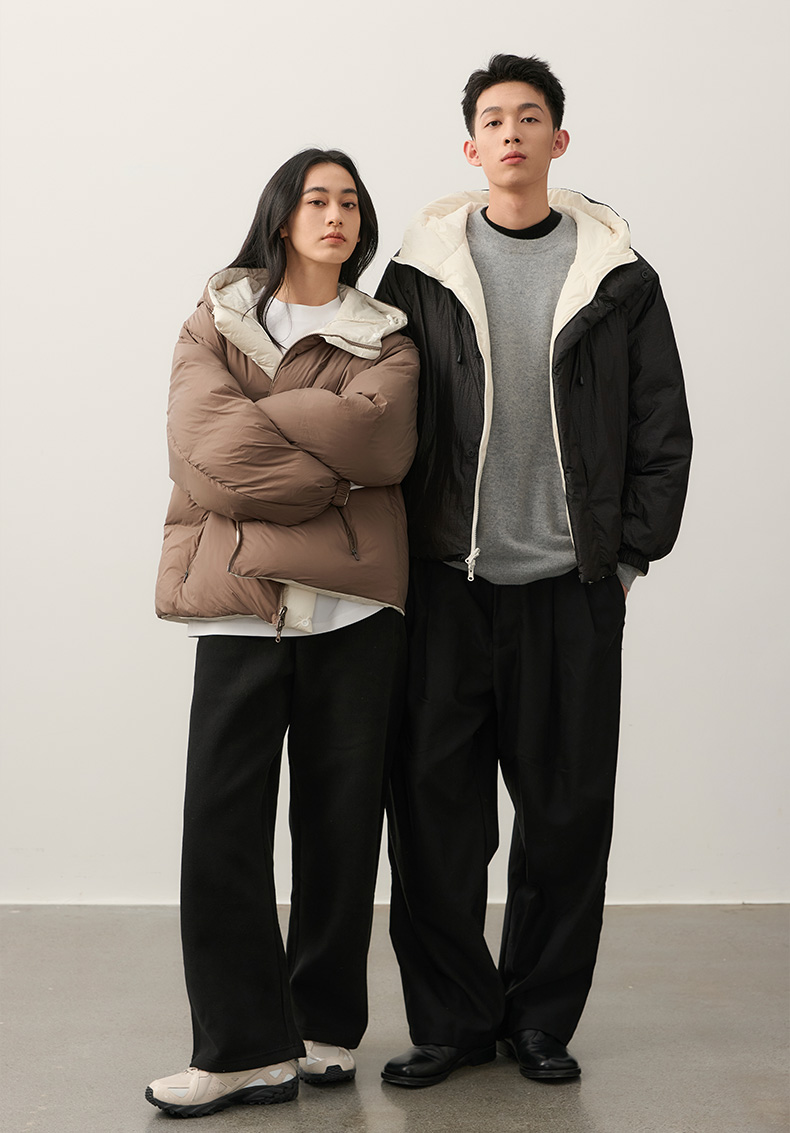 NPC潮牌【雅丹风】90%白鸭绒双面穿连帽羽绒服男保暖轻盈NP49DJ05