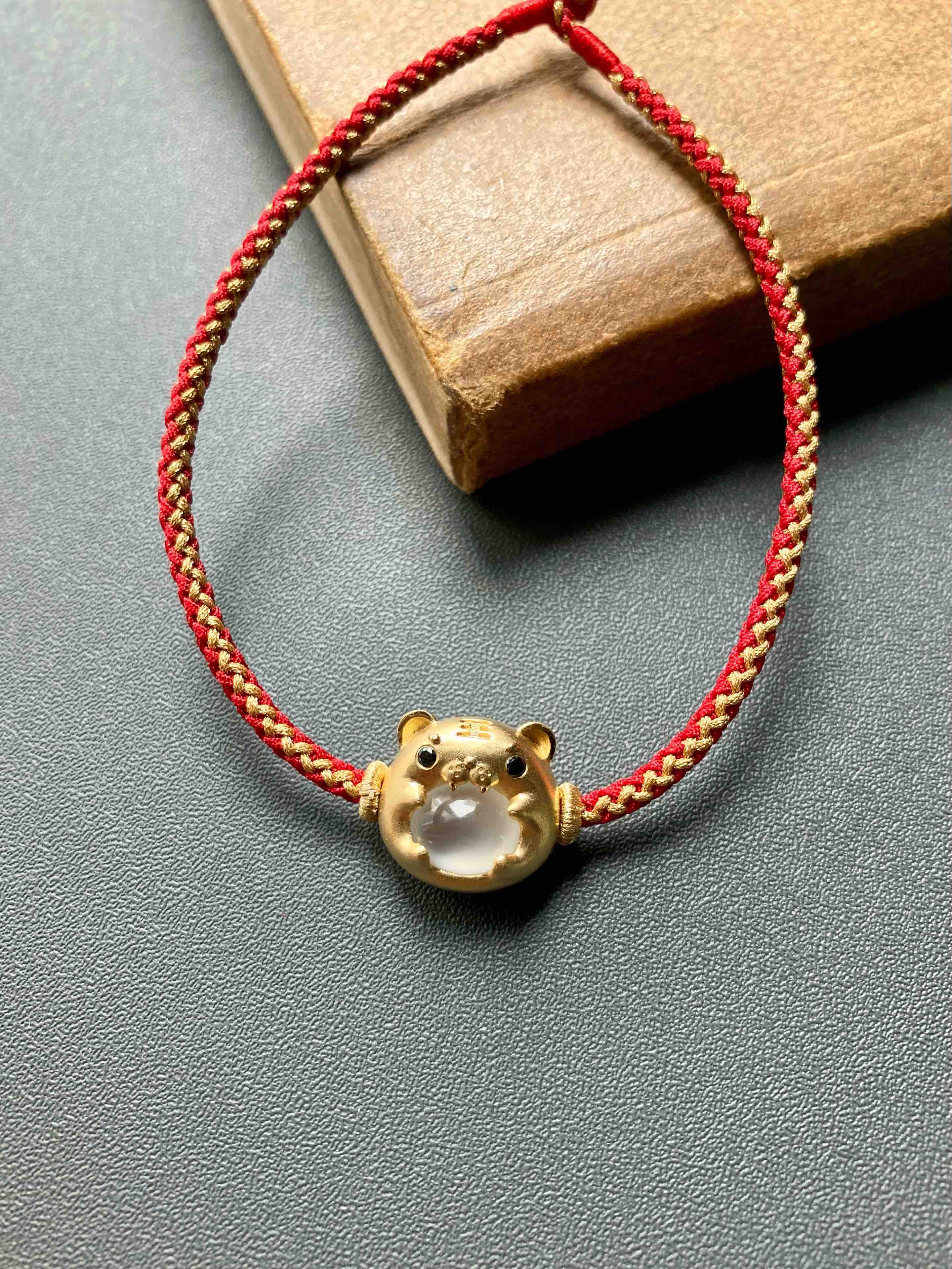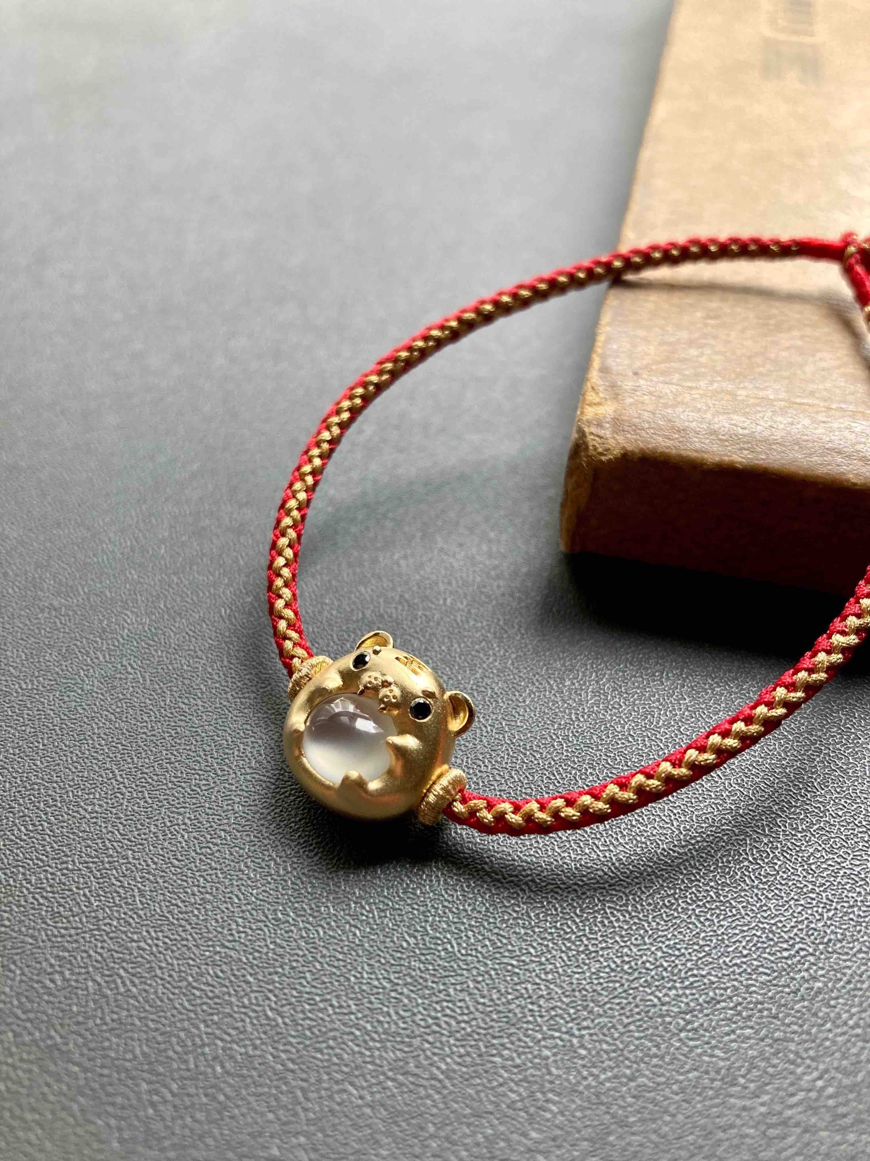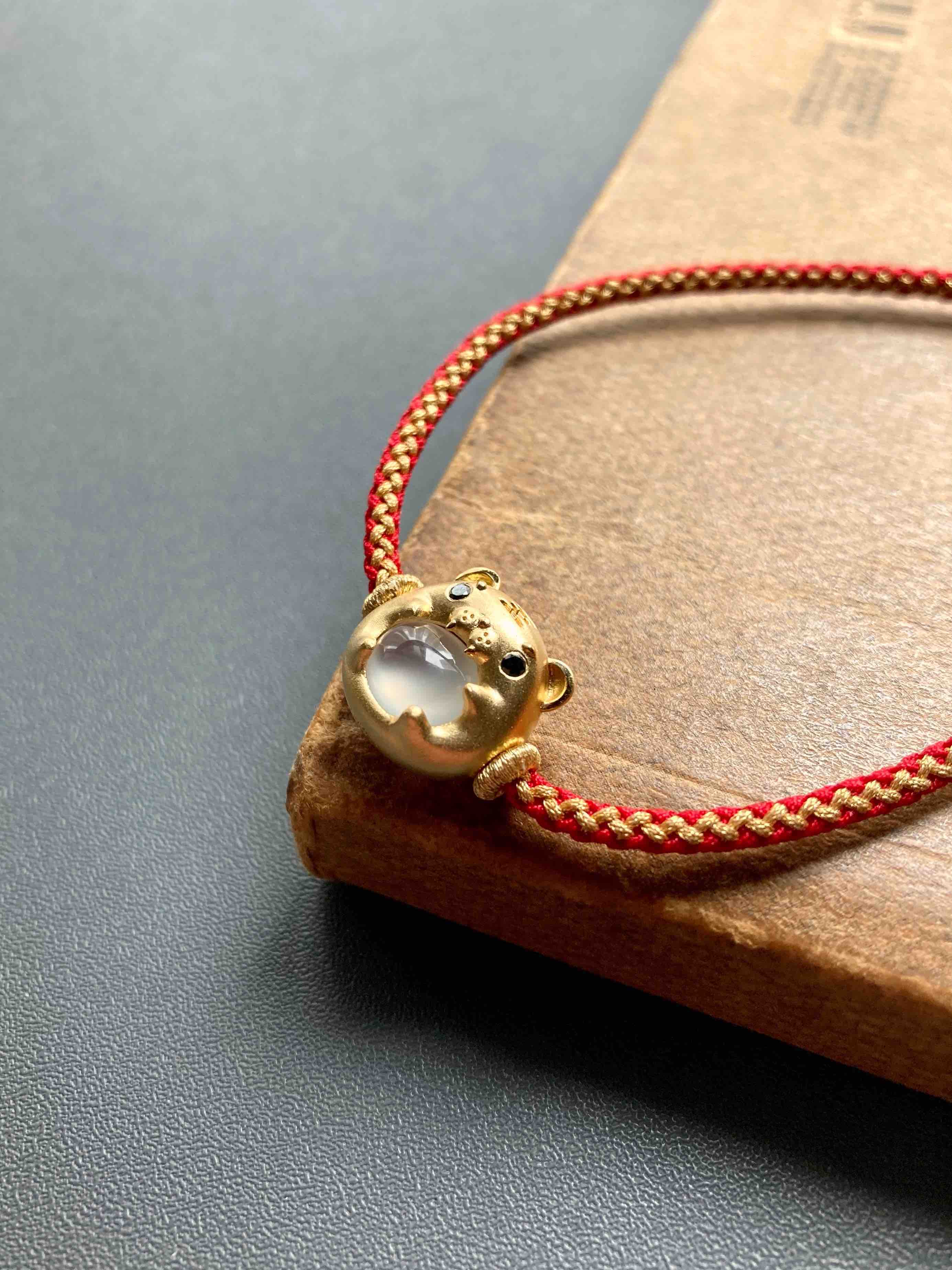 高冰种翡翠萌萌虎年平安手绳手链18k黄金镶嵌