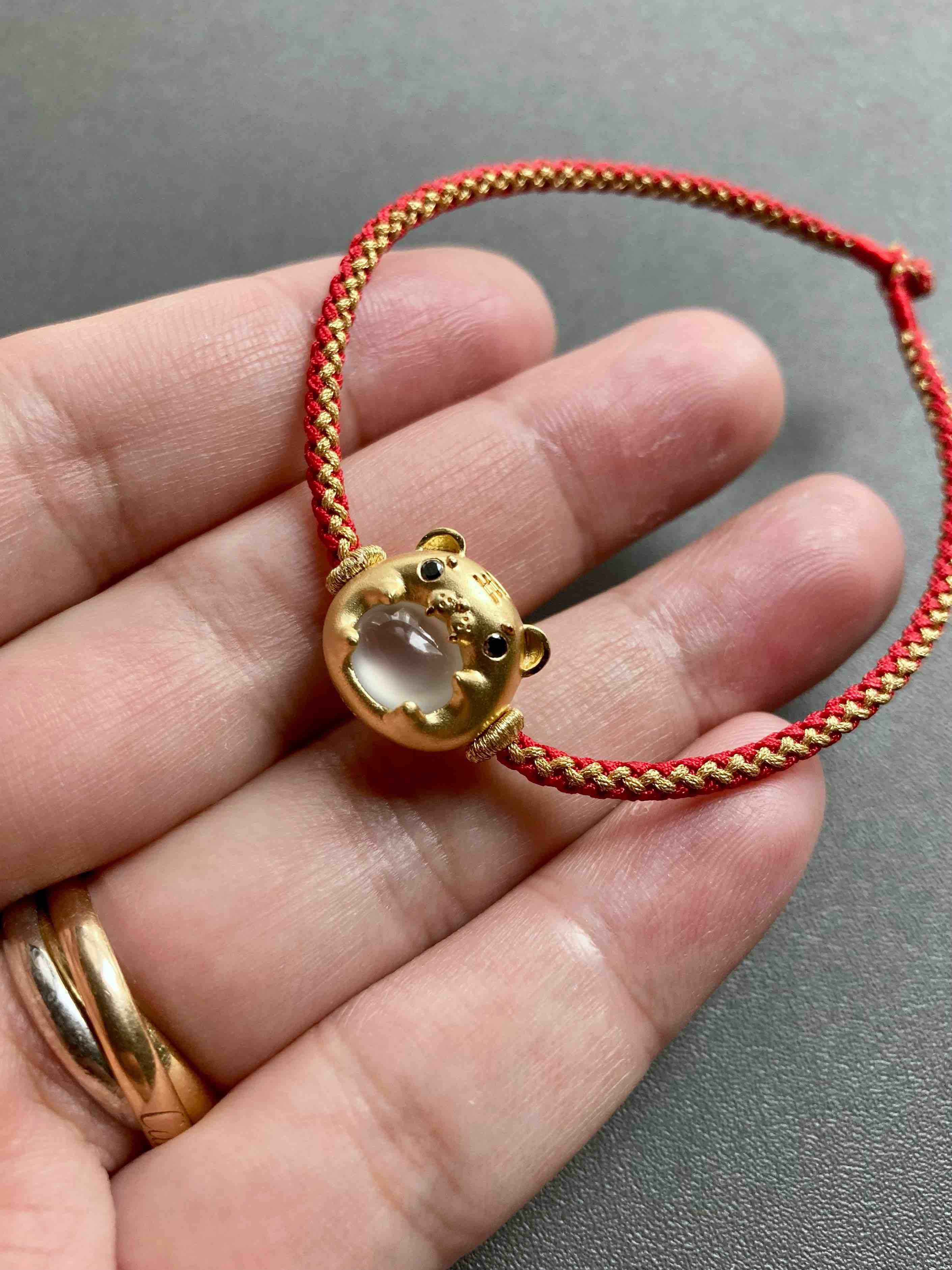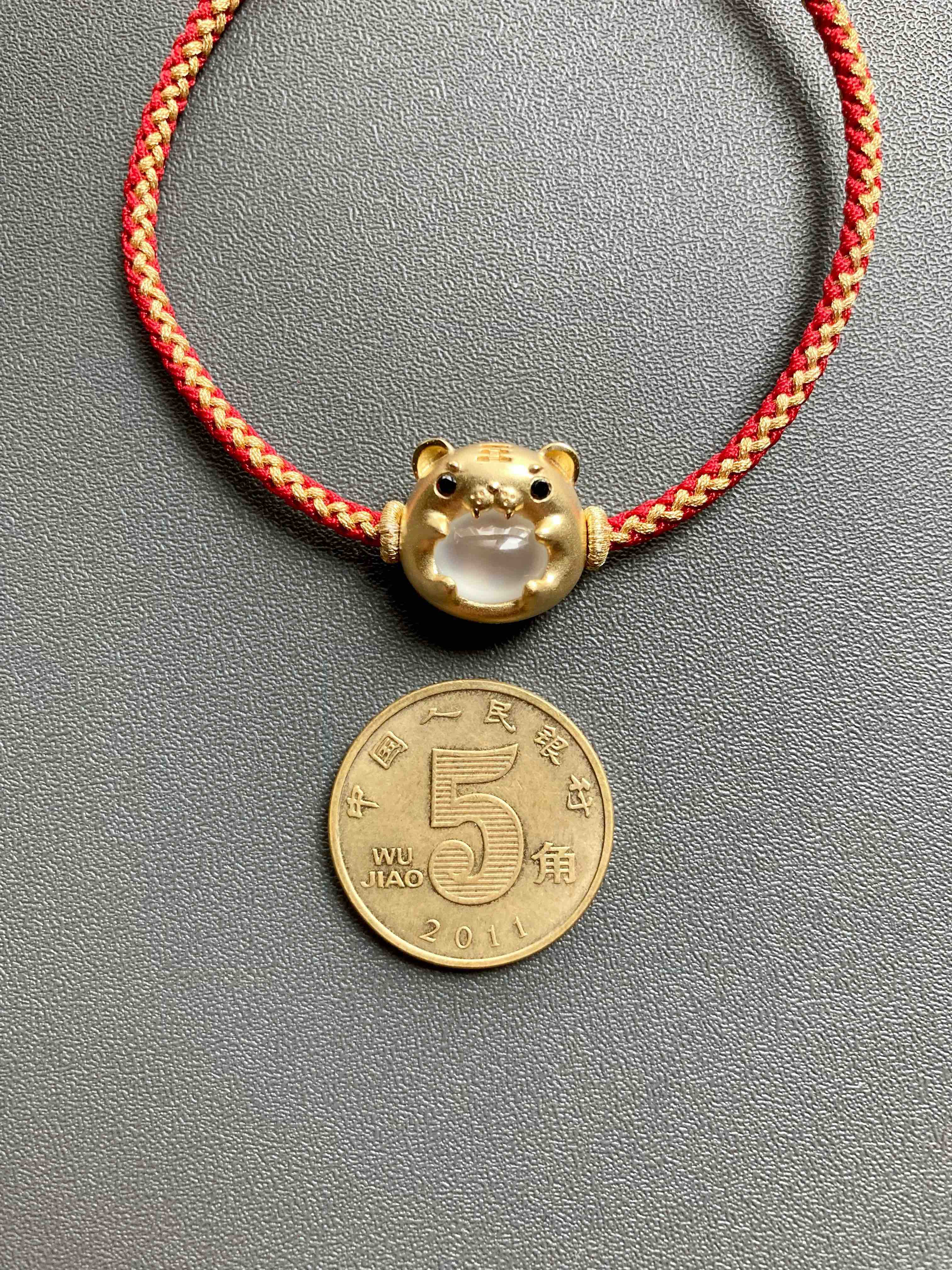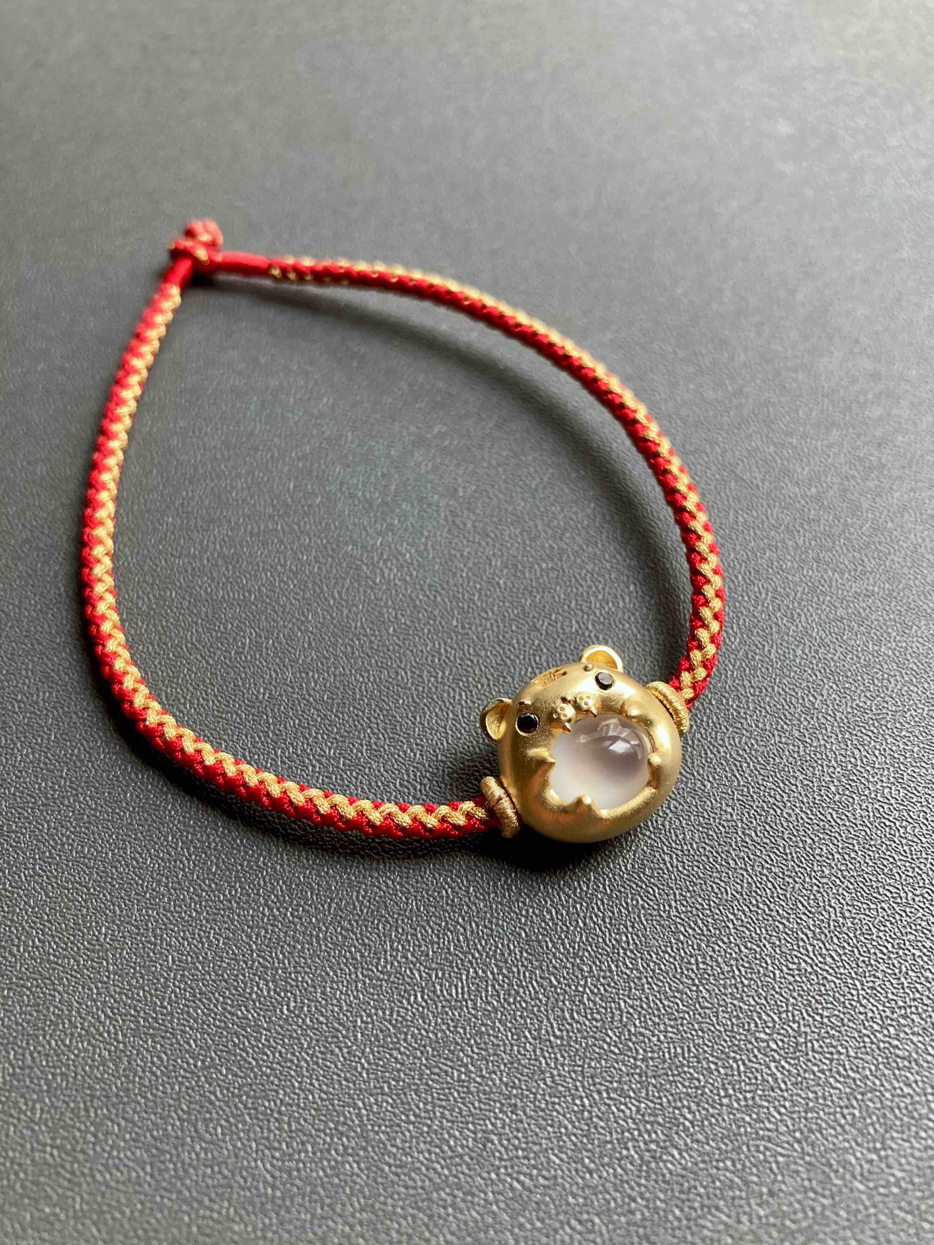 高冰种翡翠萌萌虎年平安手绳手链18k黄金镶嵌