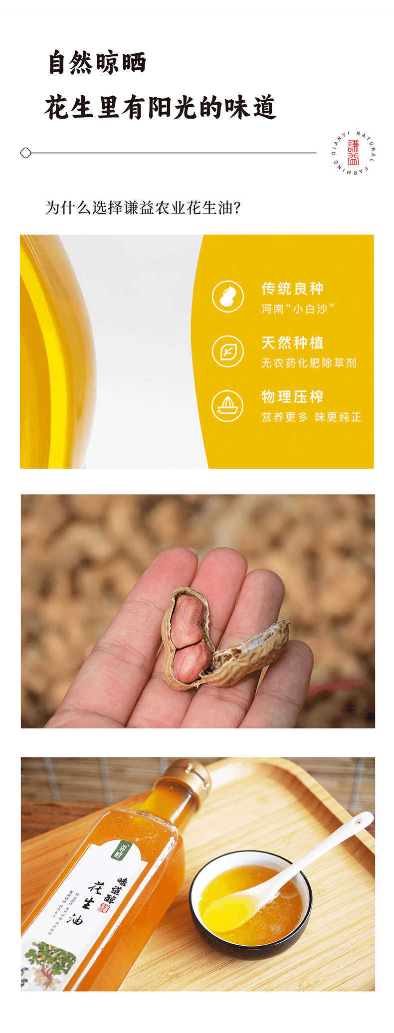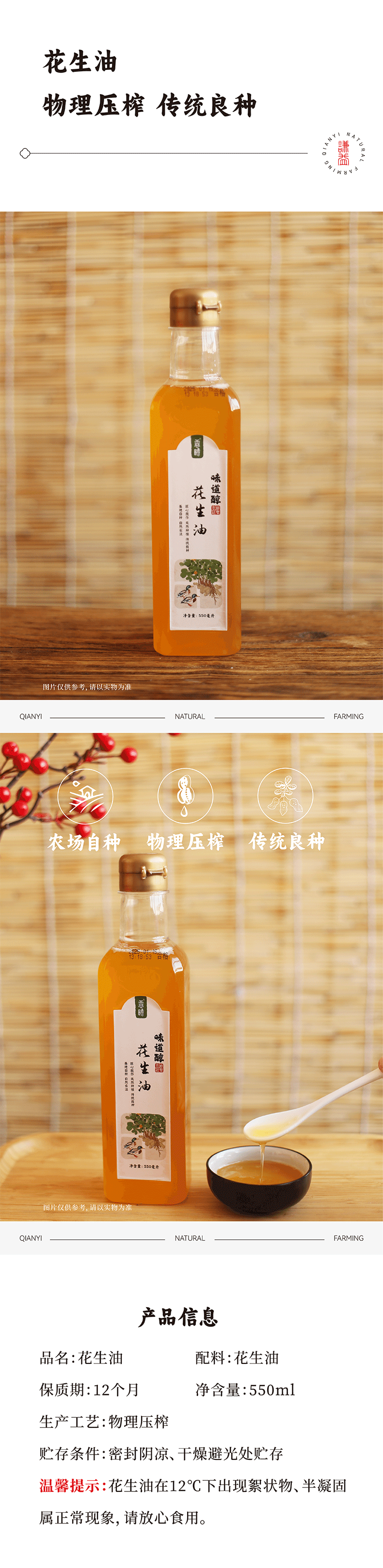 谦益香畴 花生油550ml 物理压榨 香味浓郁 口感纯正