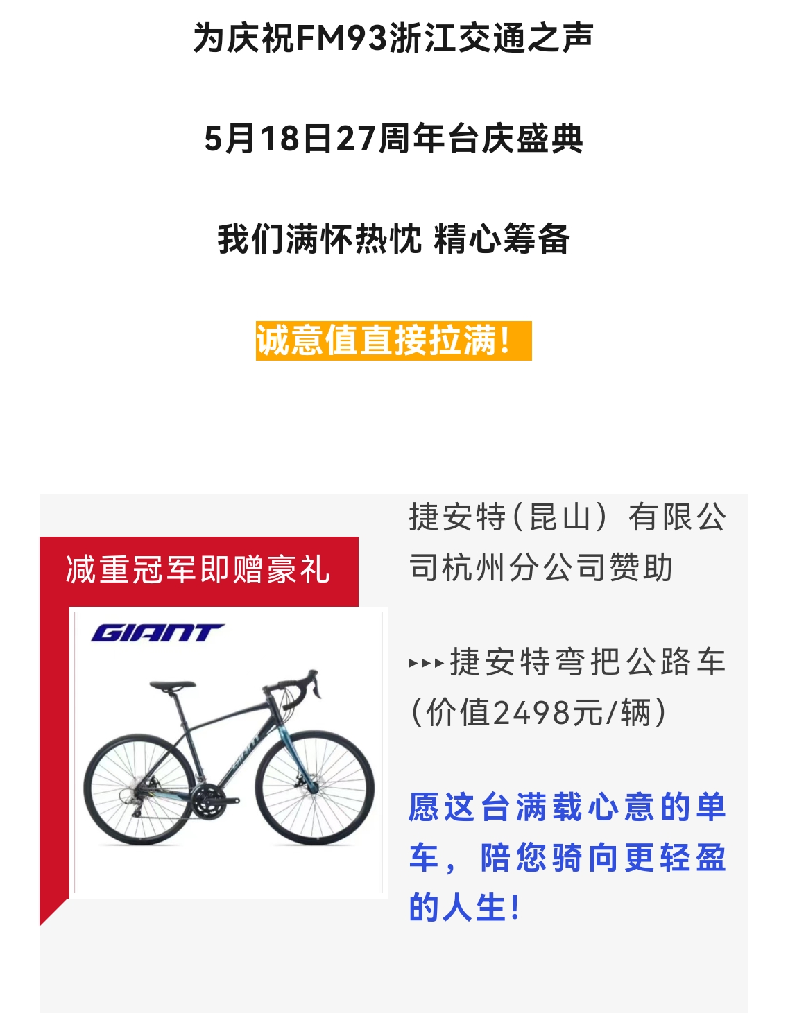 8、减重冠军将获得价值2498元捷安特自行车一辆