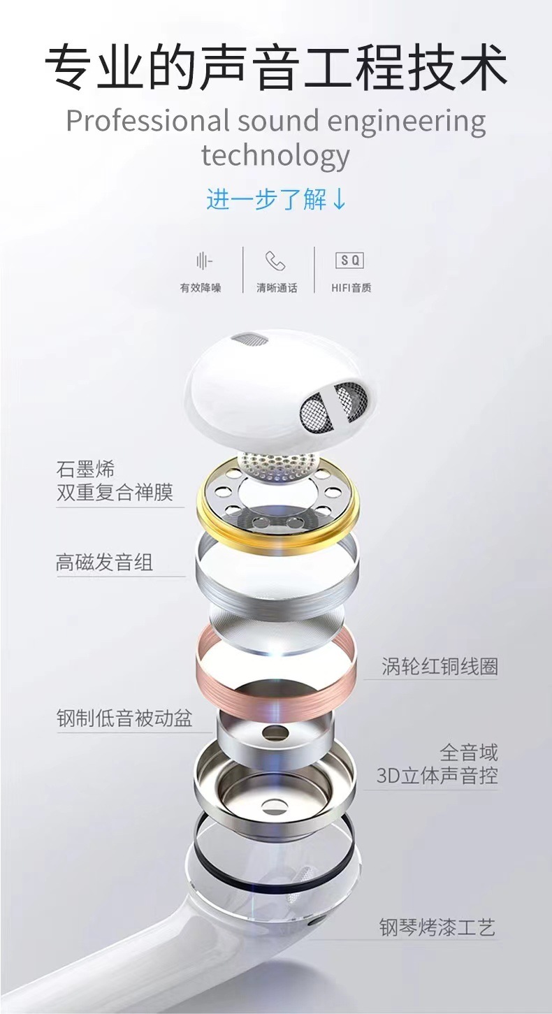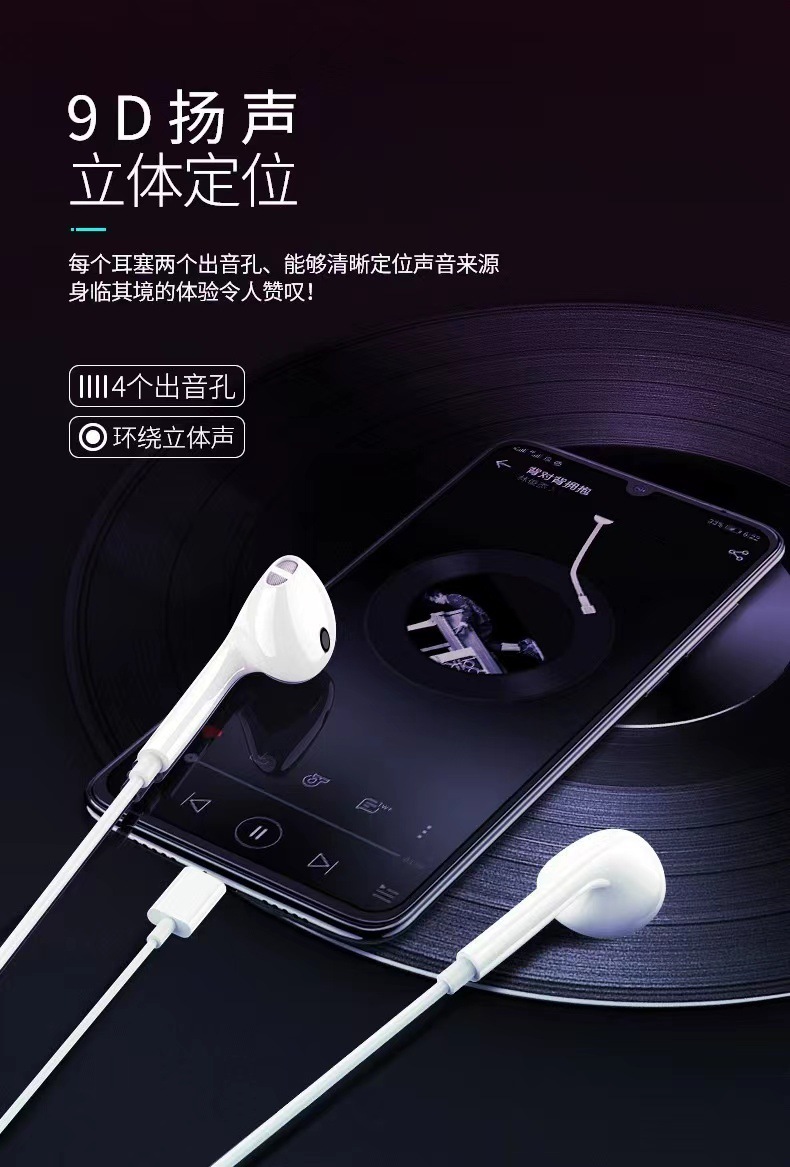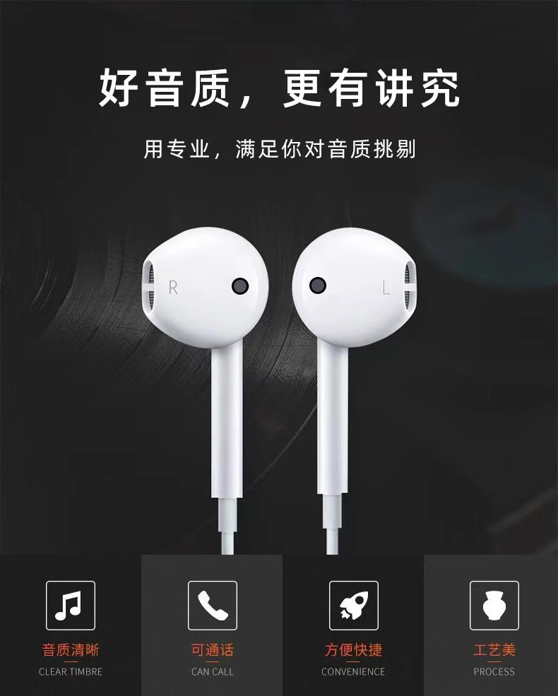 苹果耳机7代-14代专用耳机(C100正版)蓝牙弹窗扁头支持转接口可通话线控耳机1盒