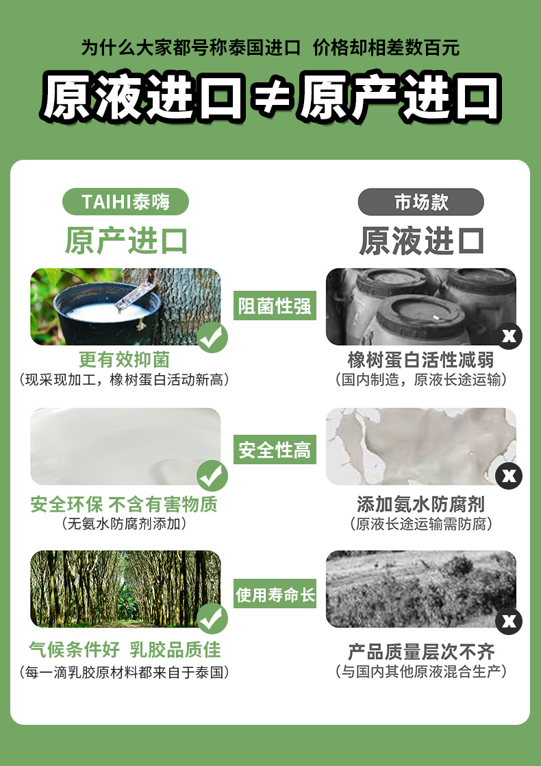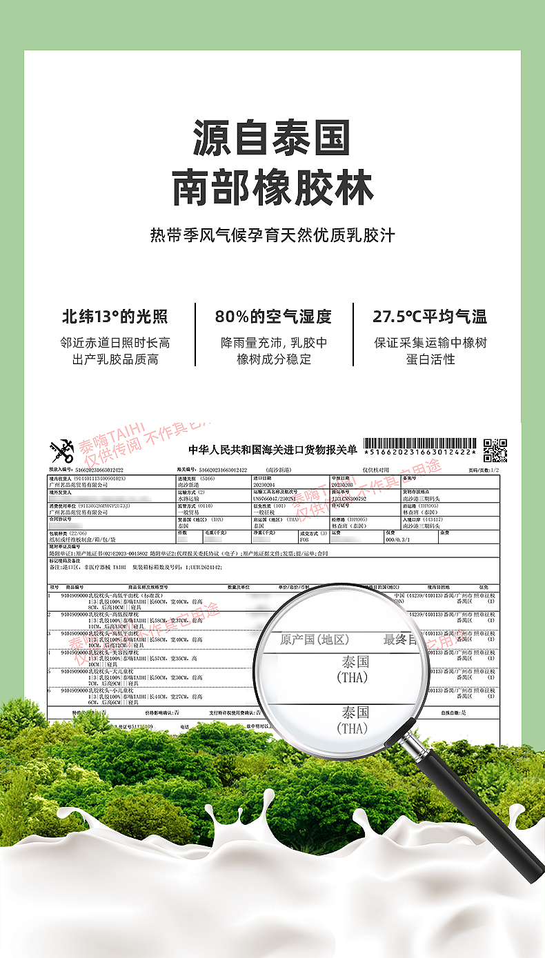 他家的枕头,从橡胶林采集到工厂生产,每个环节都是在泰国完成,保证每一滴乳胶都是源自于泰国,保证每个枕头天然健康。
