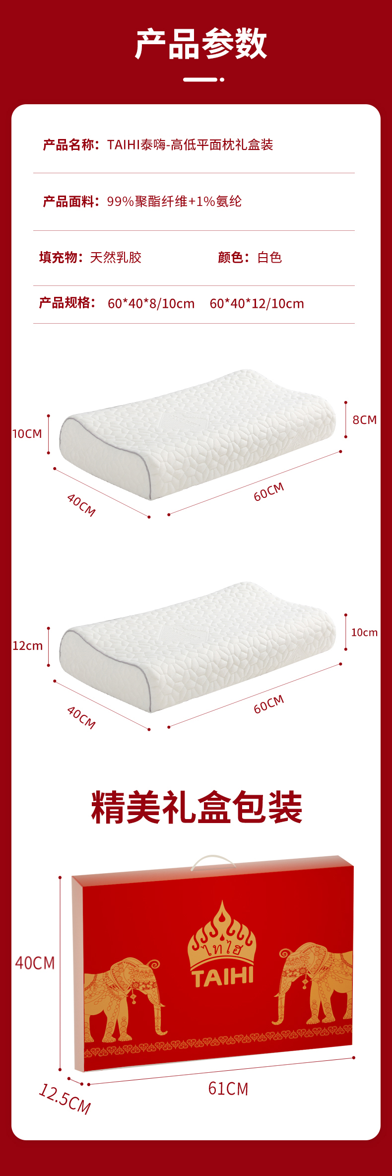 泰嗨TAIHI泰国原产进口乳胶枕 三种高度可选 乳胶含量高达93%