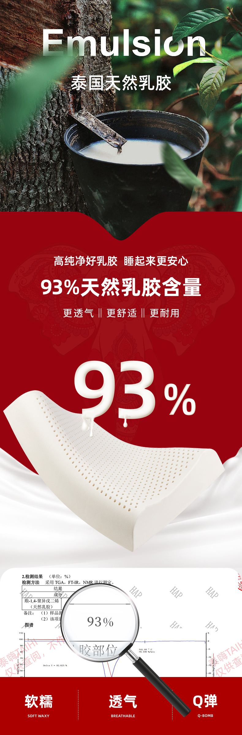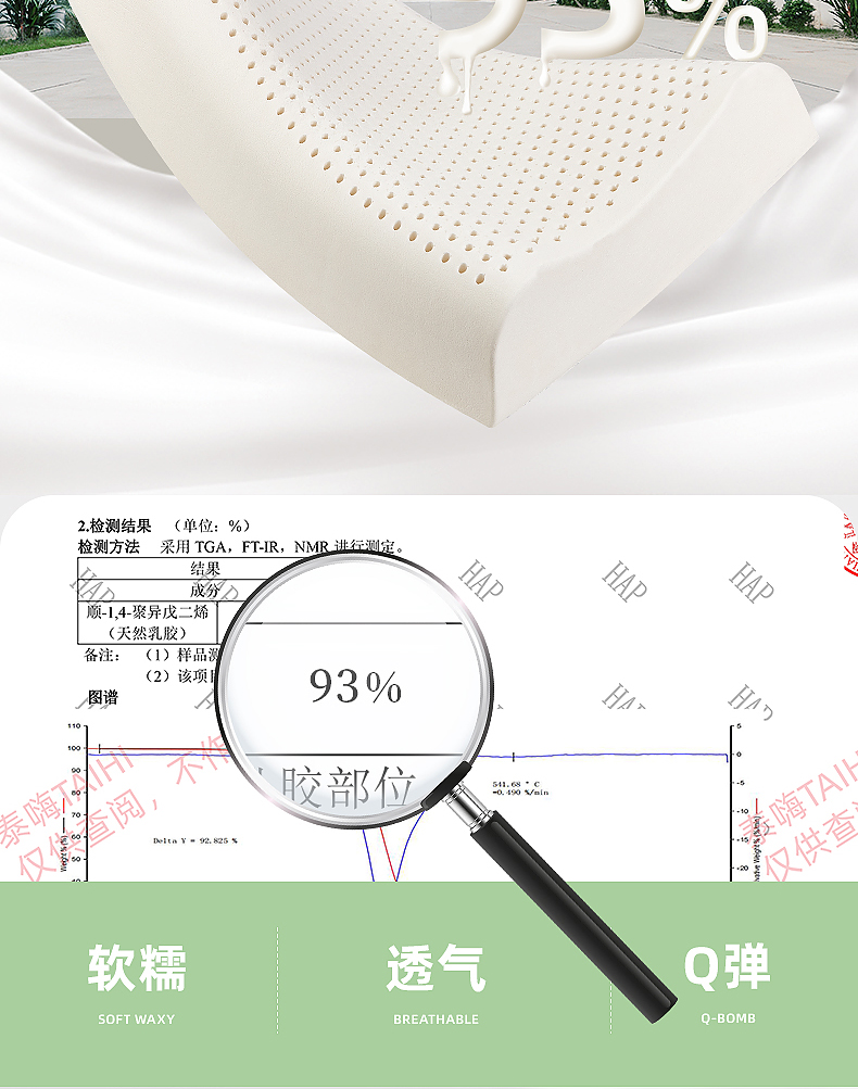 采用泰国南部三叶橡胶林的新鲜乳胶,天然乳胶含量高达93%,是行业内公认的高标准。摸起来那叫一个柔弹,躺上去就像被云朵轻轻托住。