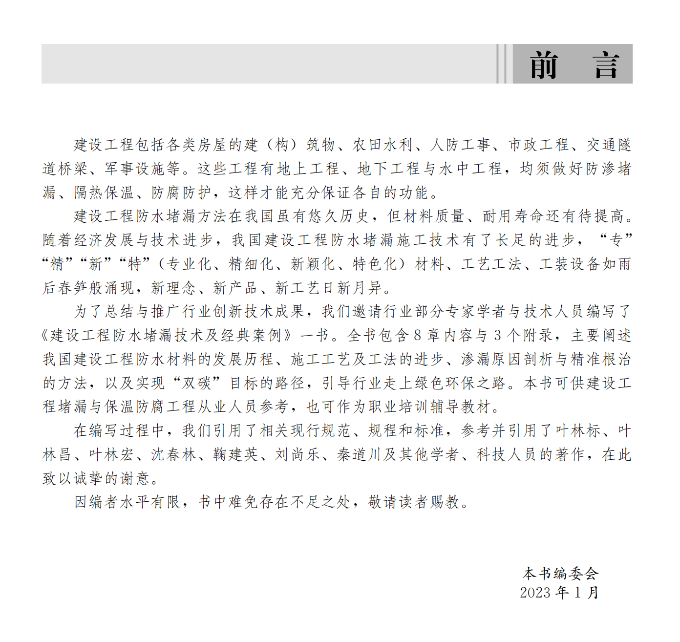 建设工程防水堵漏技术及经典案例 陈宏喜 邹常进 邓泽高 主编 中国建材工业出版社, 20237
