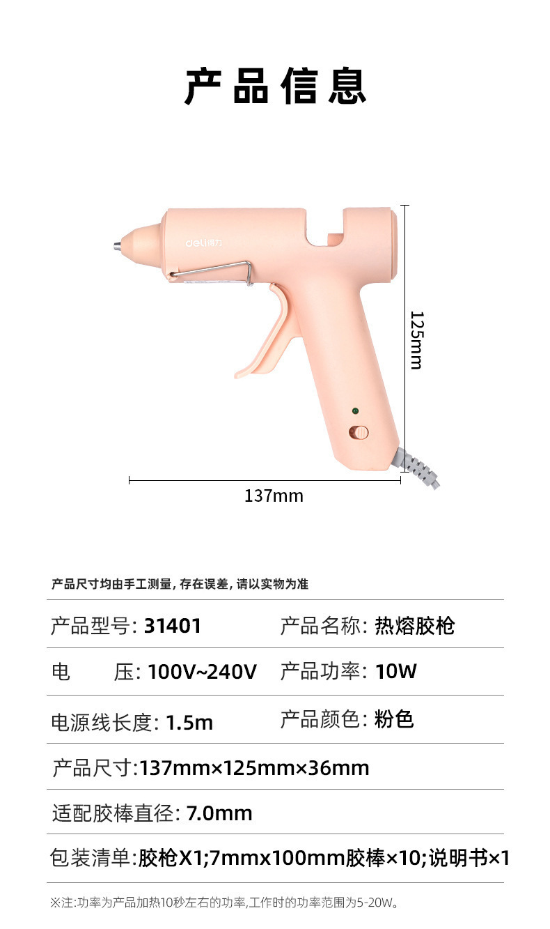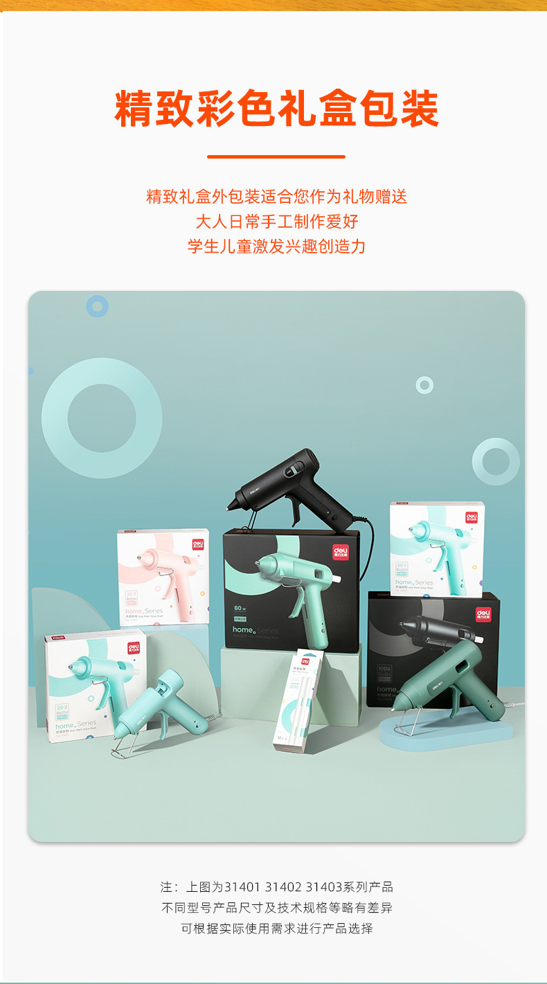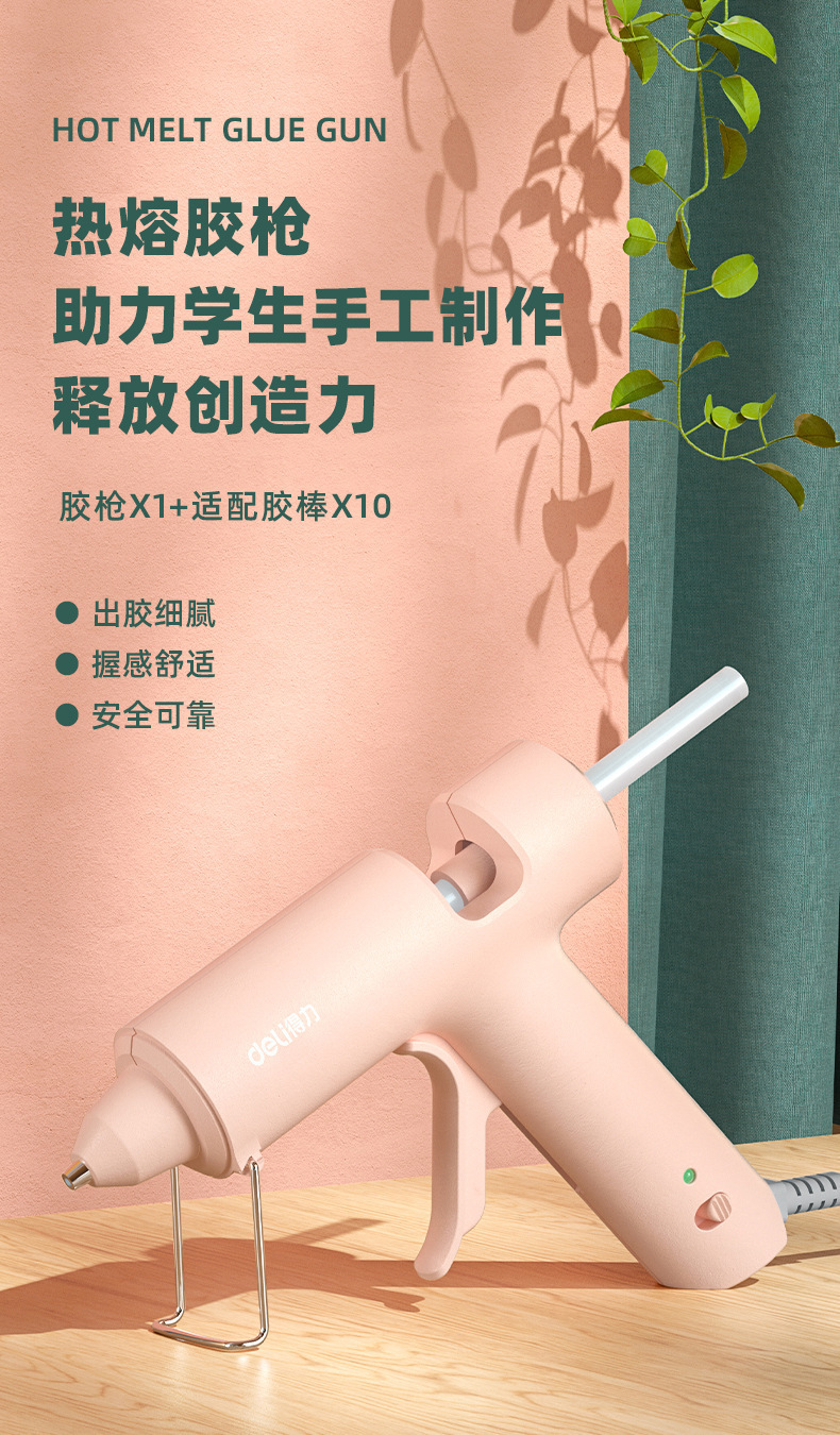 得力热熔胶枪31401蓝色DIY家用热融胶抢送10根胶棒手工热熔枪热溶棒胶7mm