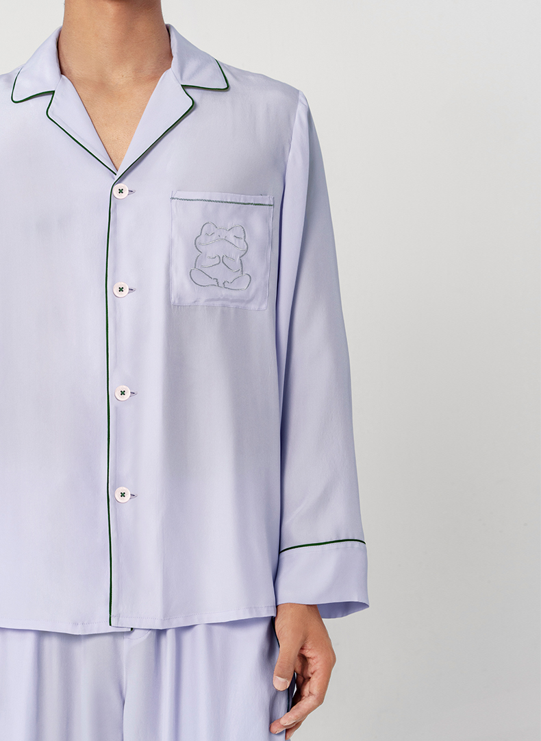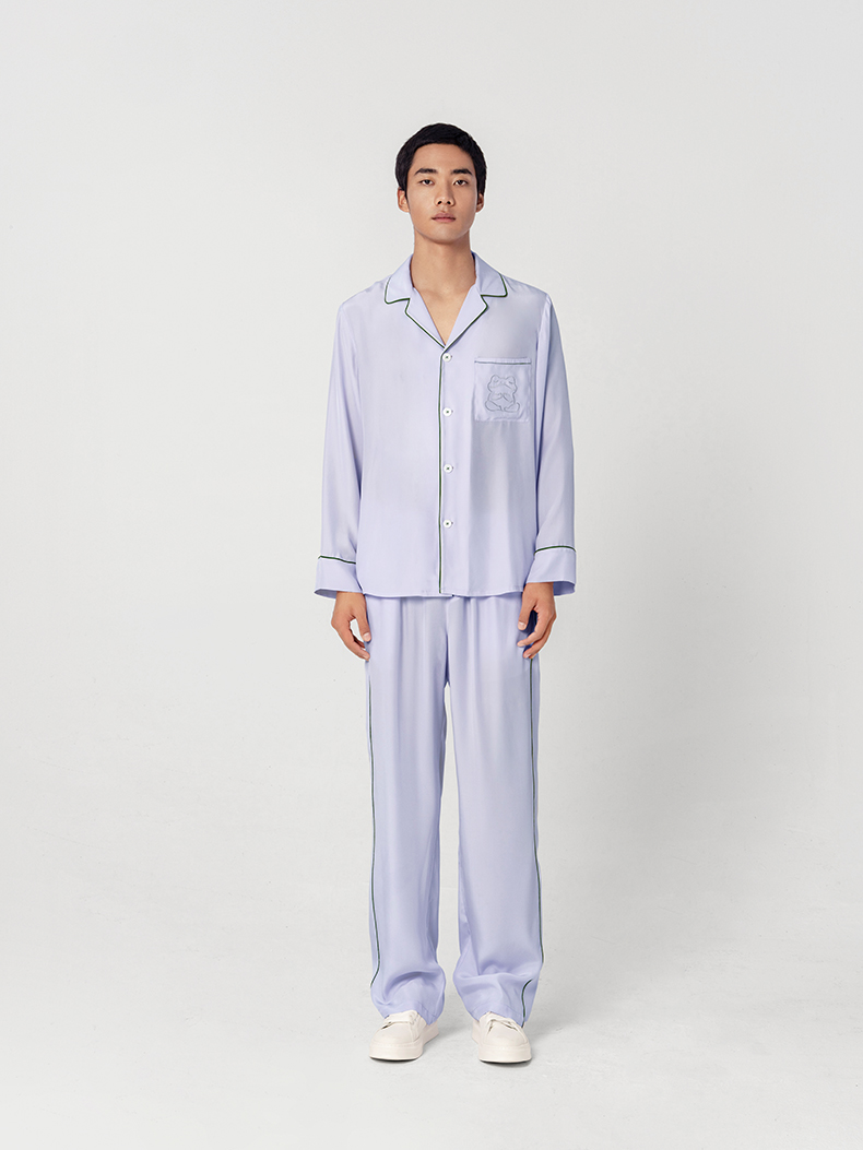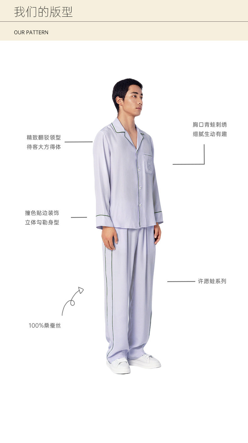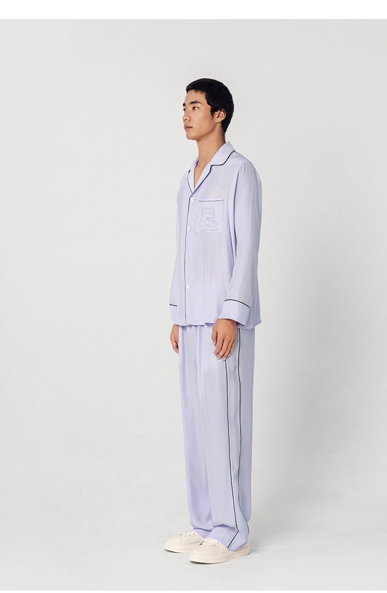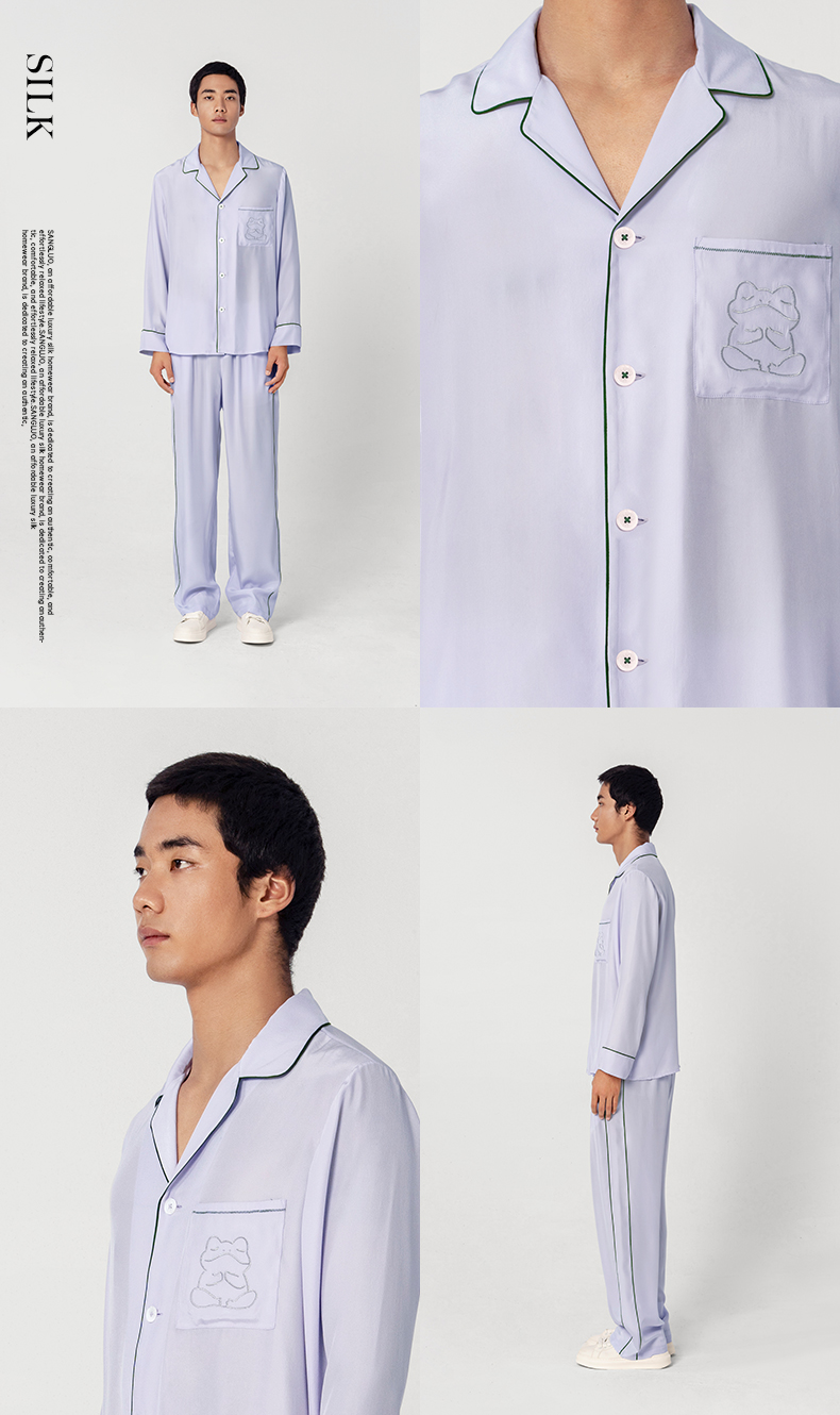 许愿蛙』桑罗撞色翻领睡衣套装桑蚕丝男长袖家居服可外穿
